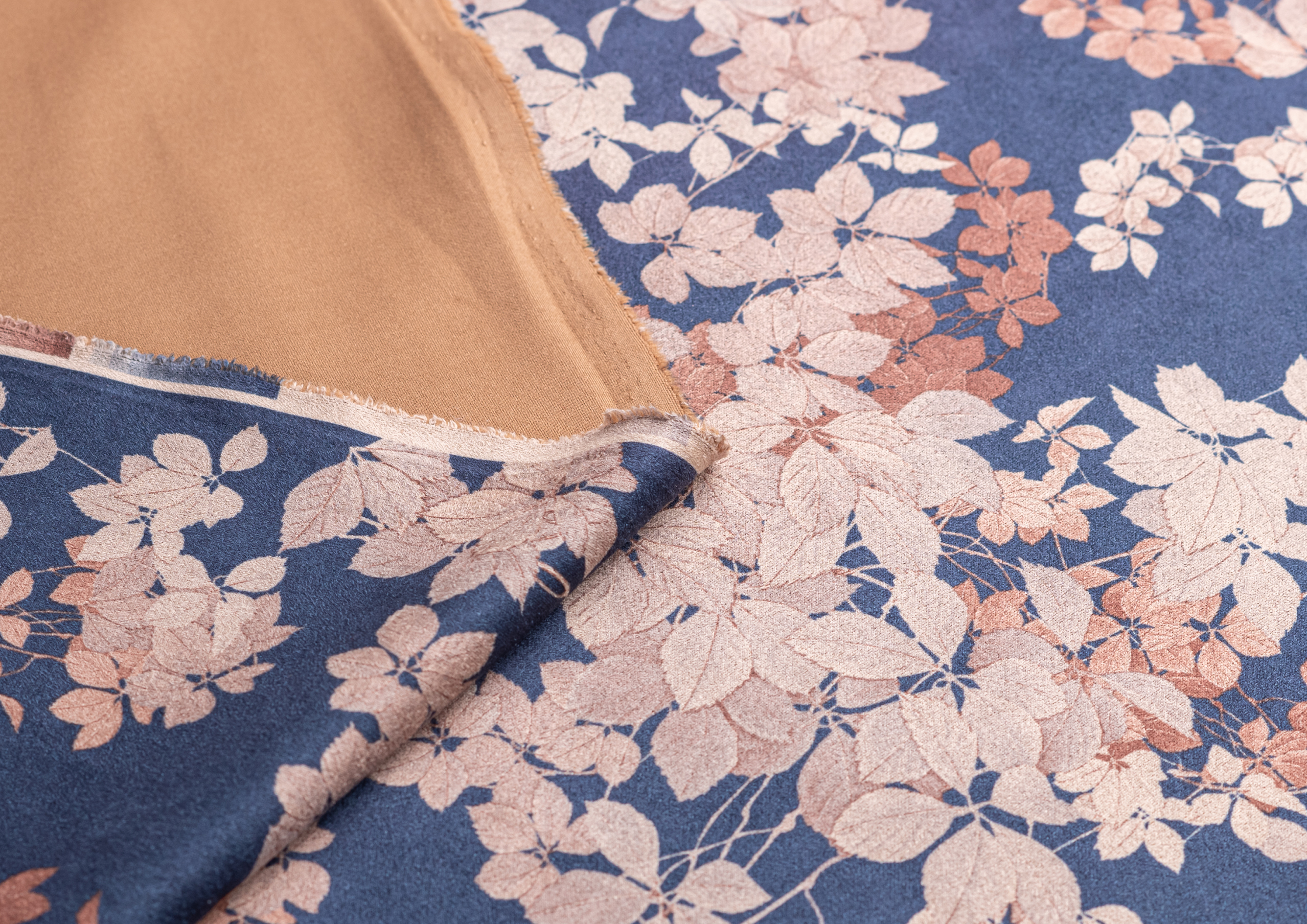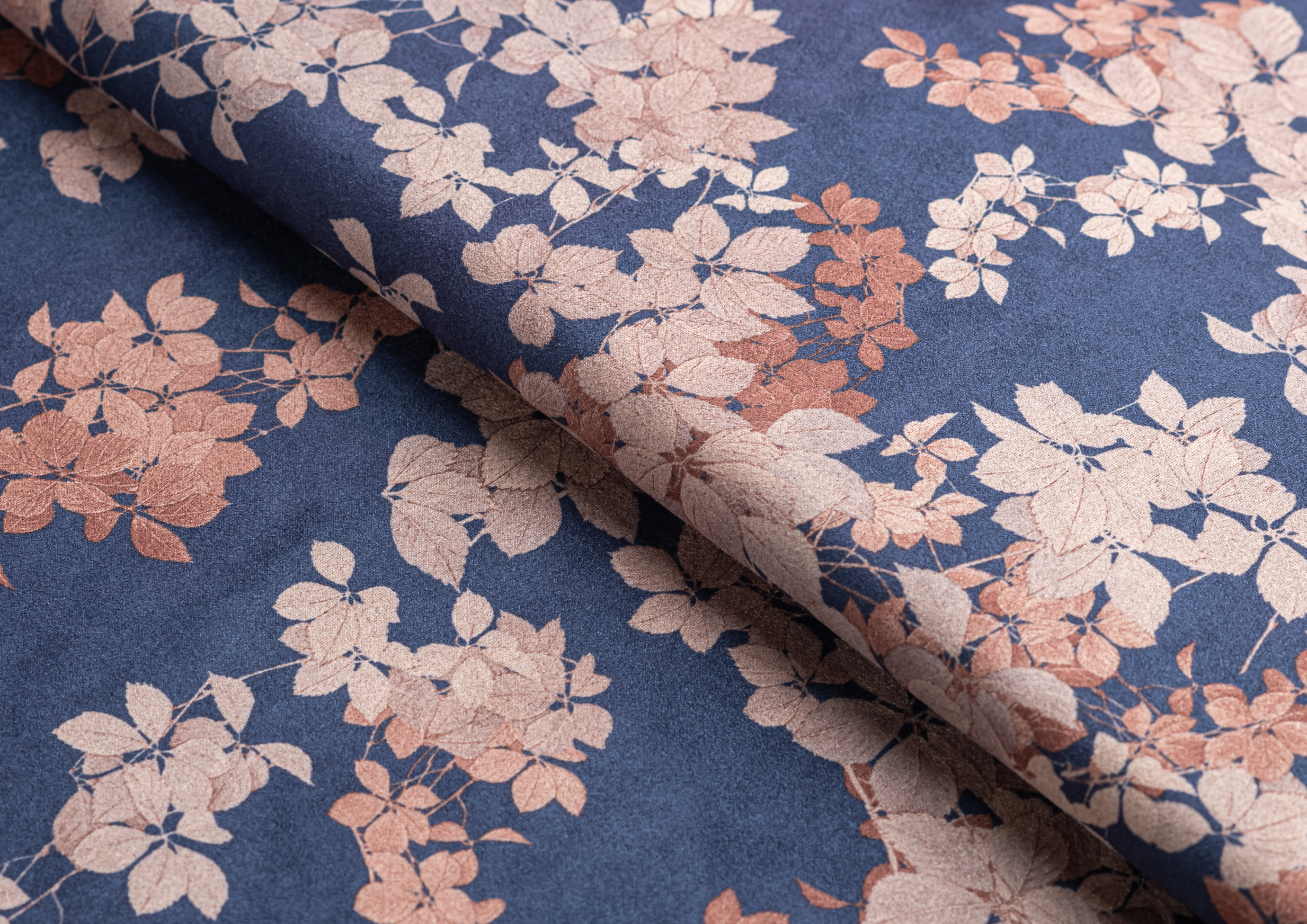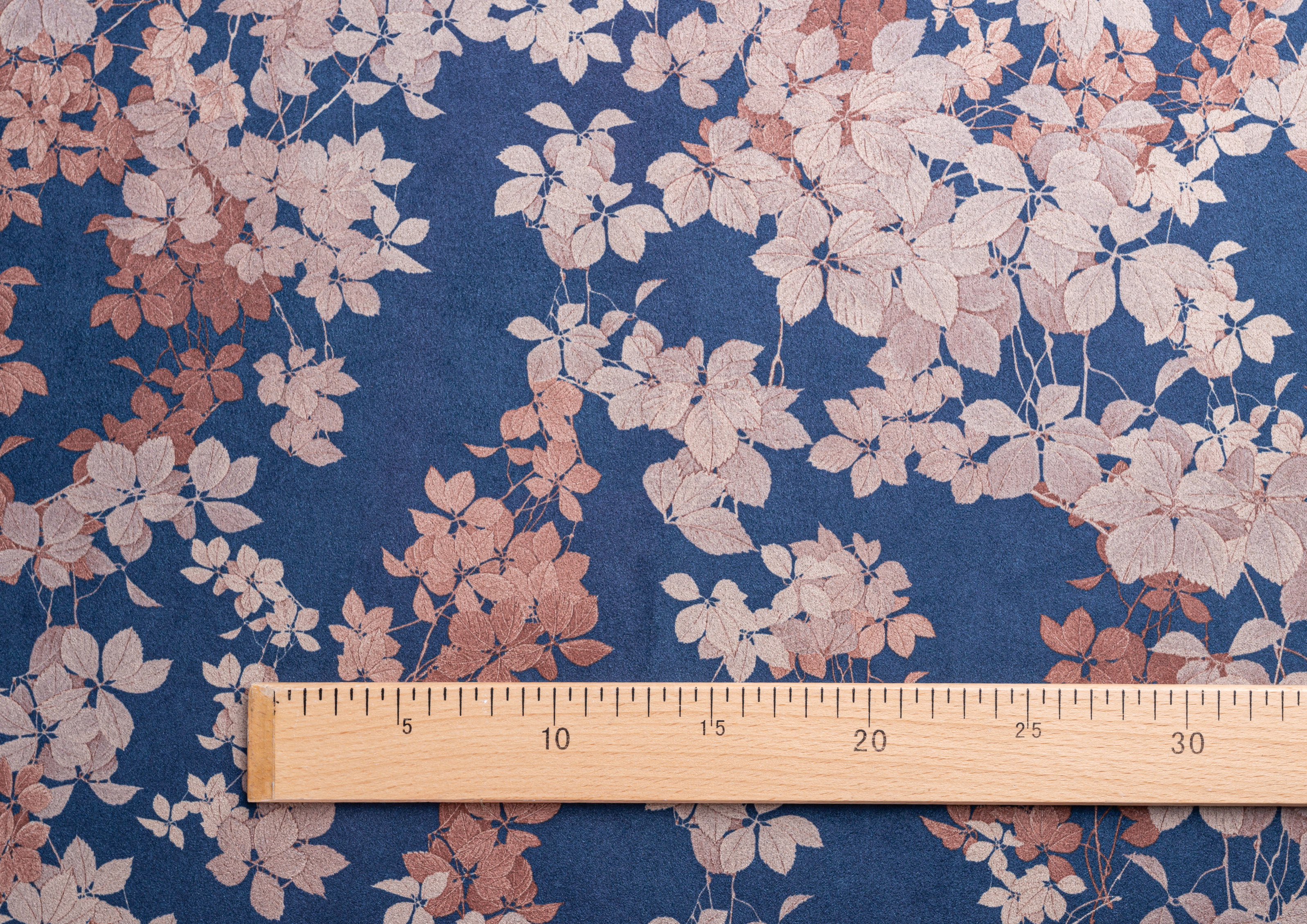 Ткань Замша принт Цветок на синем