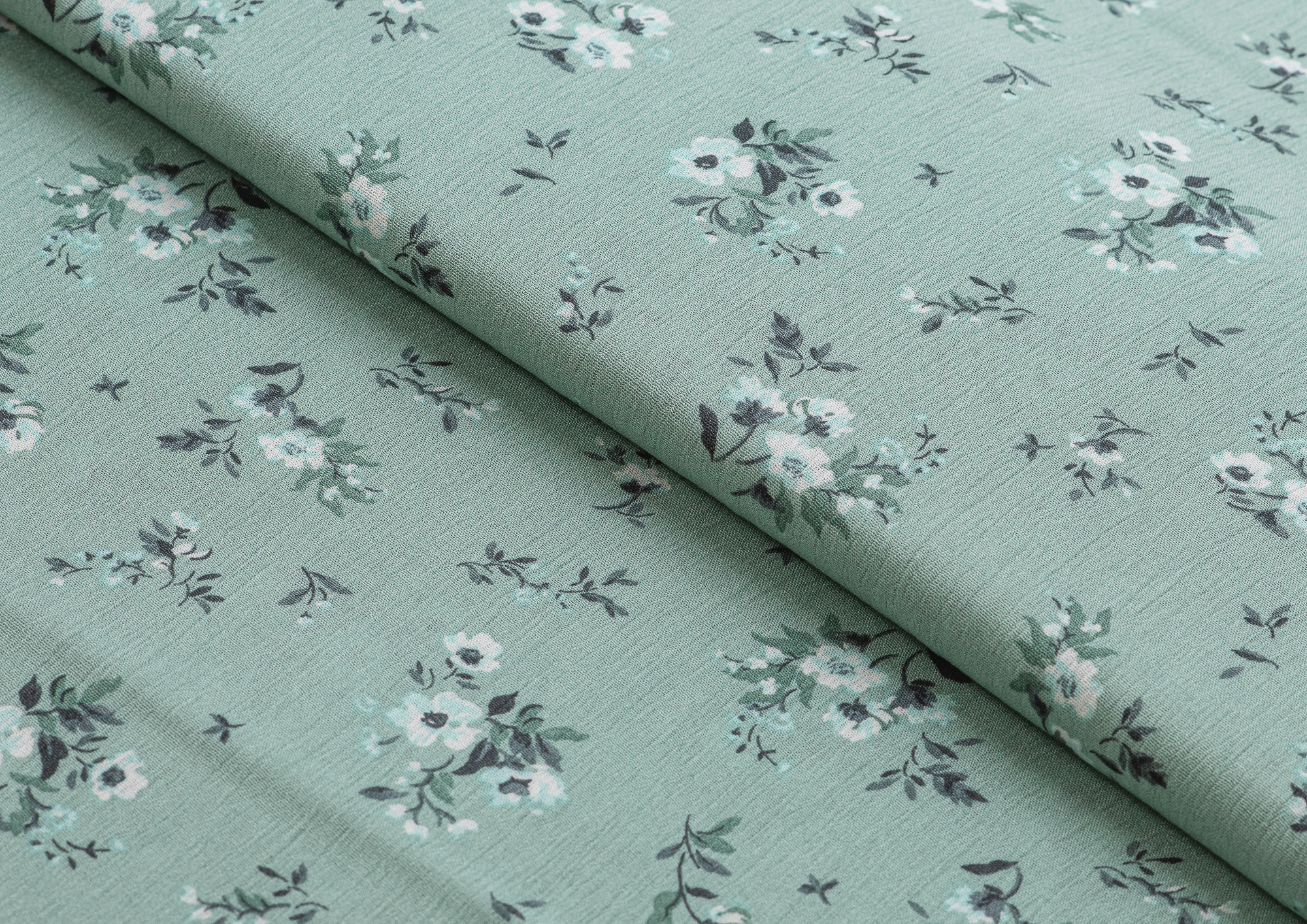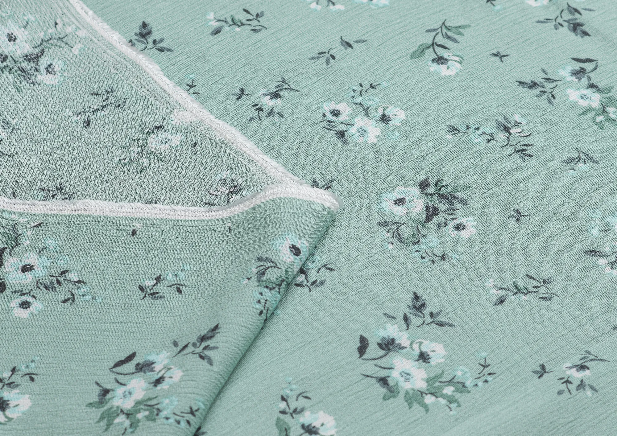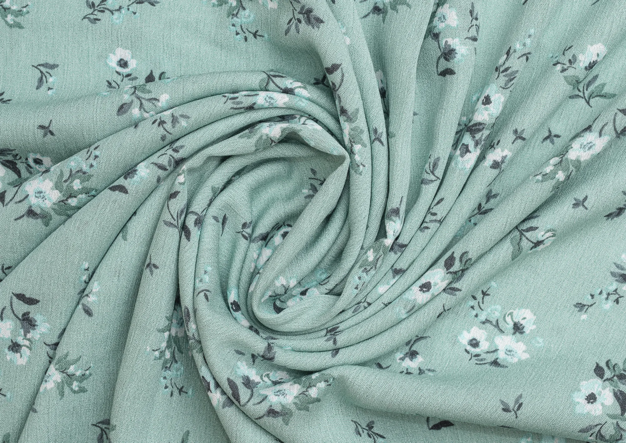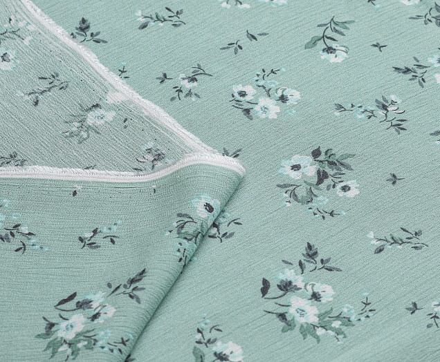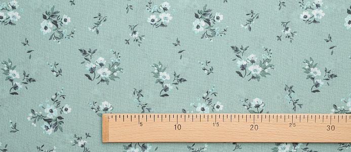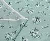 Ткань Марлевка принт Белые цветы на мятном фоне