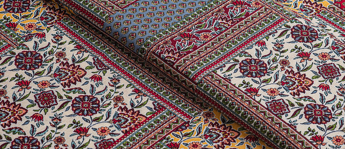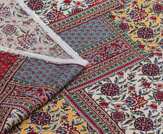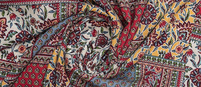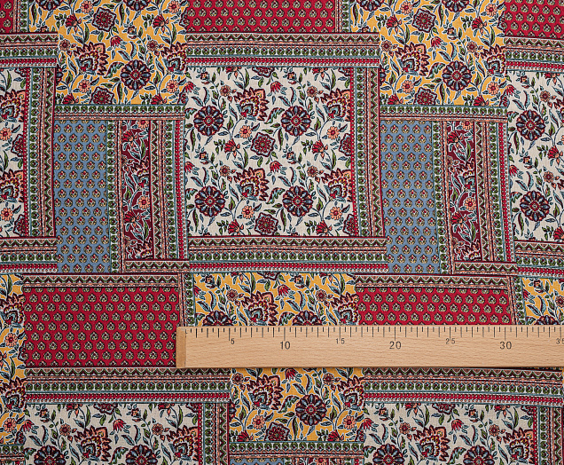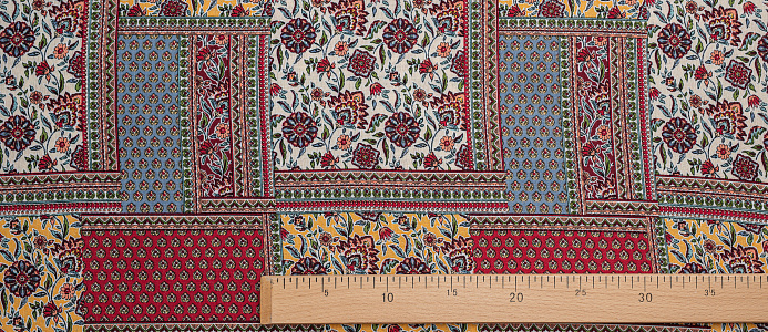 Мягкая , приятная на ощупь натуральная ткань. Само полотно немного креш . Ткань не просвечивает , подклад не требуется. Эластан в составе придаст вашему изделию комфорта. По всему плотну нанесен принт пейчворк. Ткань хорошо подходит для пошива платьев, сарафанов, летних костюмов , юбок, блузок , халатов.