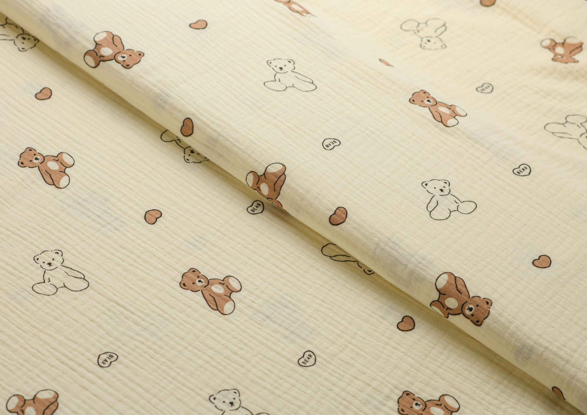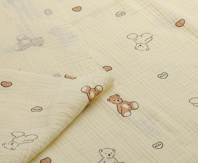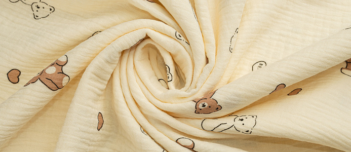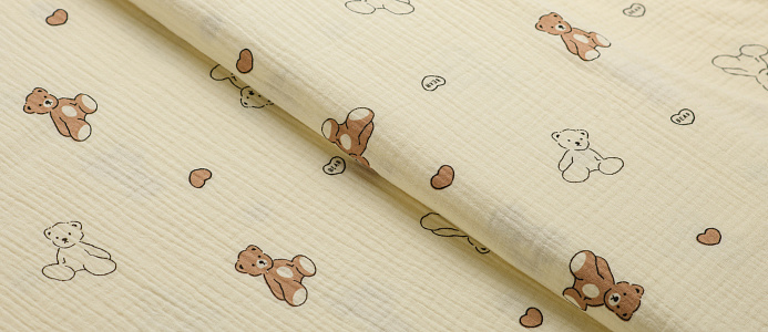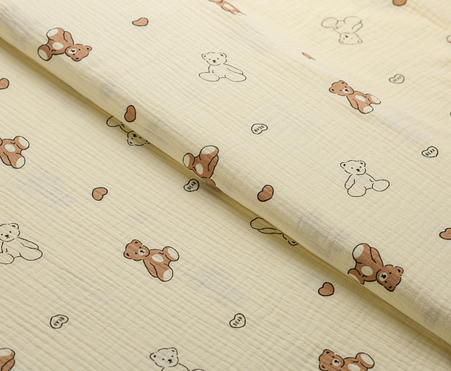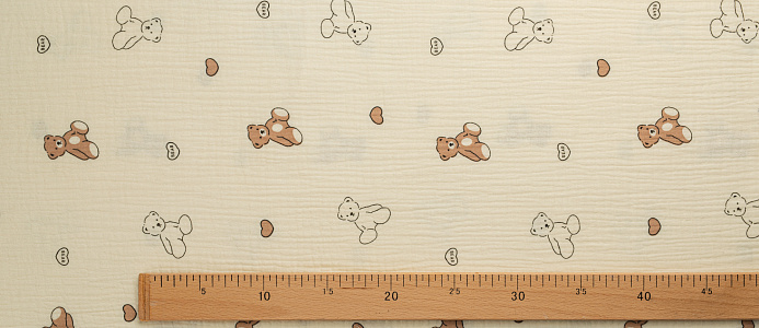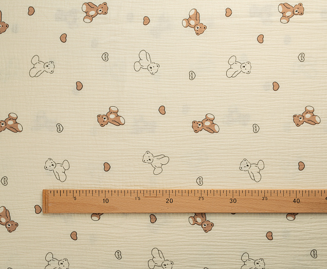 Ткань муслин принт Белые, коричневые мишки