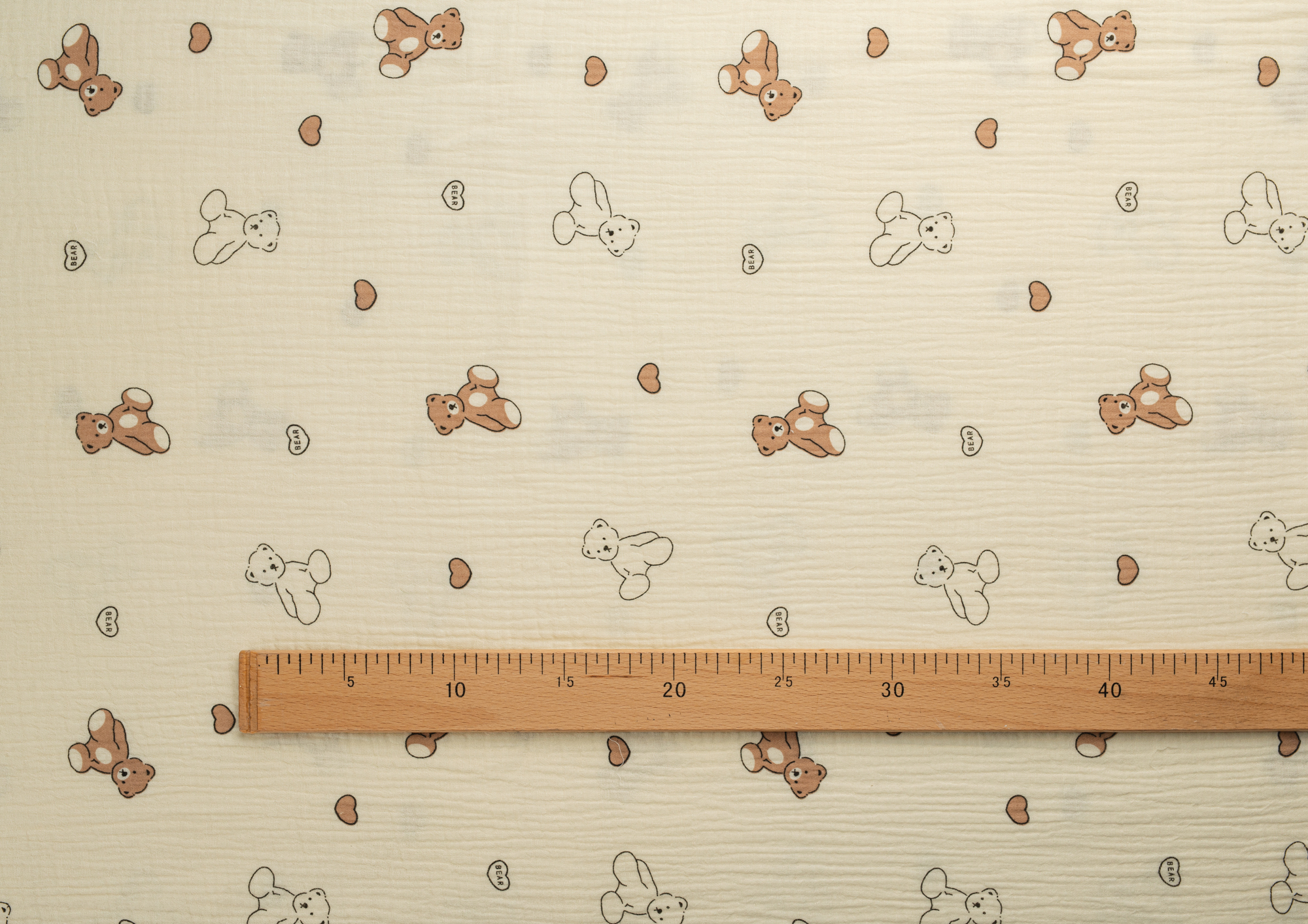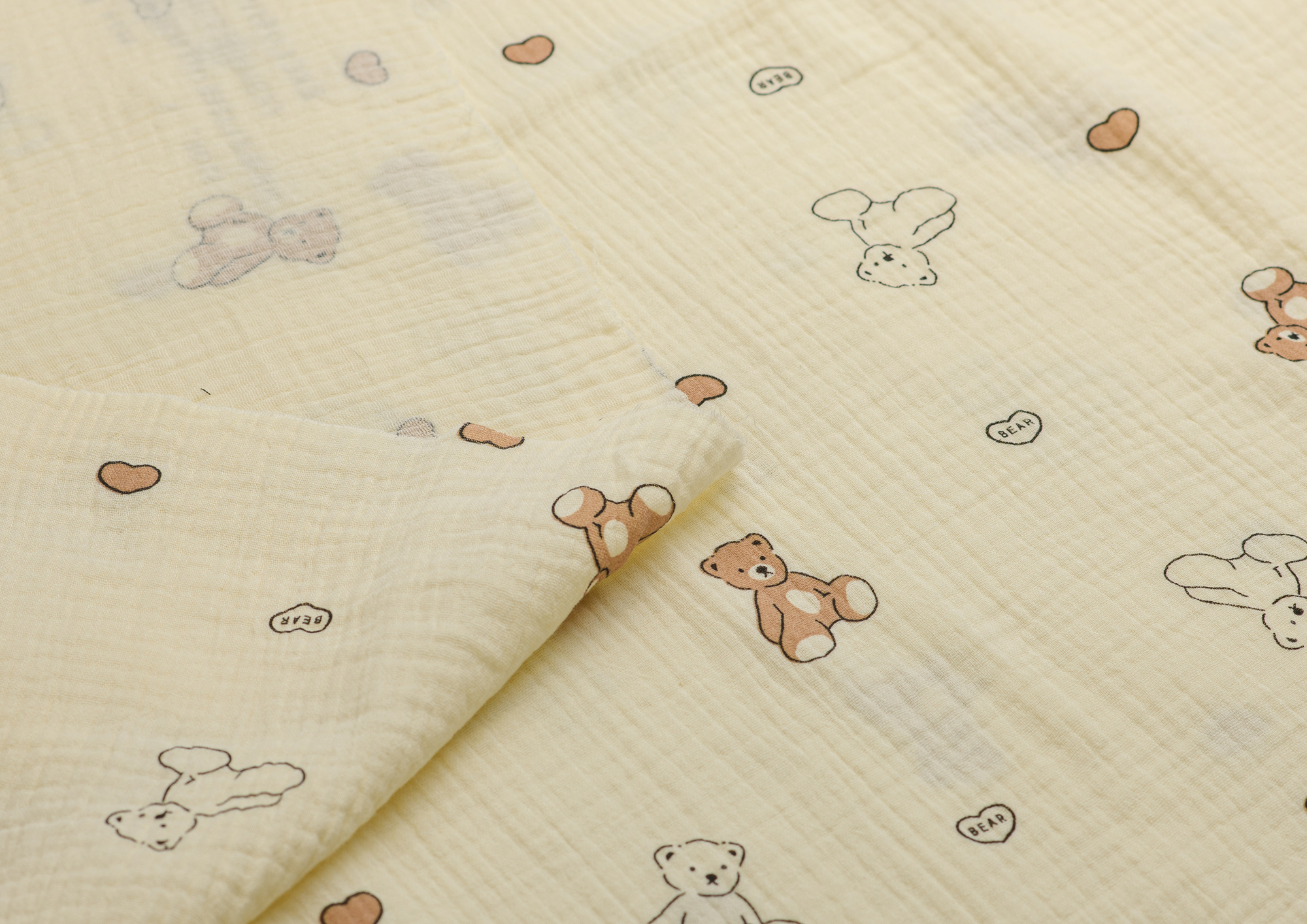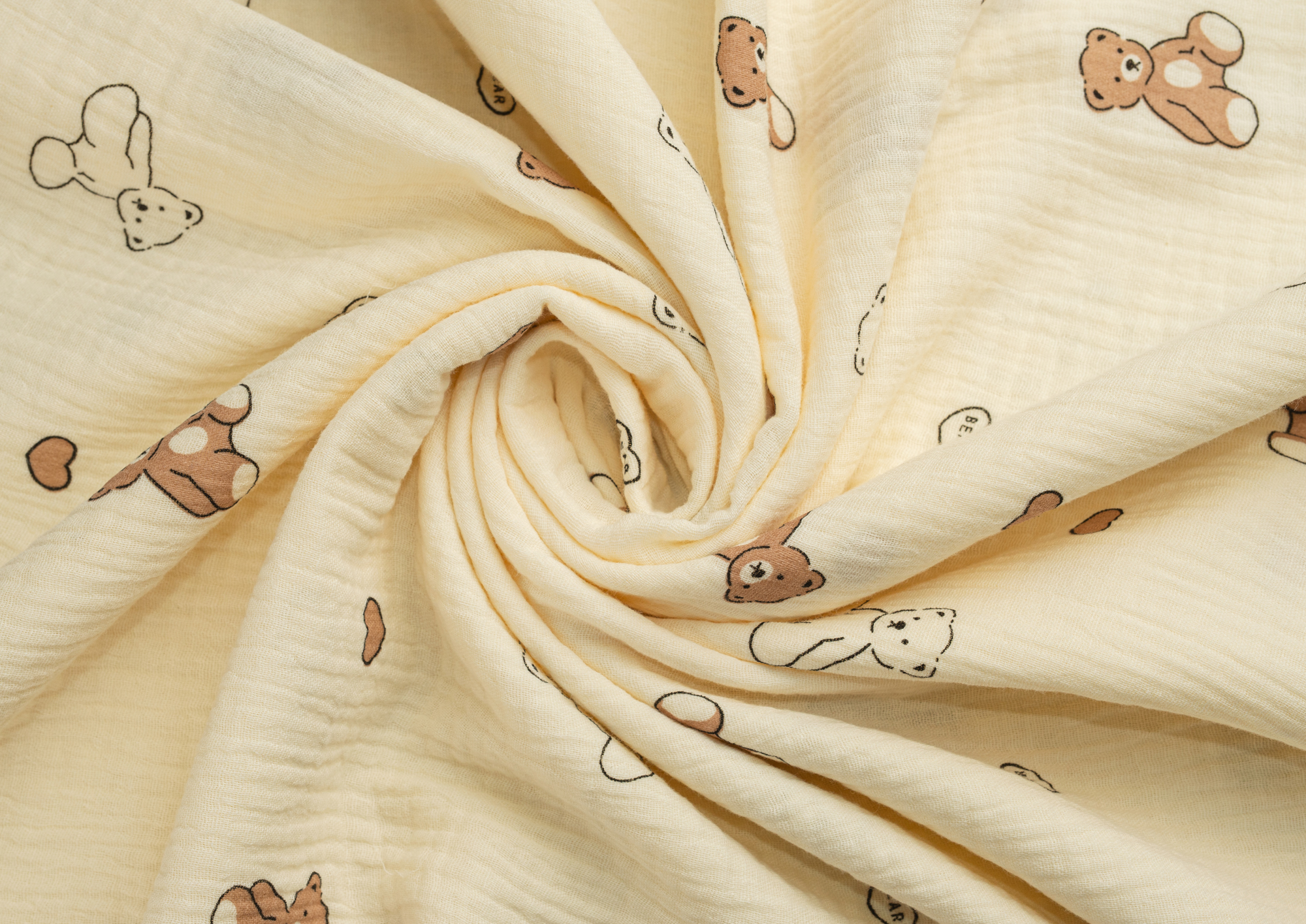Ткань муслин принт Белые, коричневые мишки