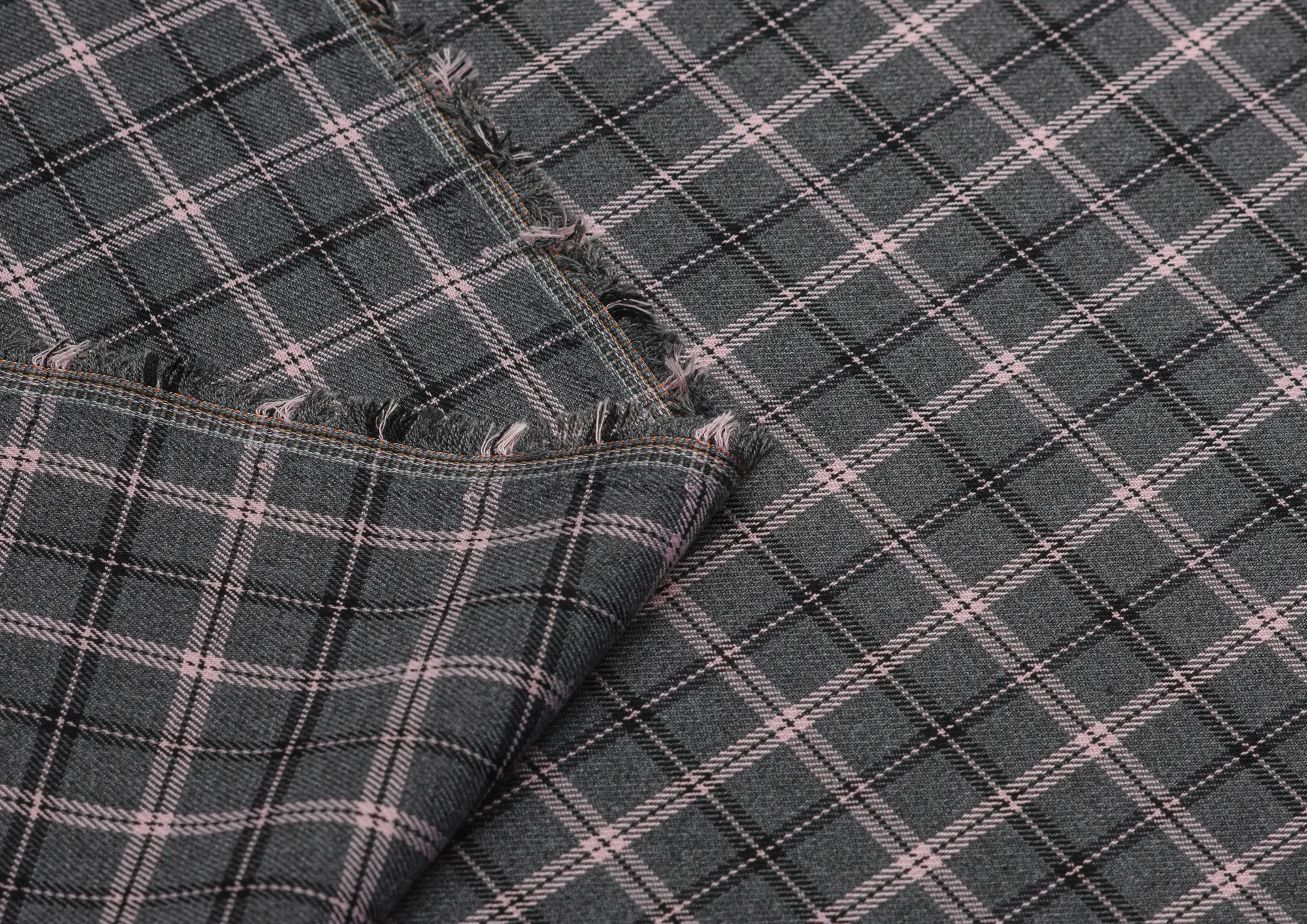 Ткань костюмная 3567 Клетка цв. серый/розовый
