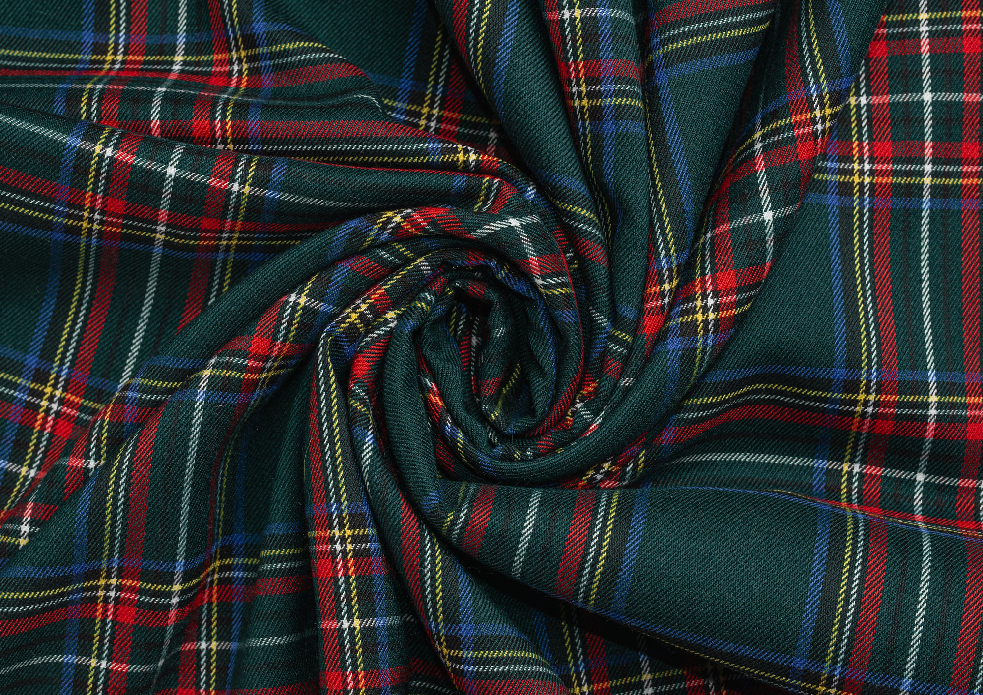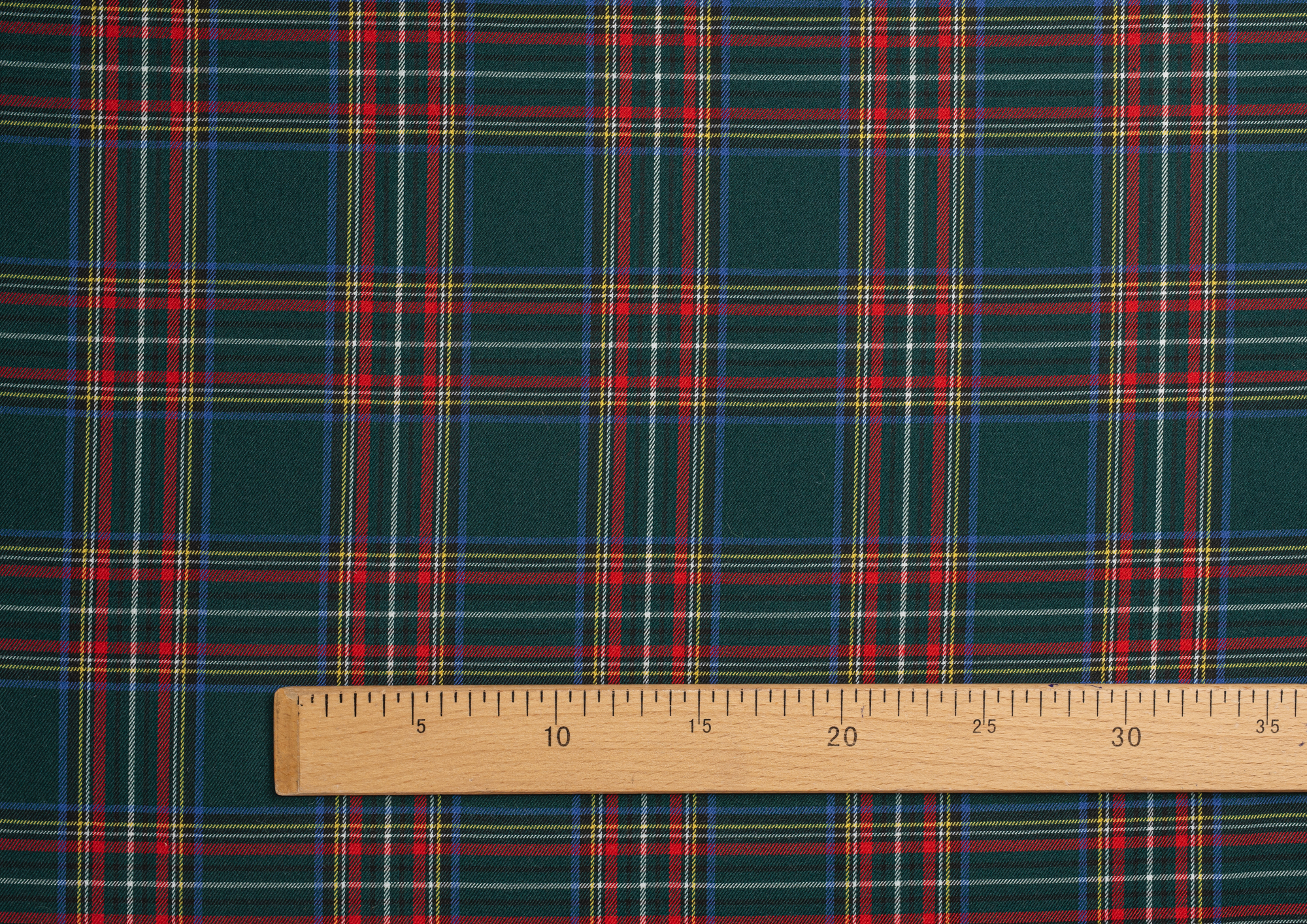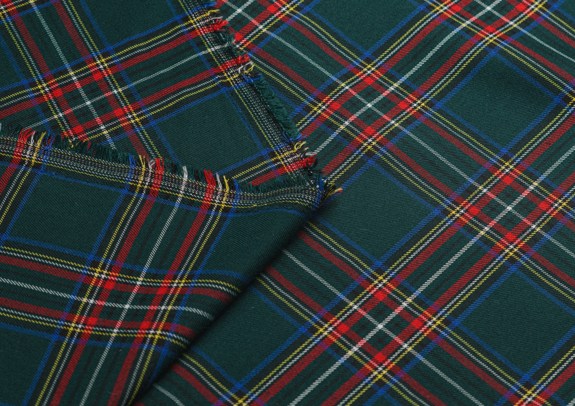 Ткань Костюмная клетка 2210 цв. зеленый/красный