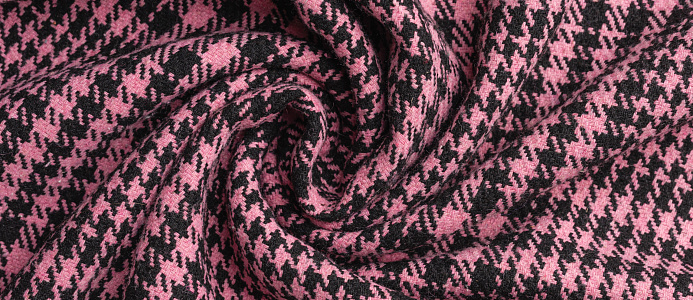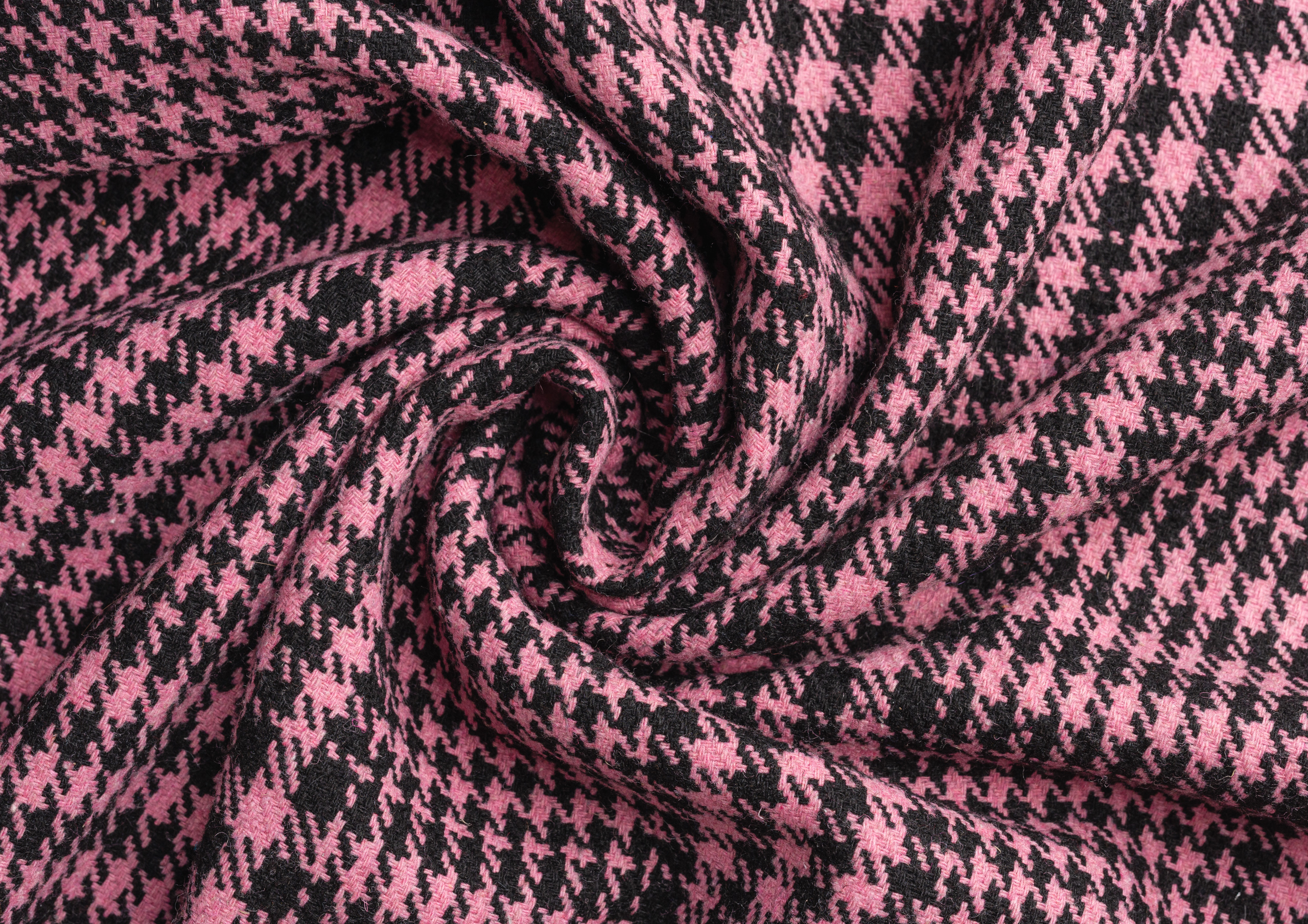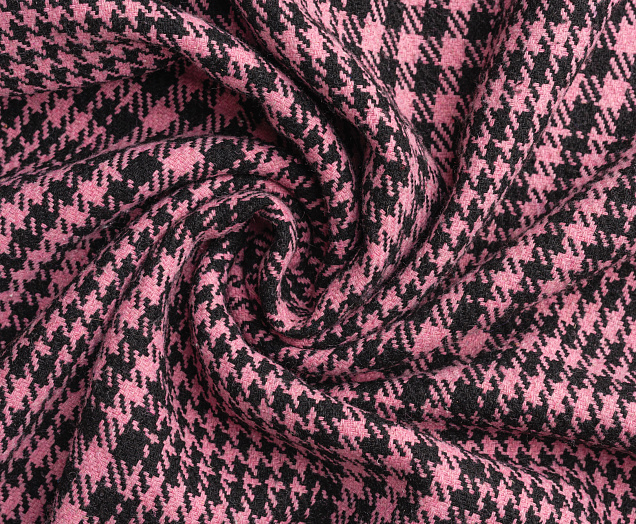 Ткань Пальтовая "Клетка" розово/черная