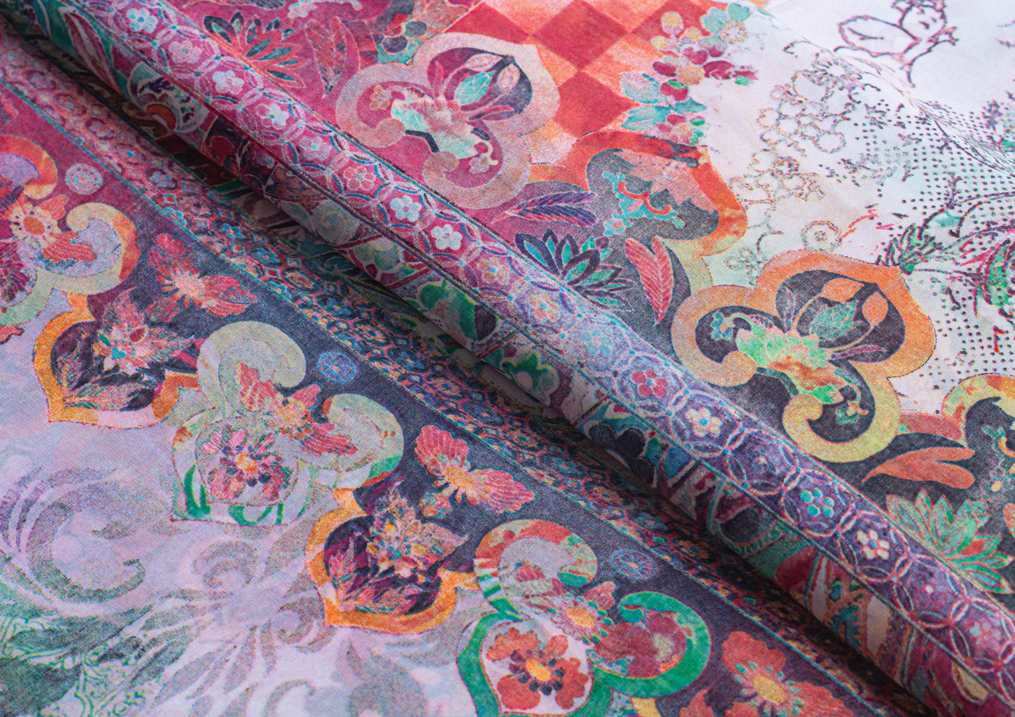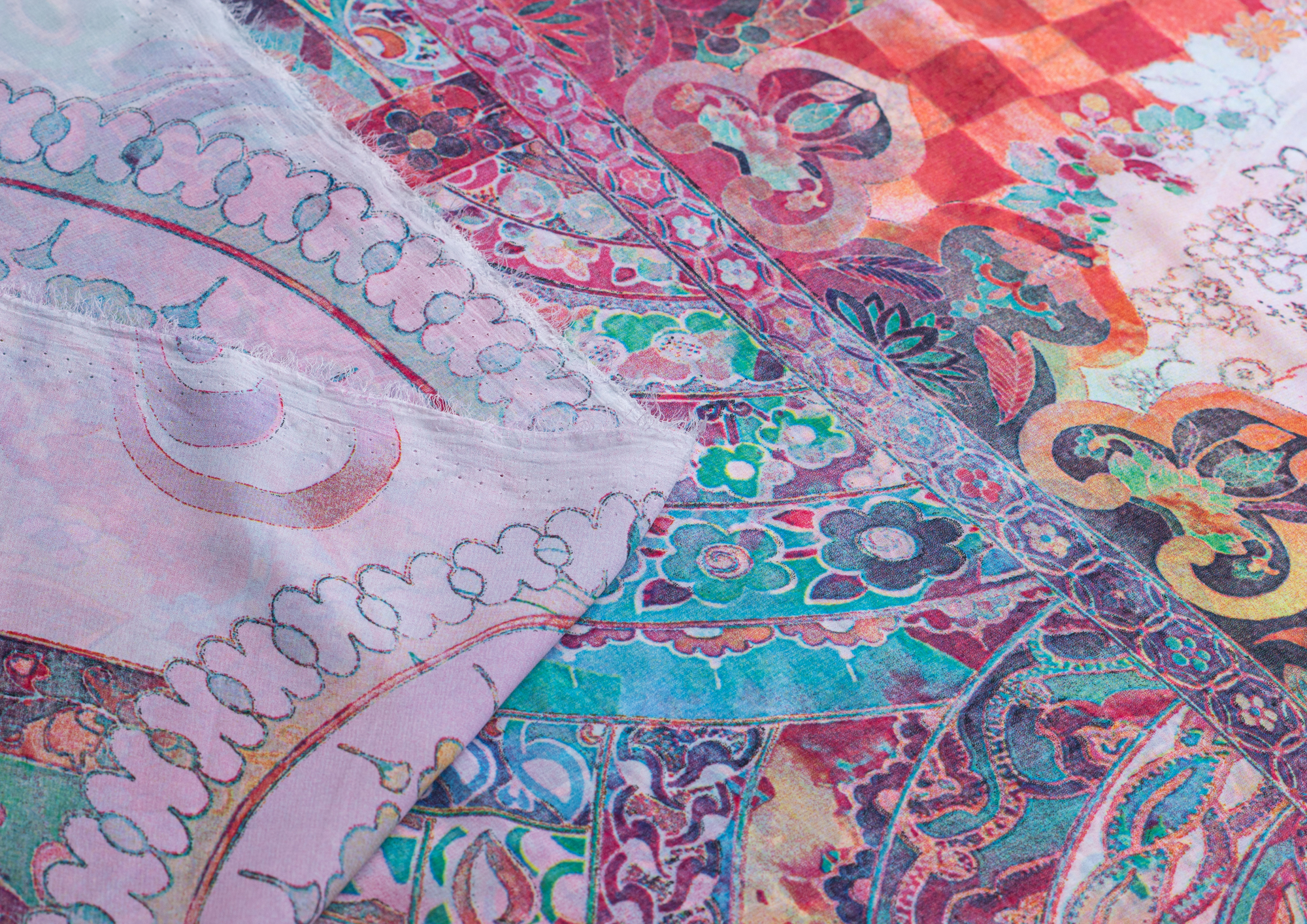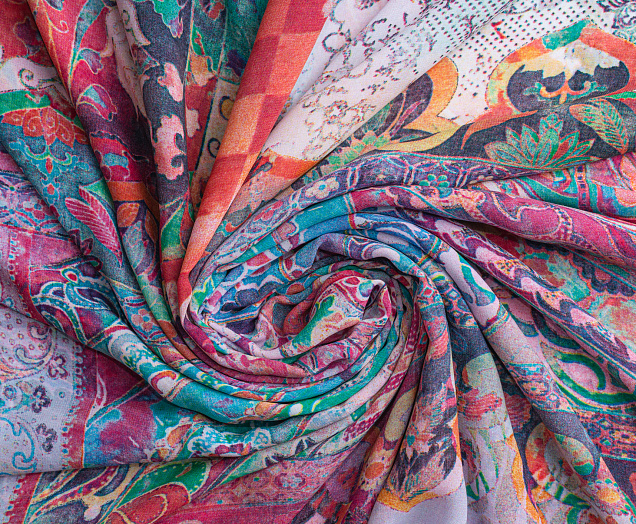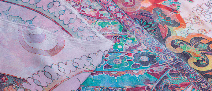 Ткань Французский шифон № 15 Орнамент на сиреневом