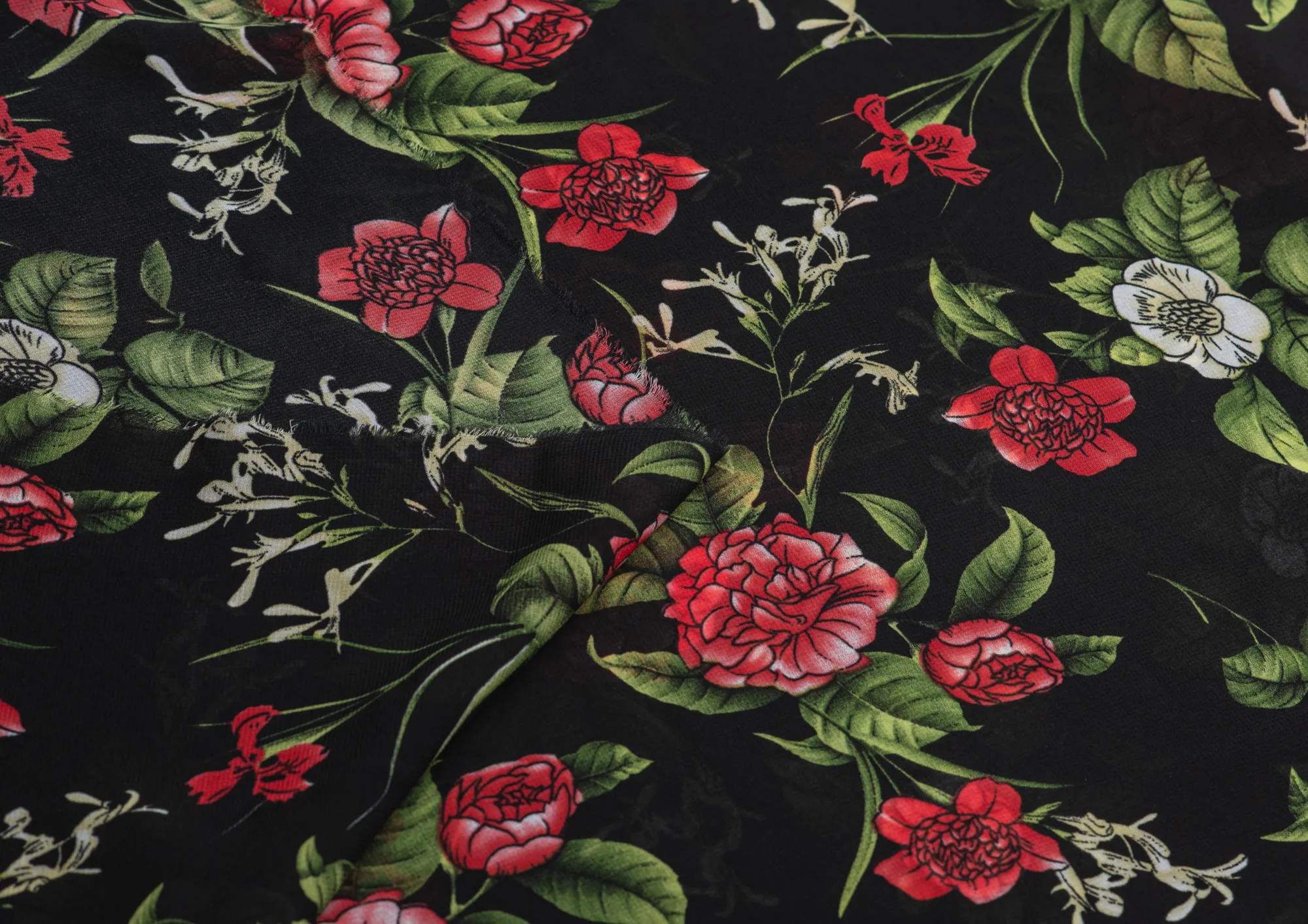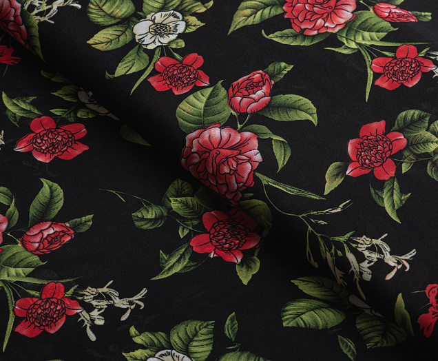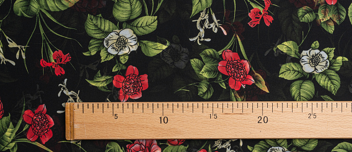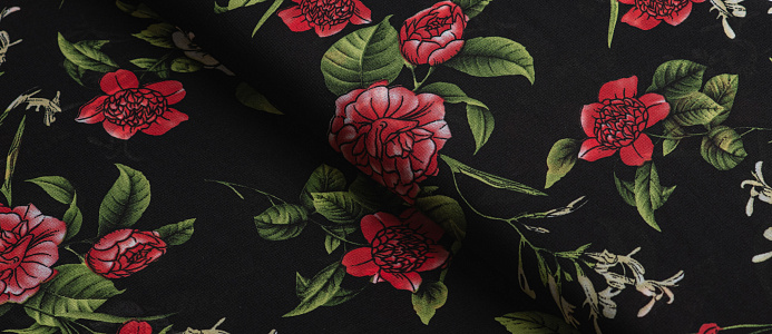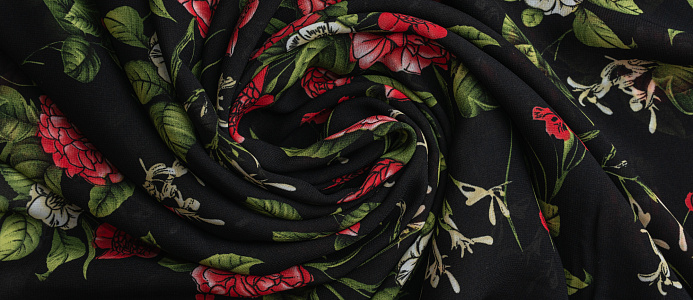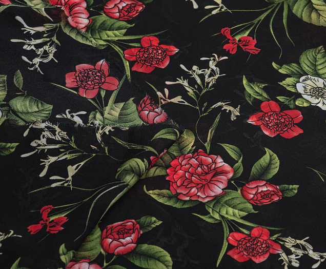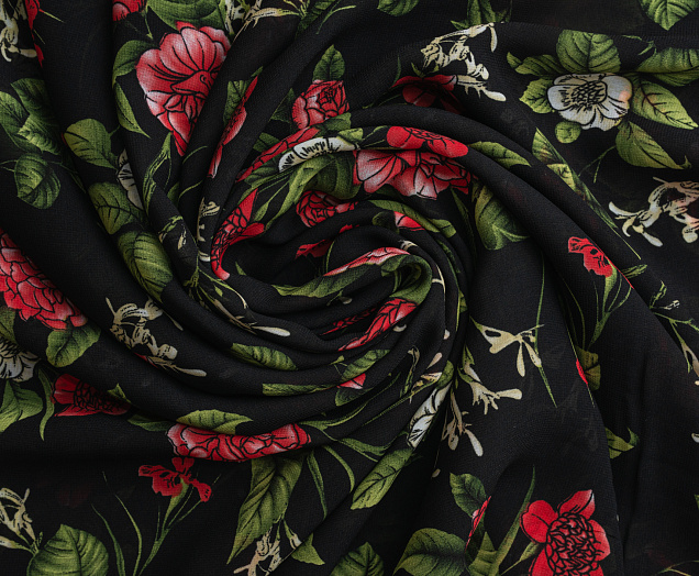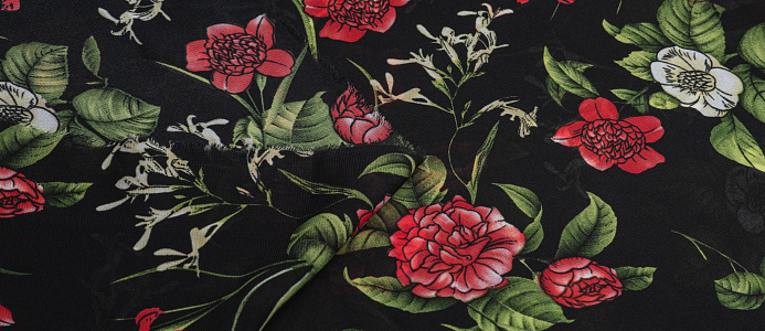 Ткань Французский шифон № 26 Цветы на черном