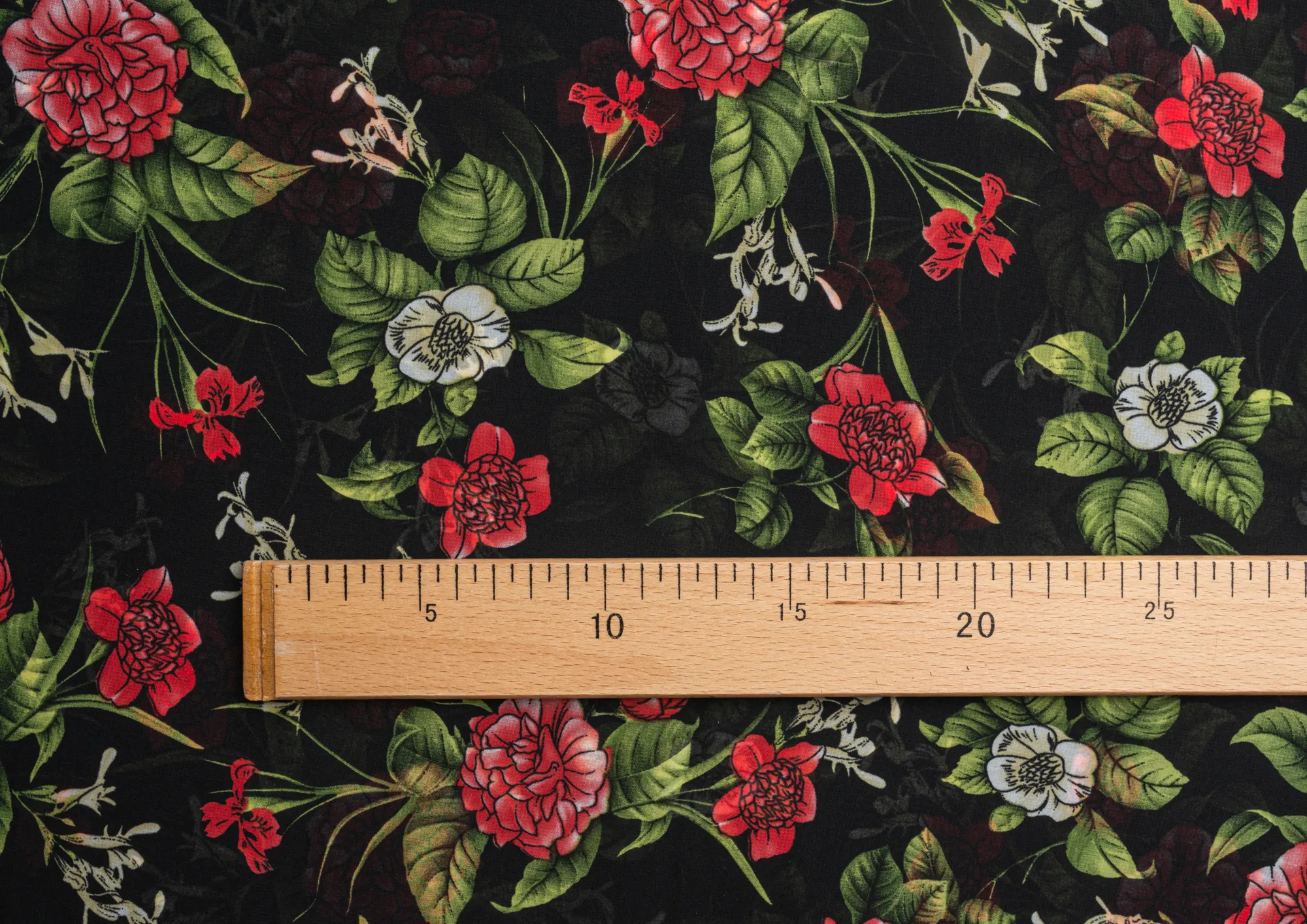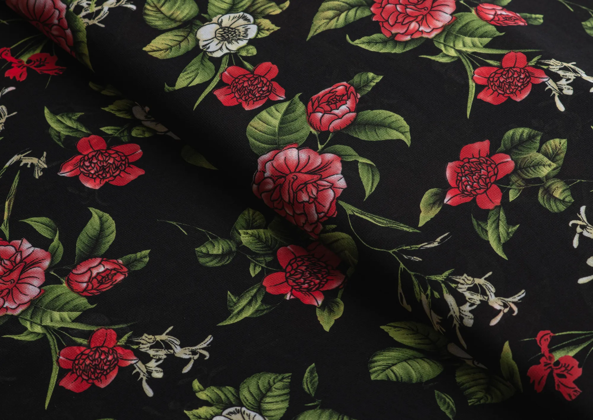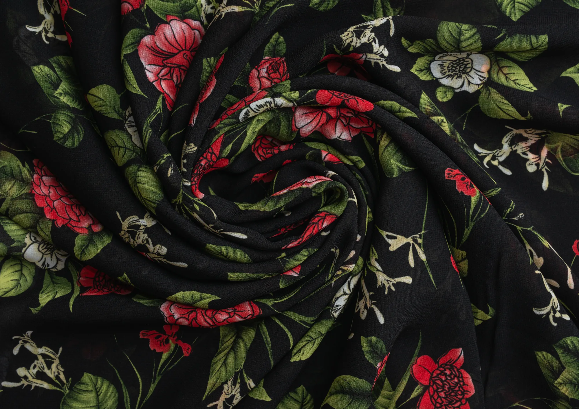 Ткань Французский шифон № 26 Цветы на черном