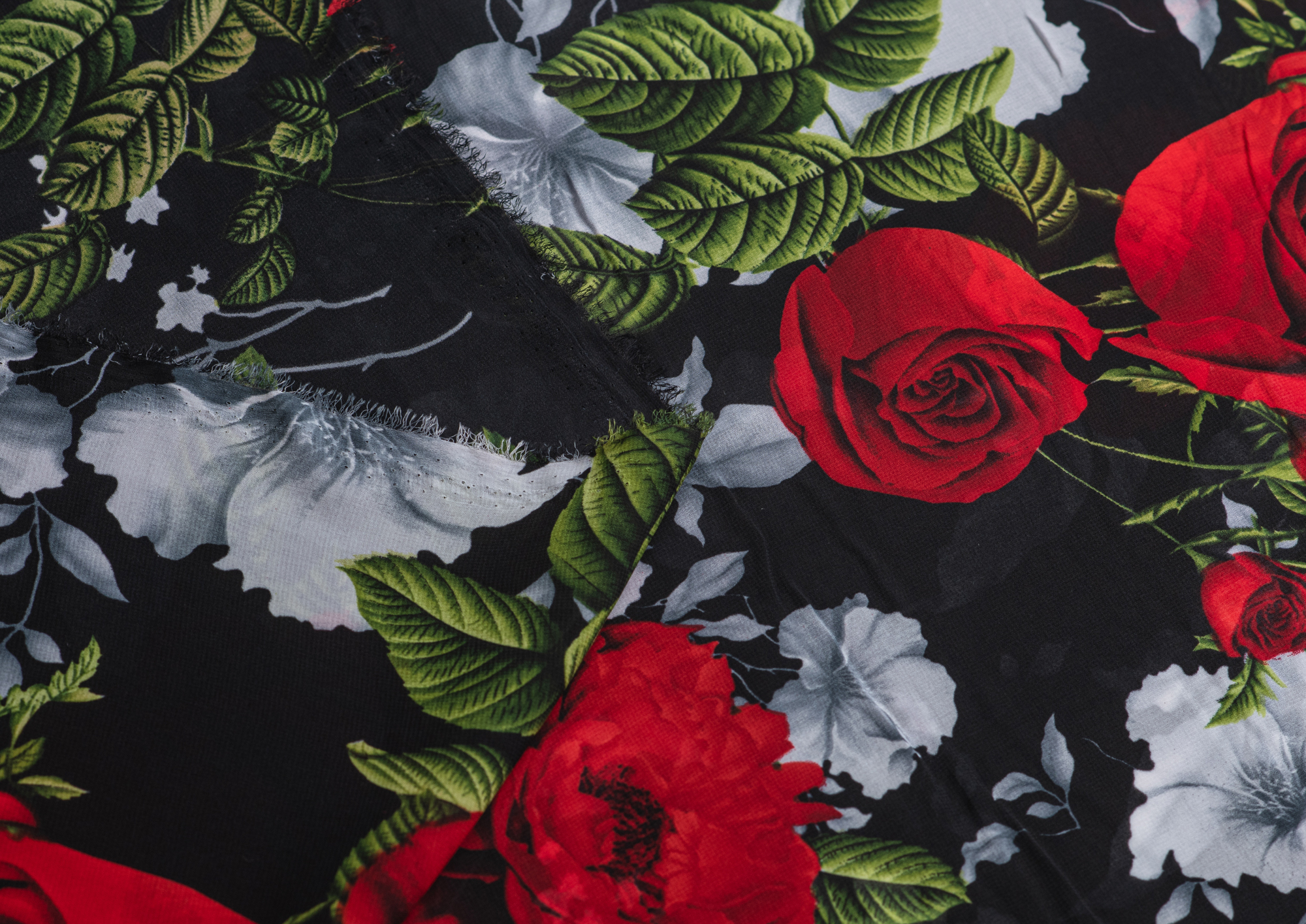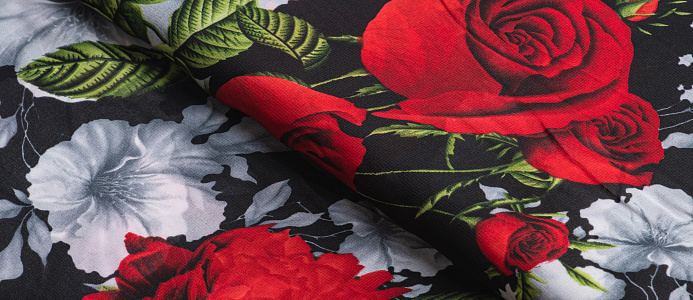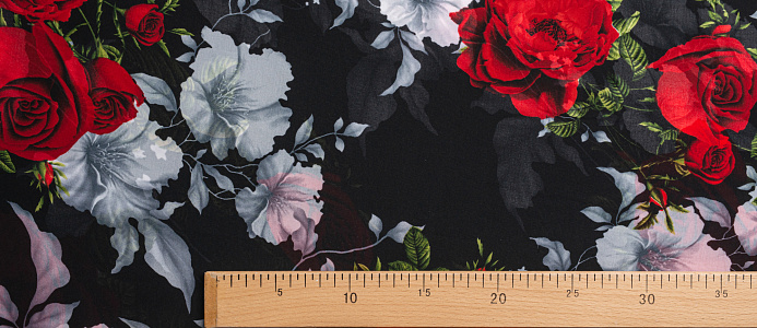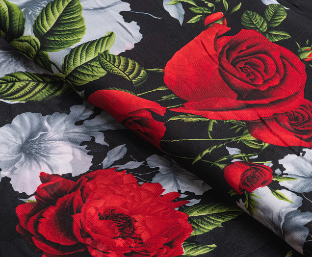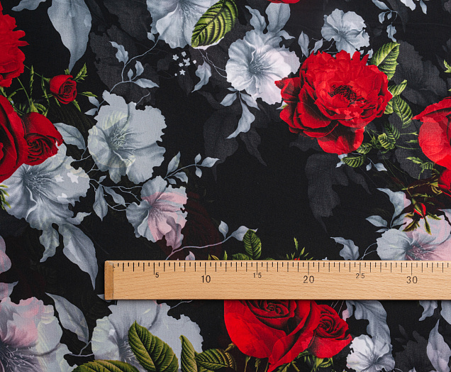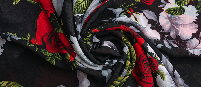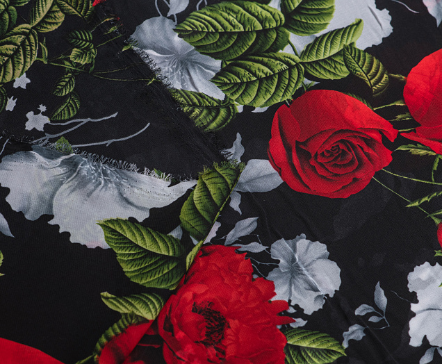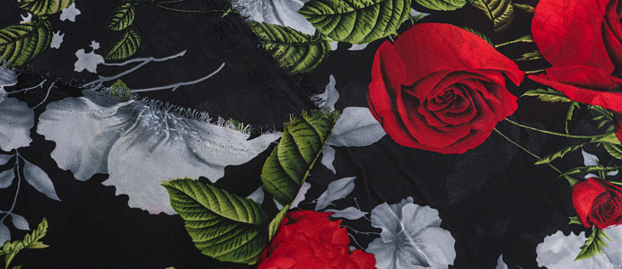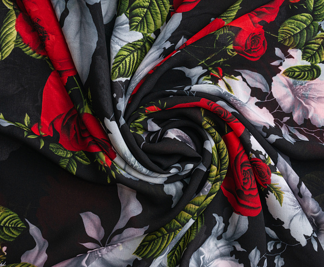Ткань Французский шифон № 9 Розы на черном