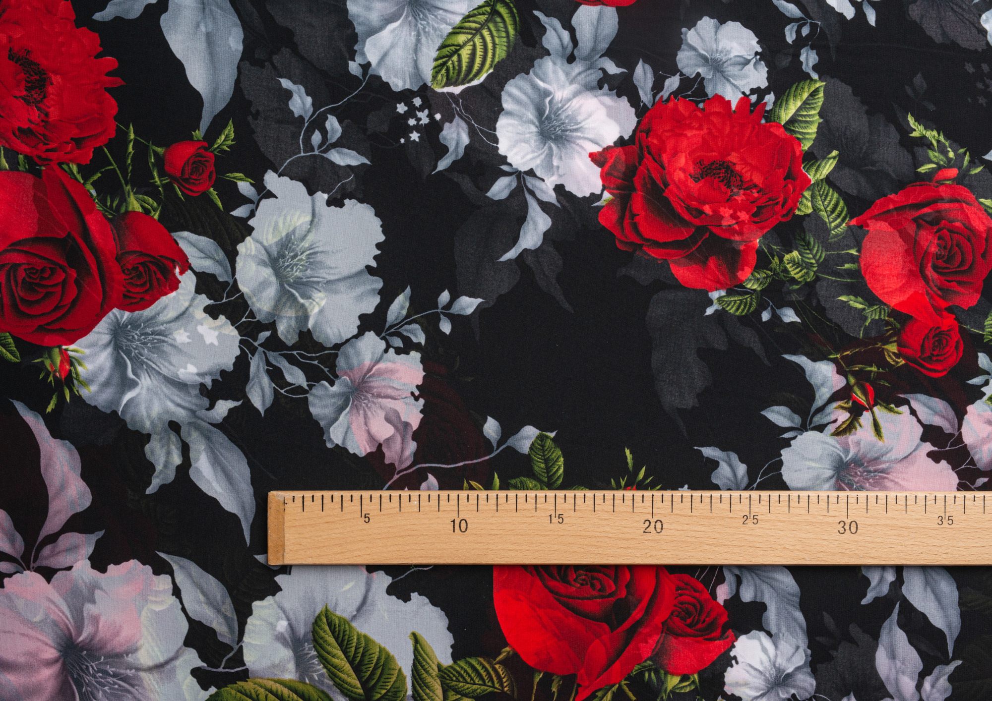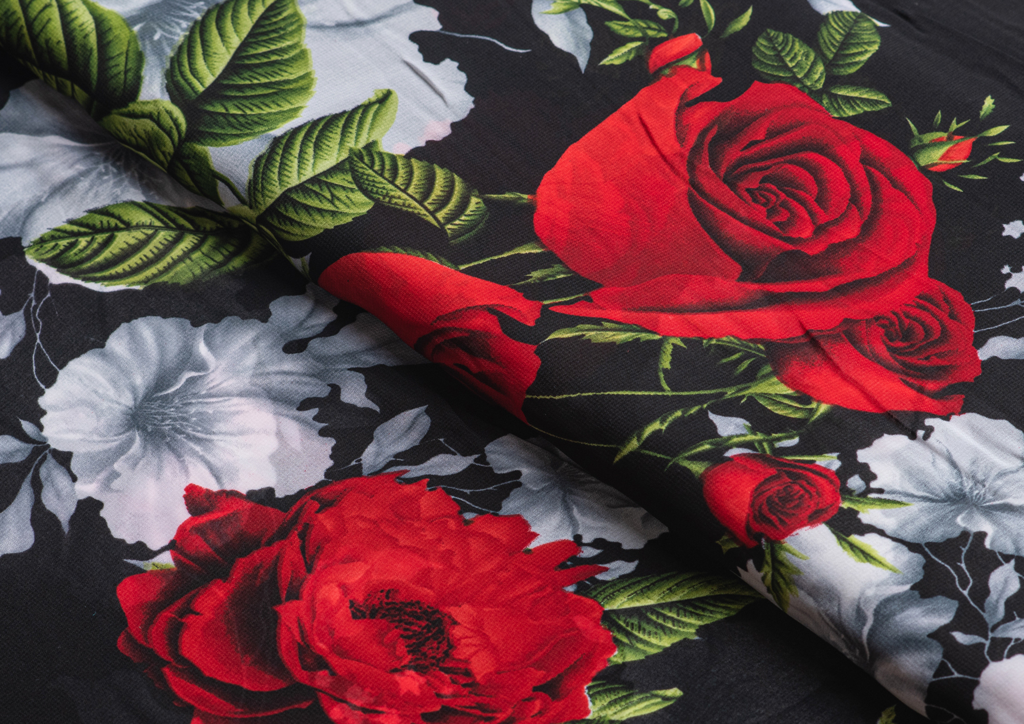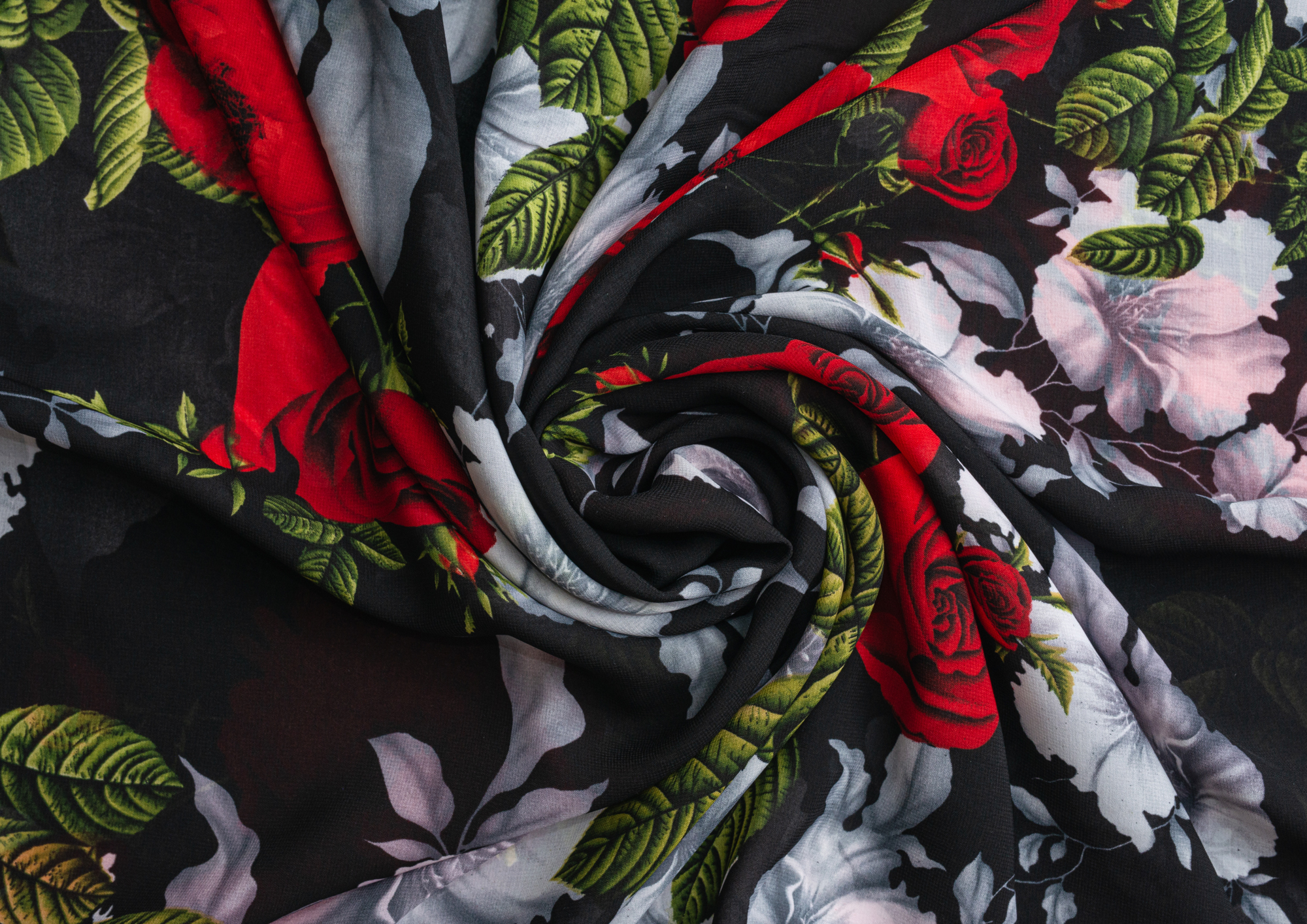Ткань Французский шифон № 9 Розы на черном