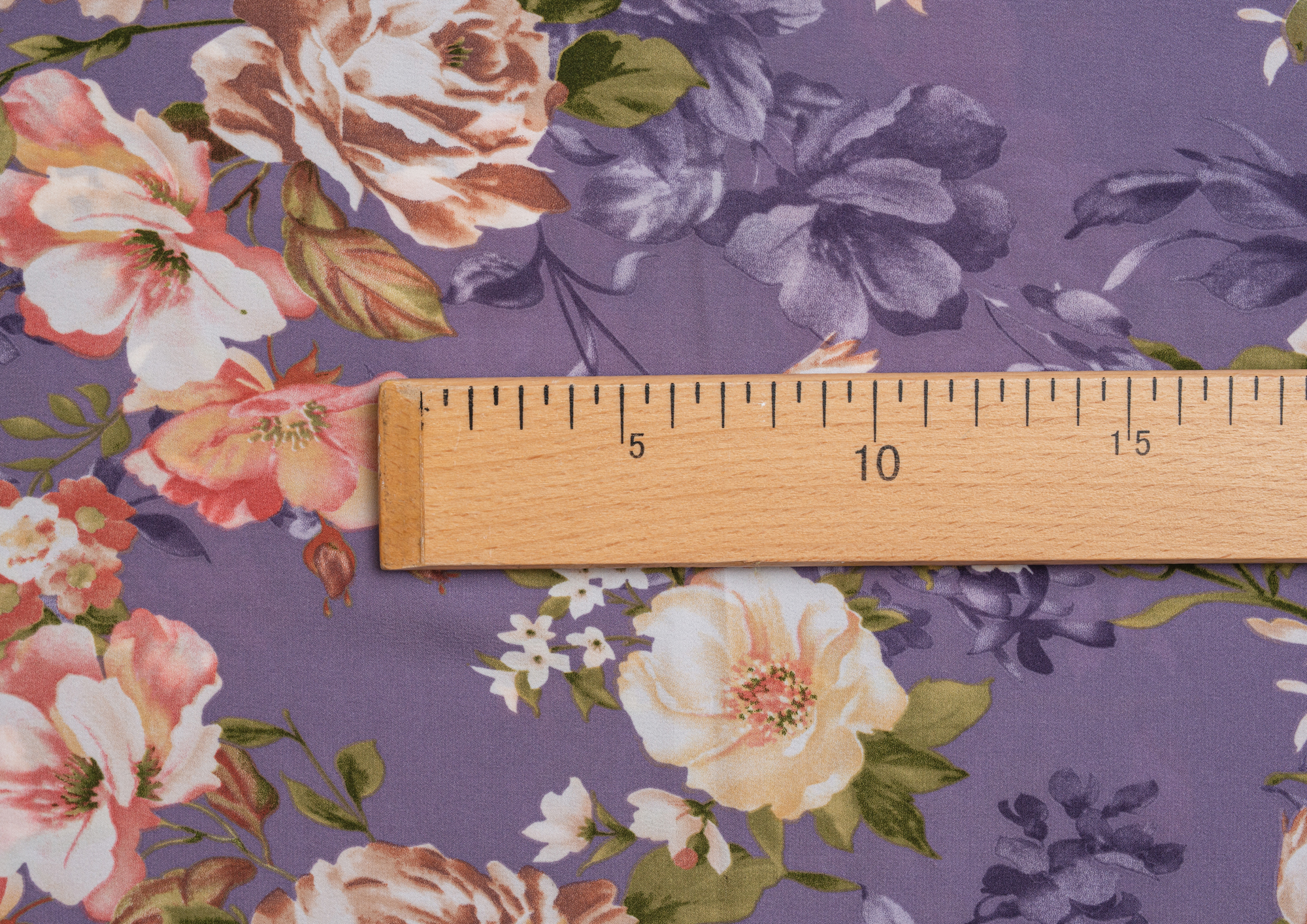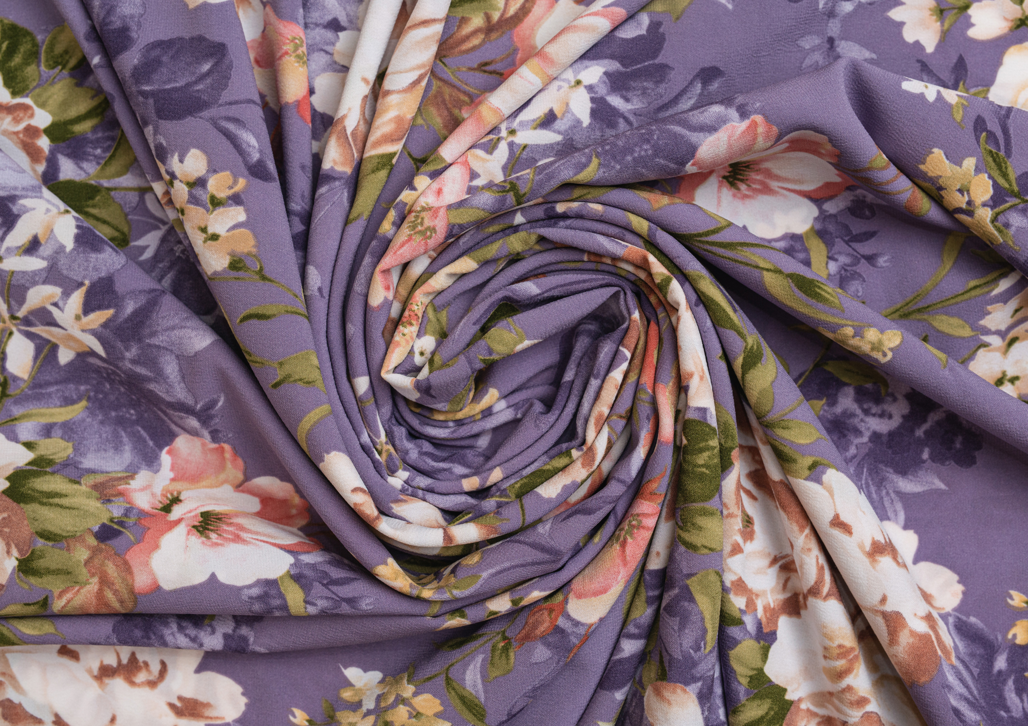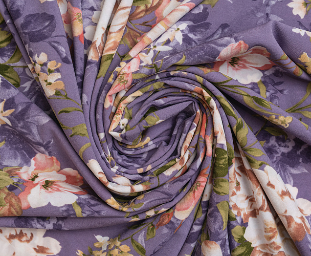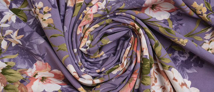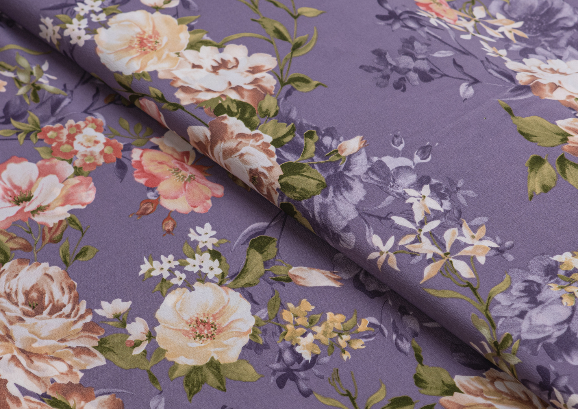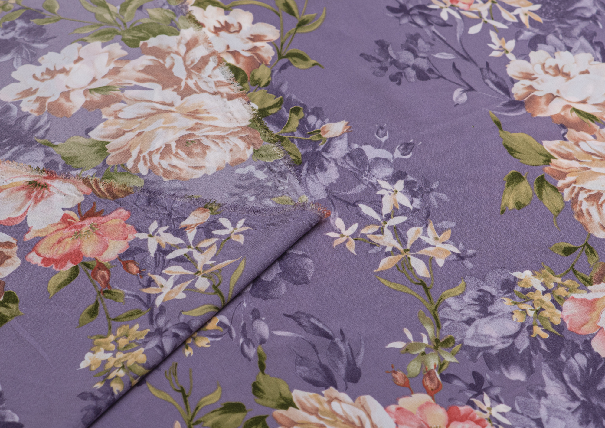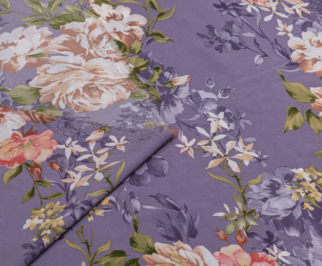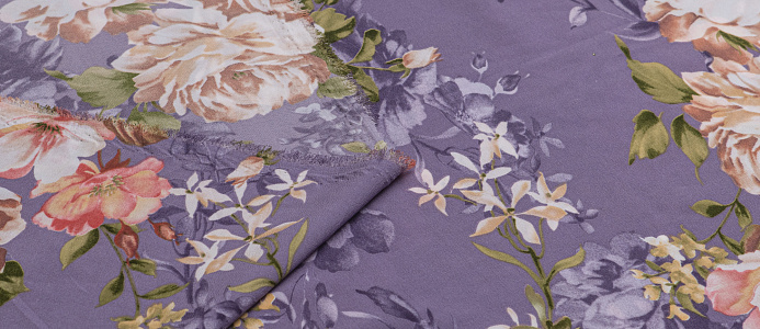 Ткань Французский шифон принт 1 Розы на лавандовом поле