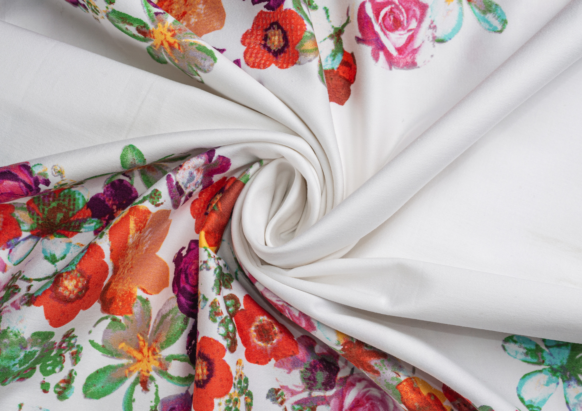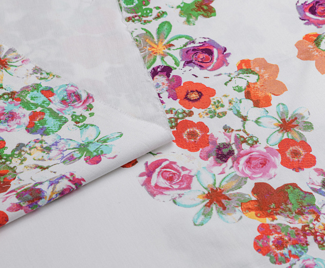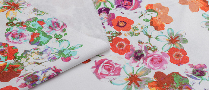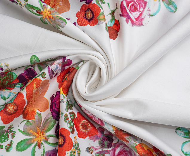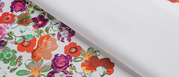 Хлопковая, средней плотности ткань с эластаном. По всей поверхности полотна расположен принт. Ткань тонкая, при этом прочная, хорошо держит форму. Отлично подходит для пошива платьев, сарафанов, мужских и женских рубашек .