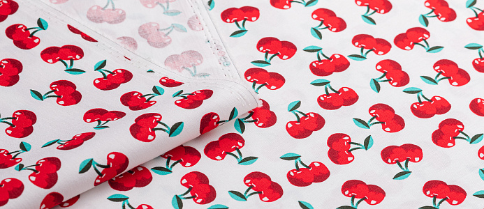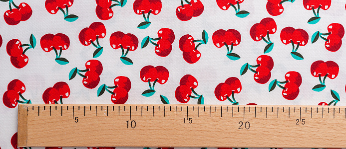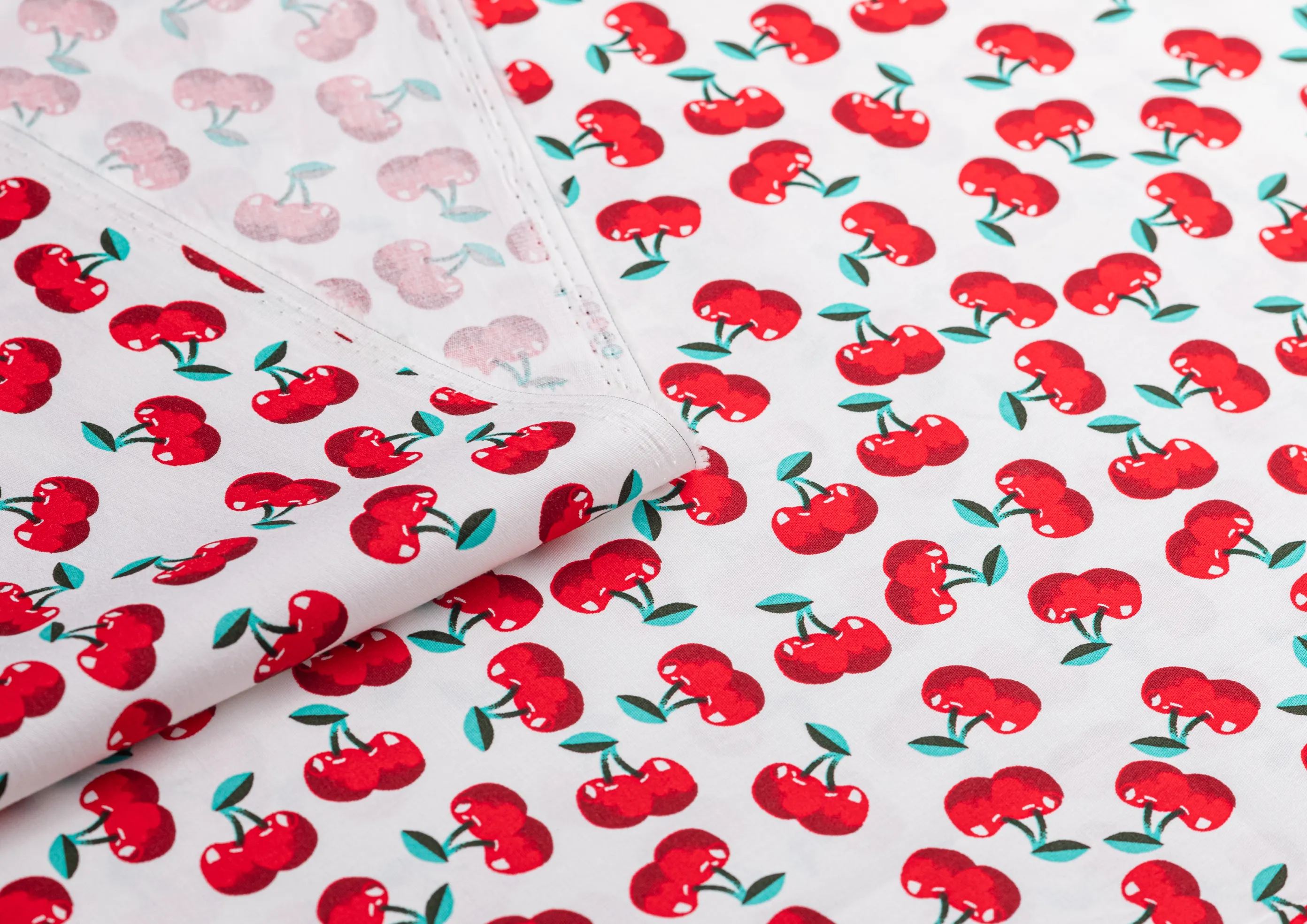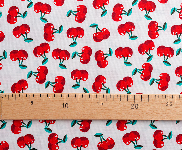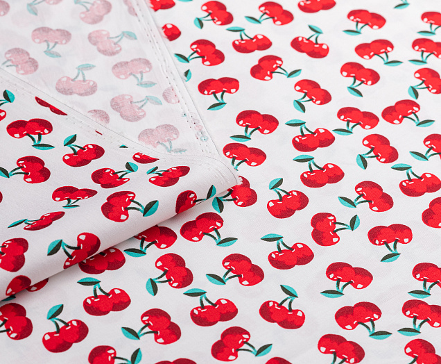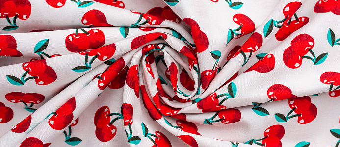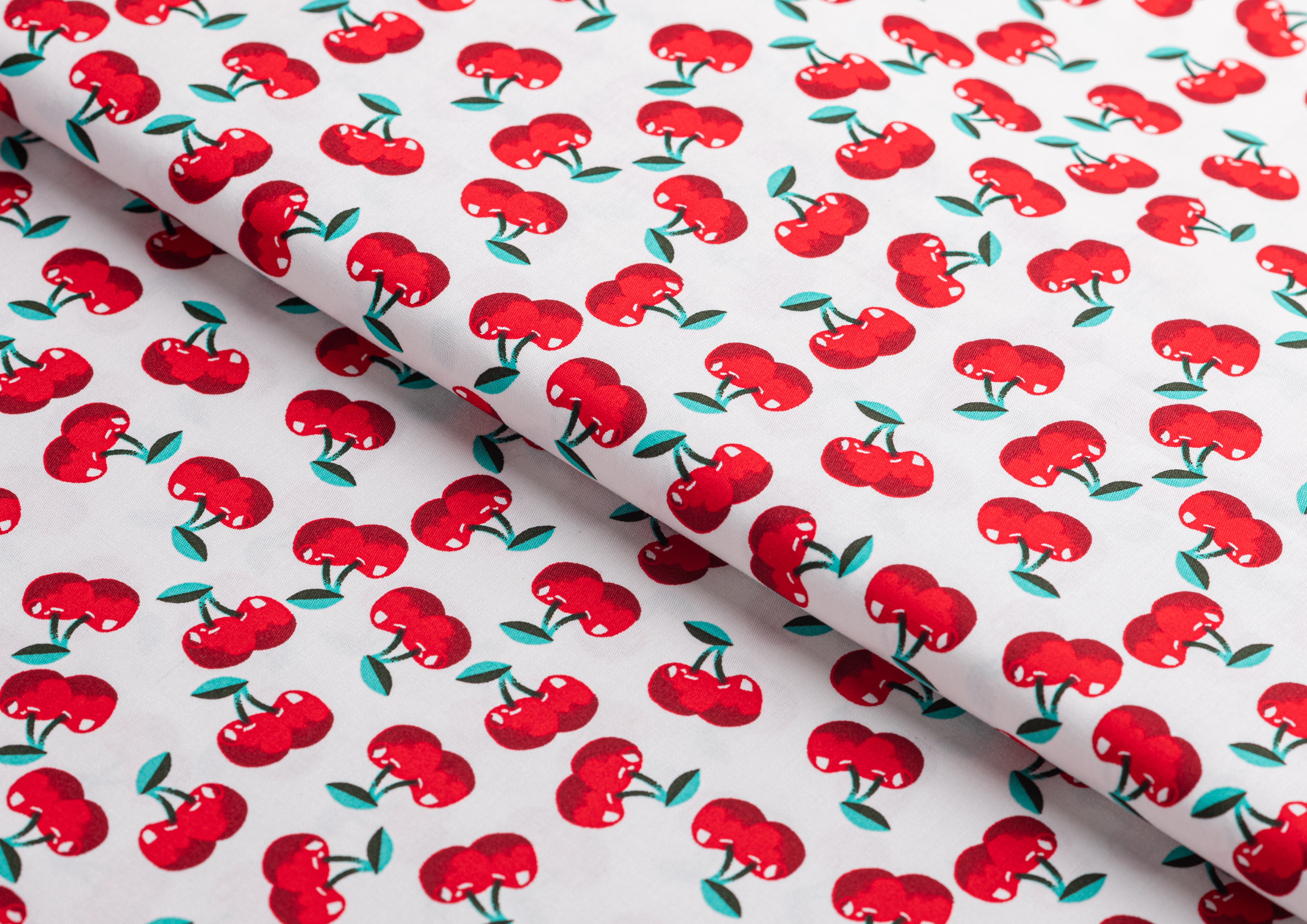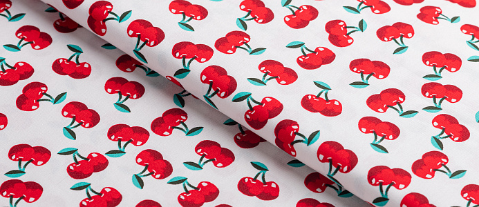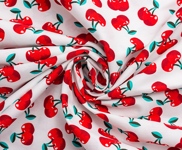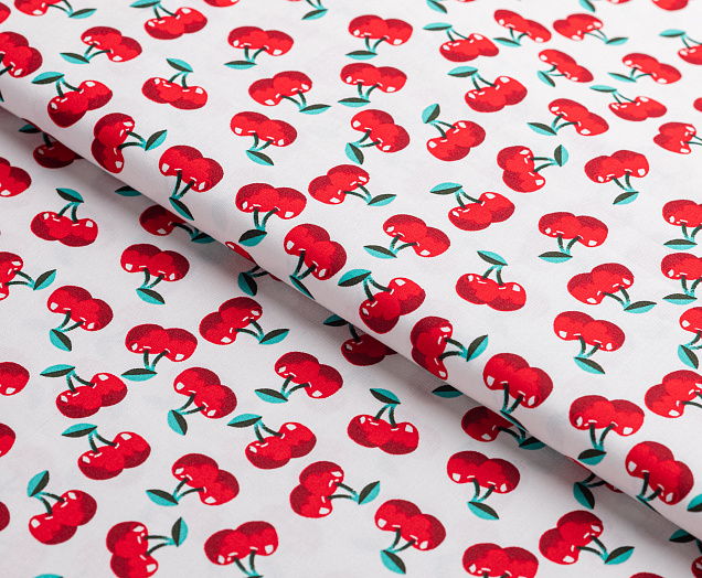 Ткань Коттон "Мелкая вишня" № 2 на белом