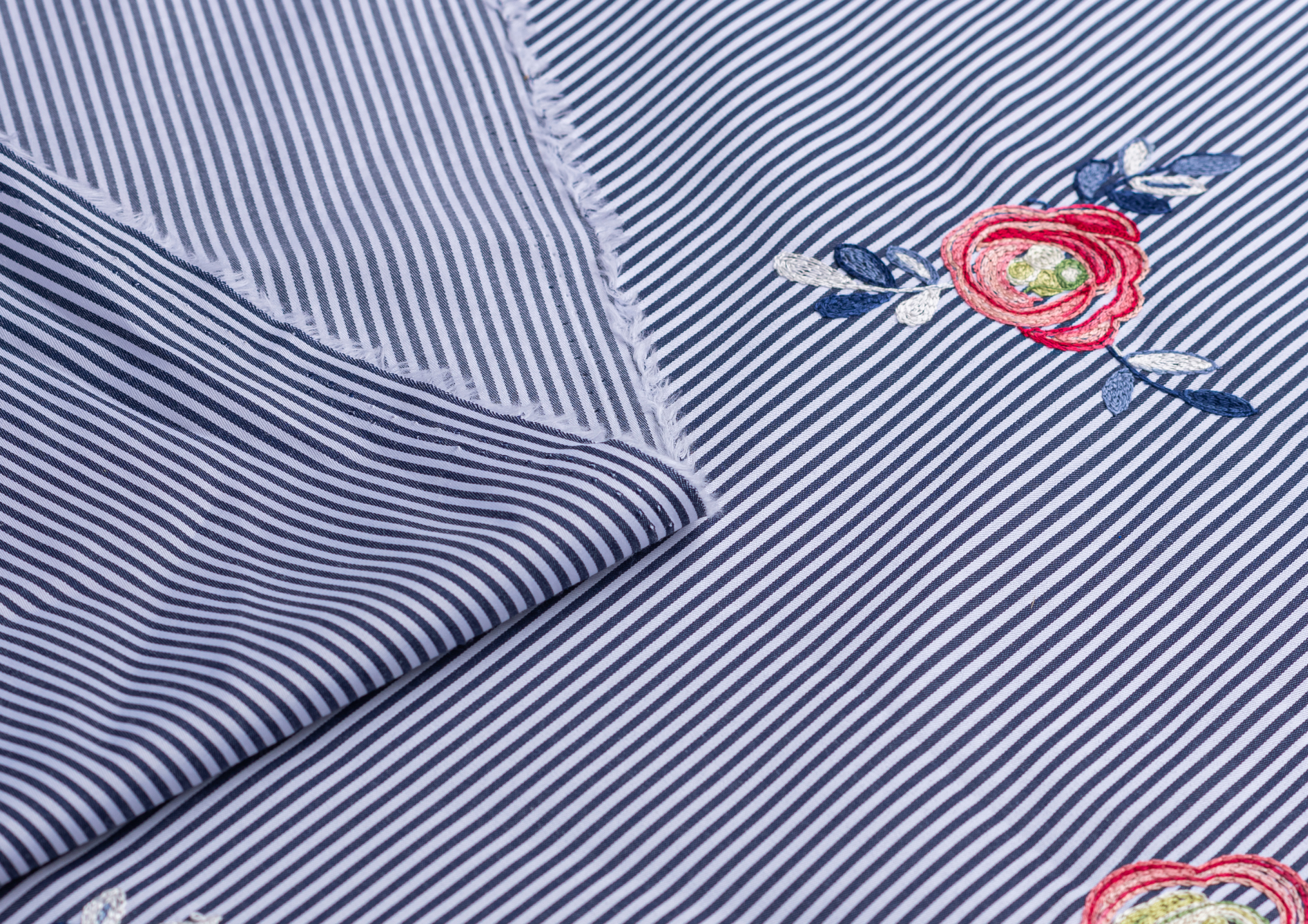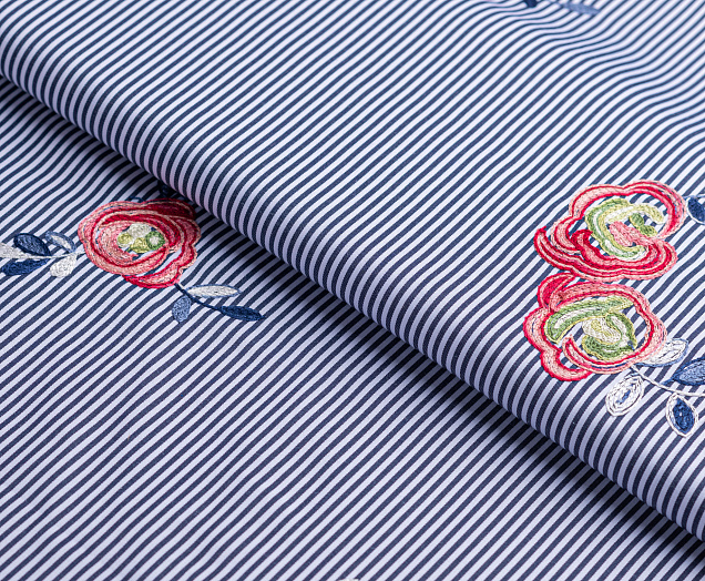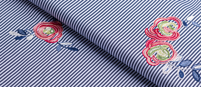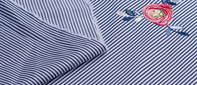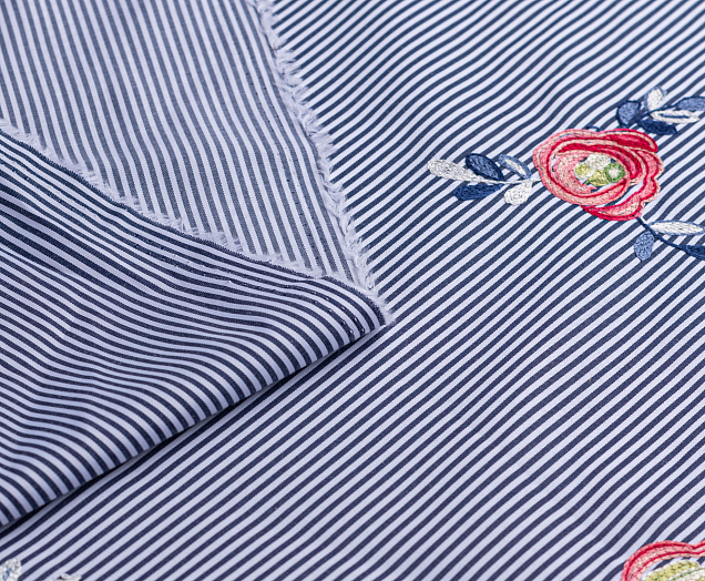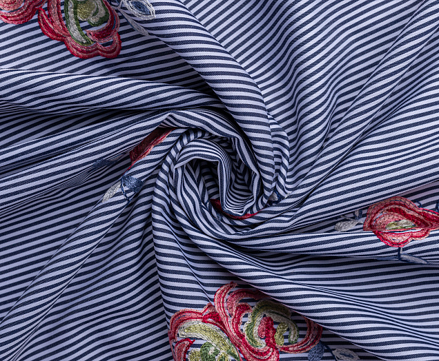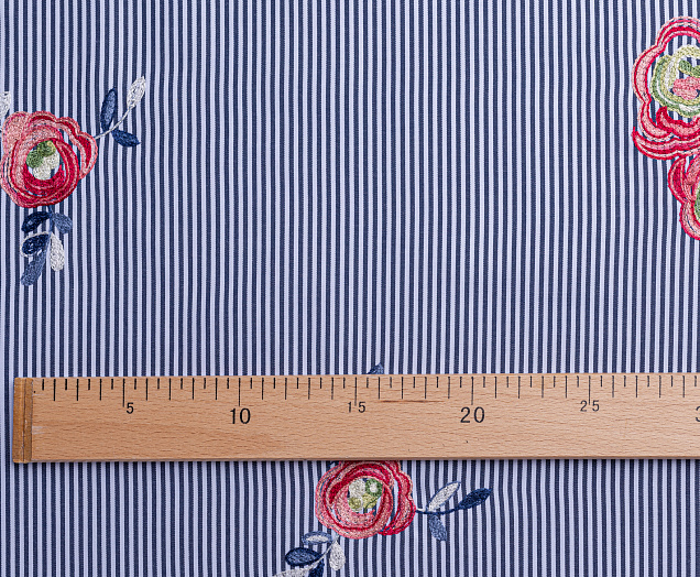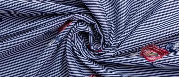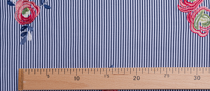 Ткань Коттон полоска с вышивкой №2 черный