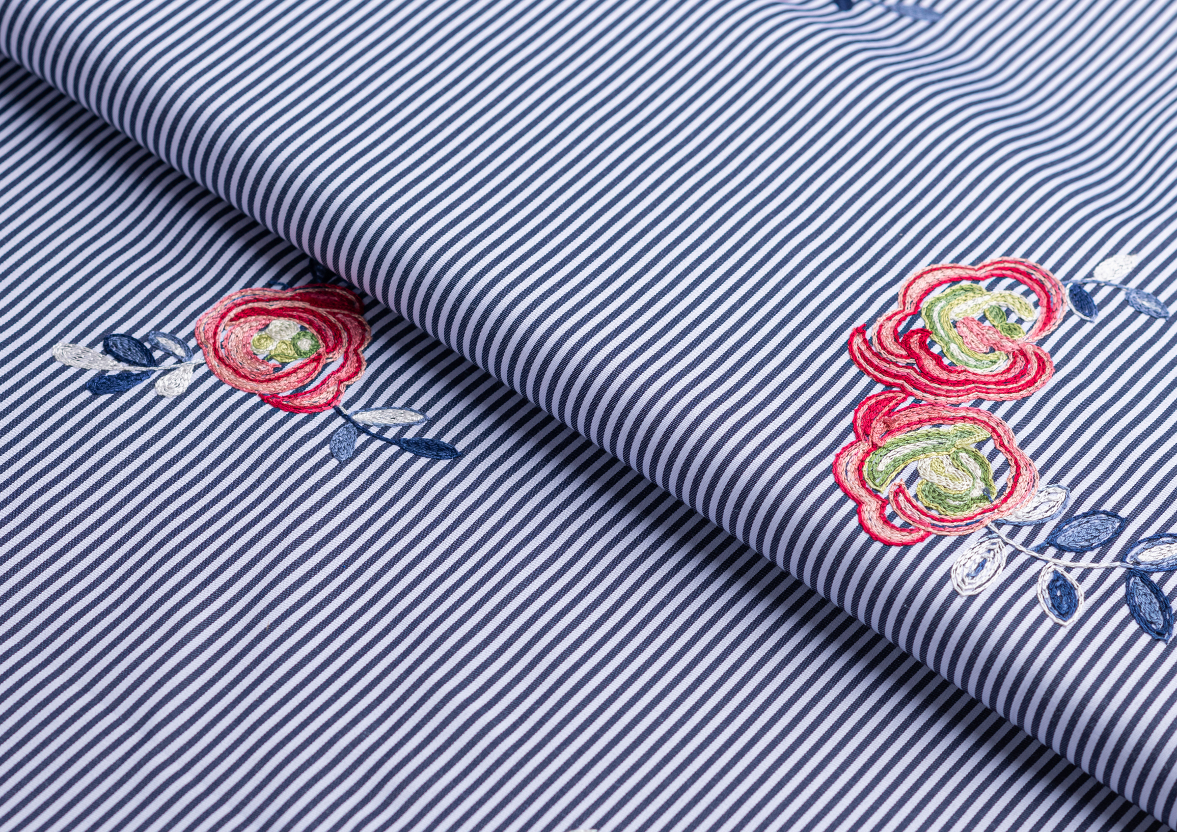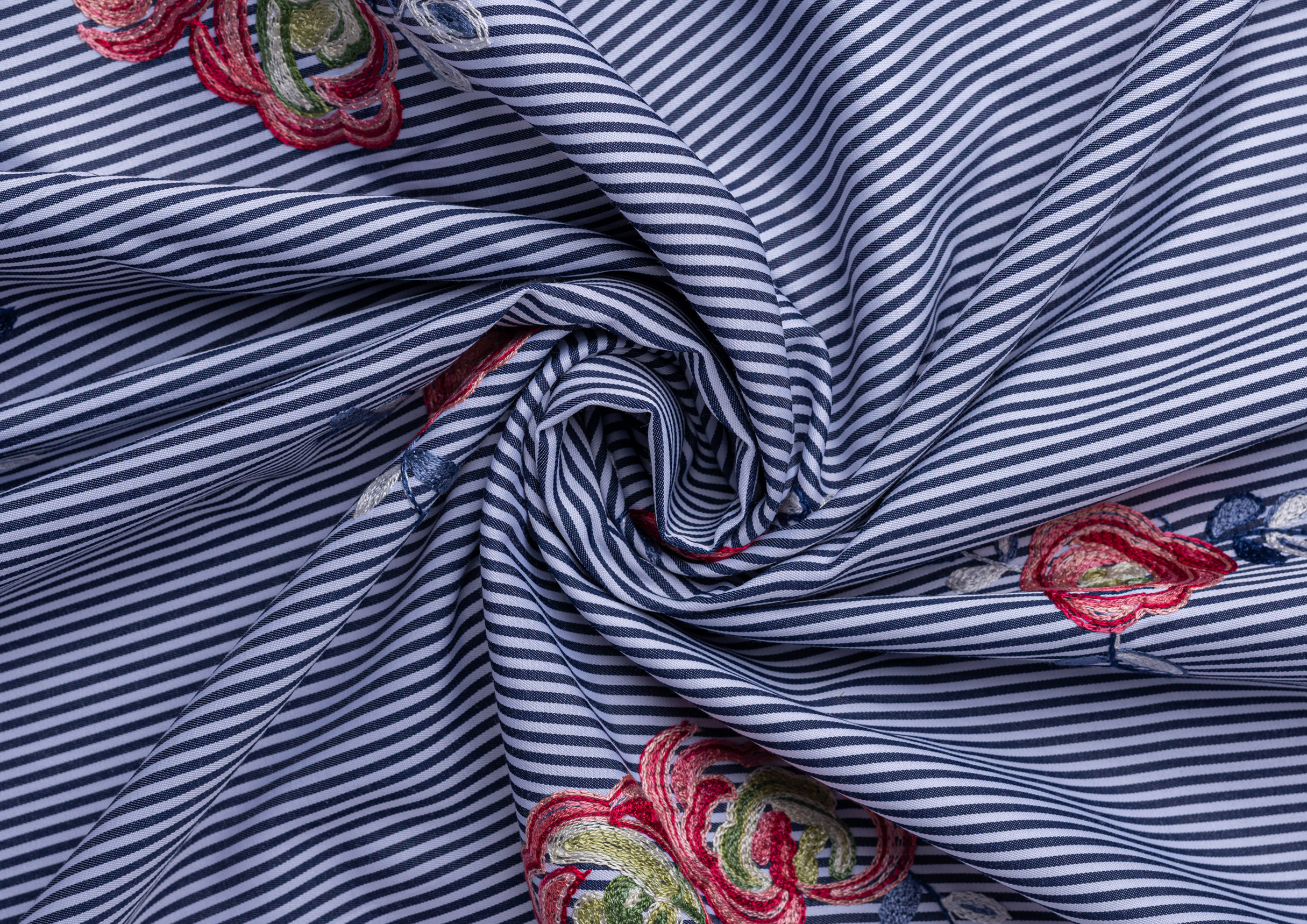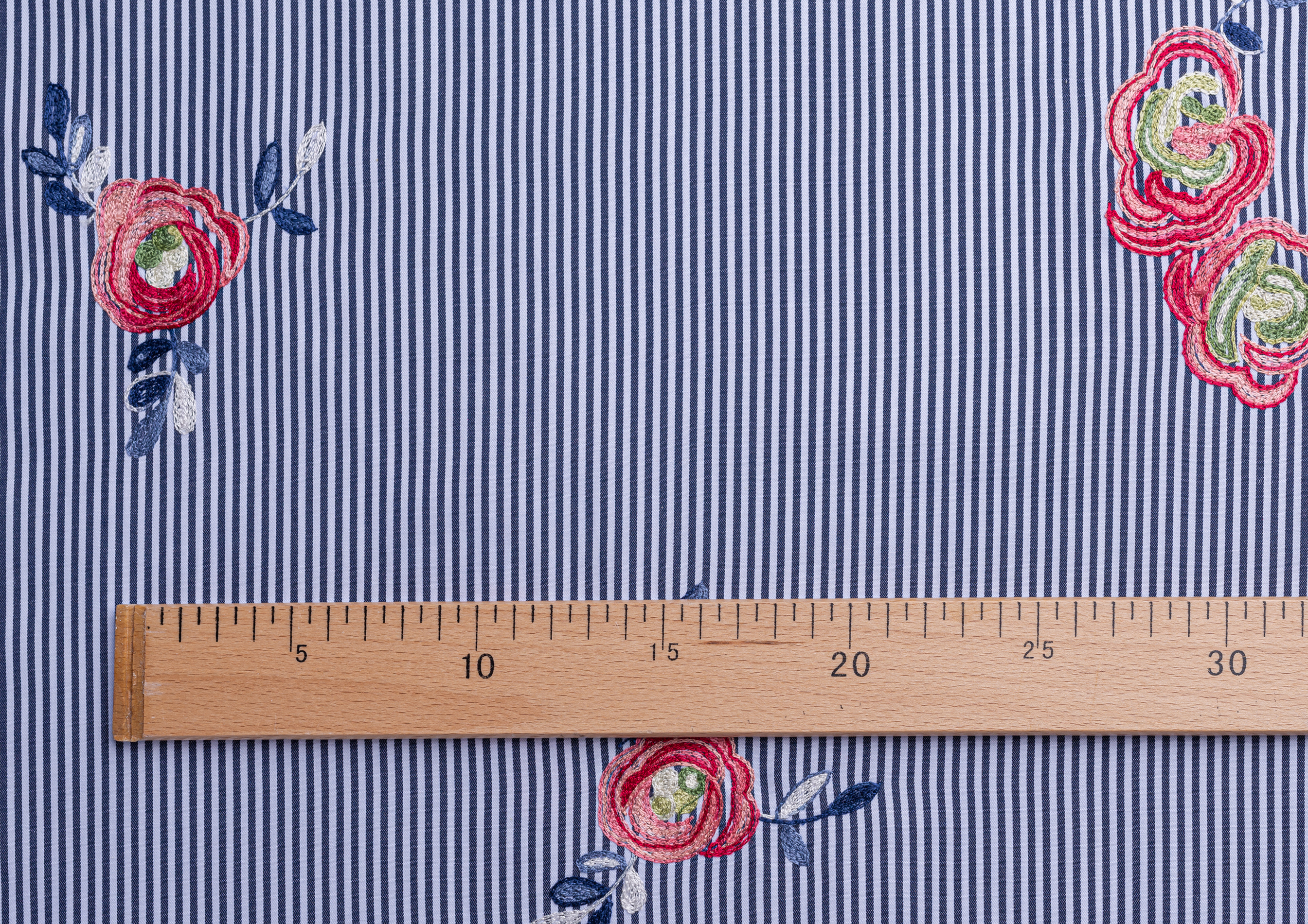 Ткань Коттон полоска с вышивкой №2 черный