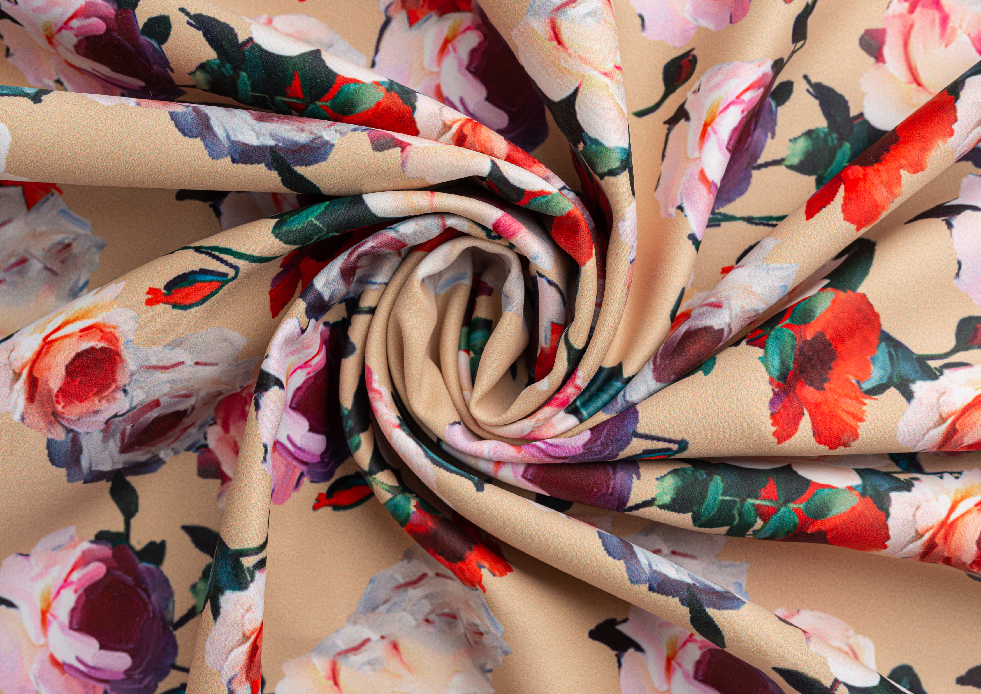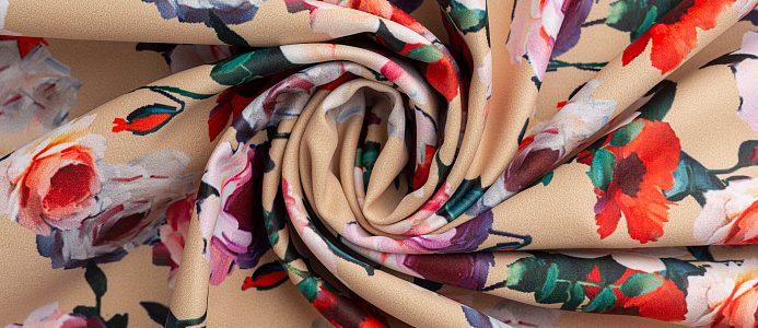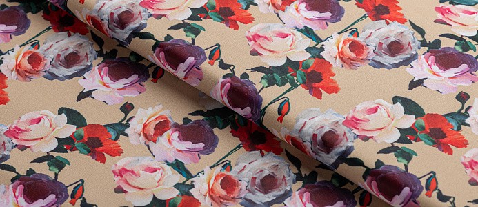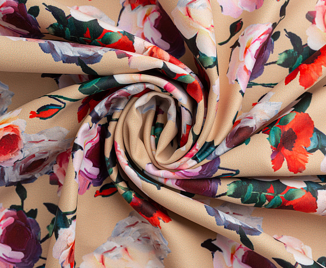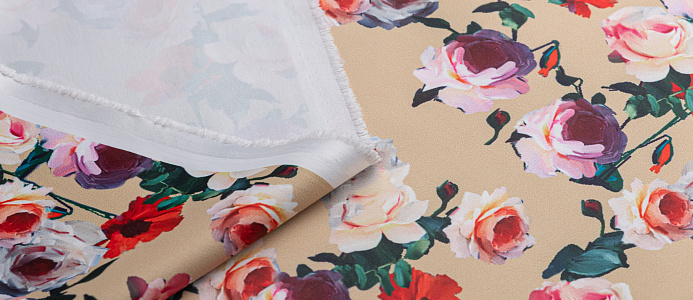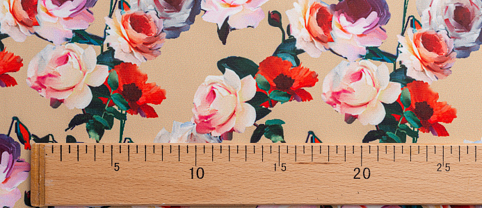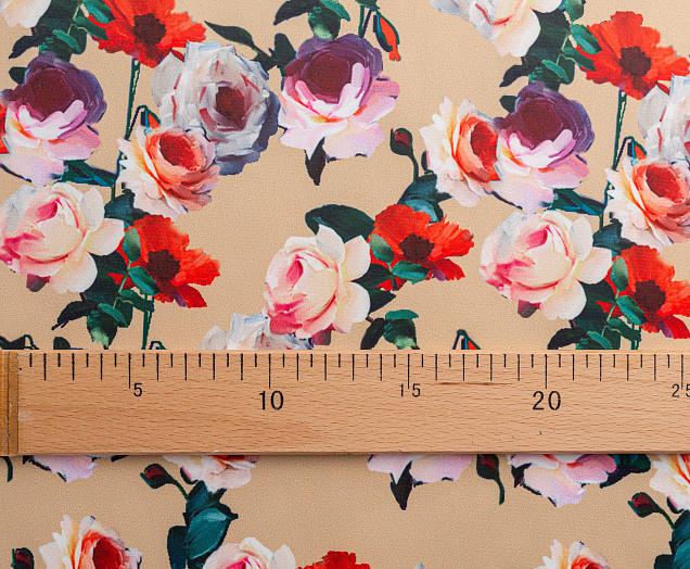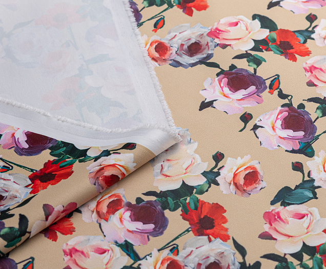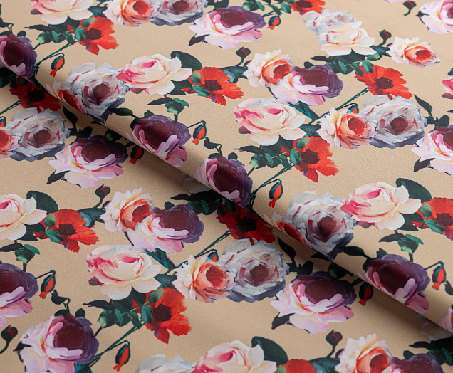 Ткань Коттон сатин принт № 5 розы на беж