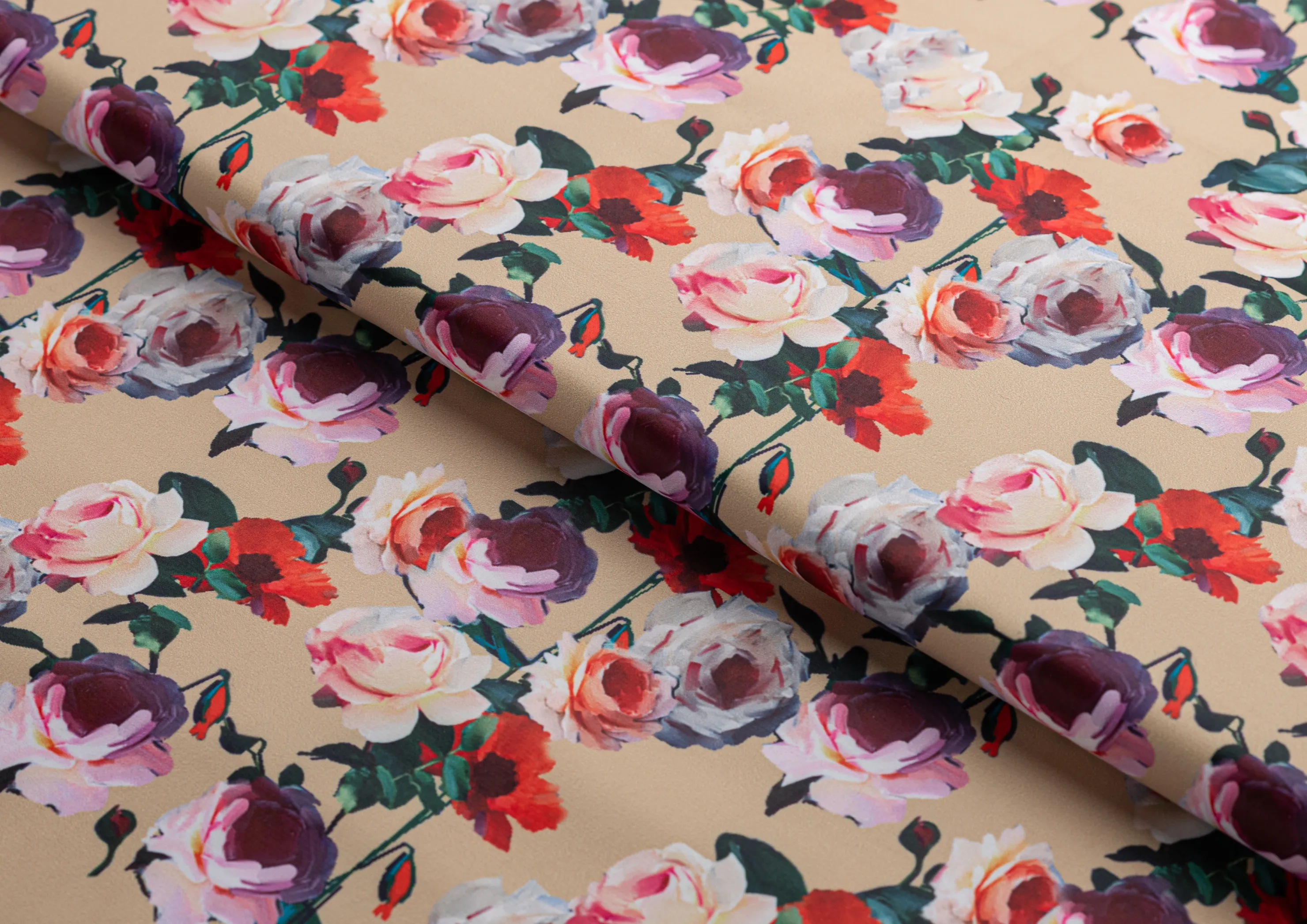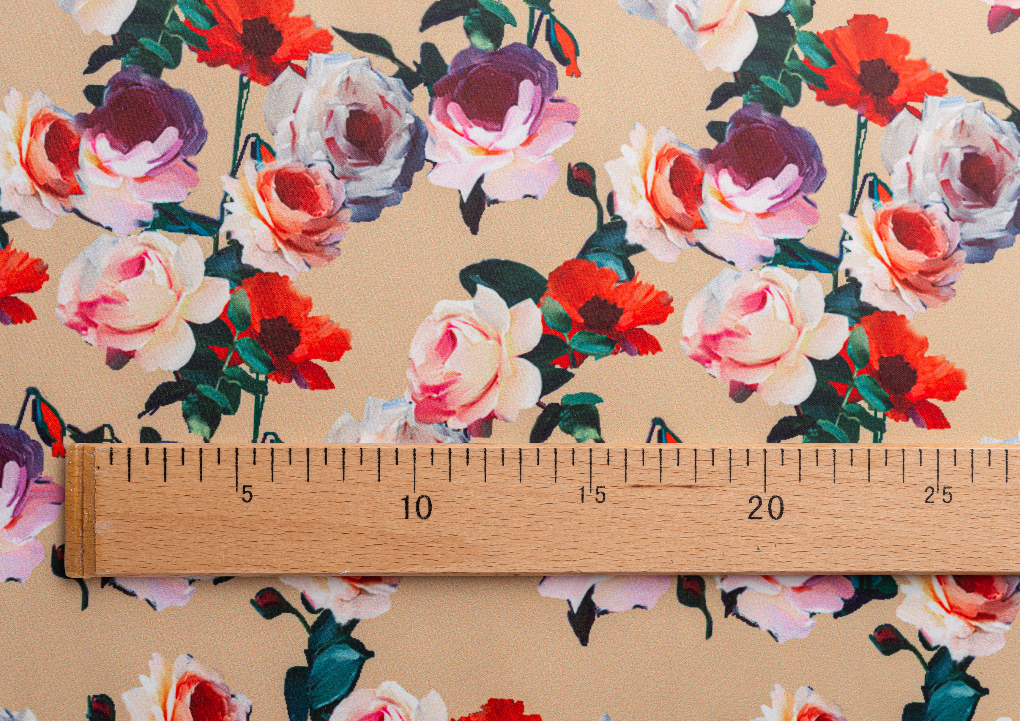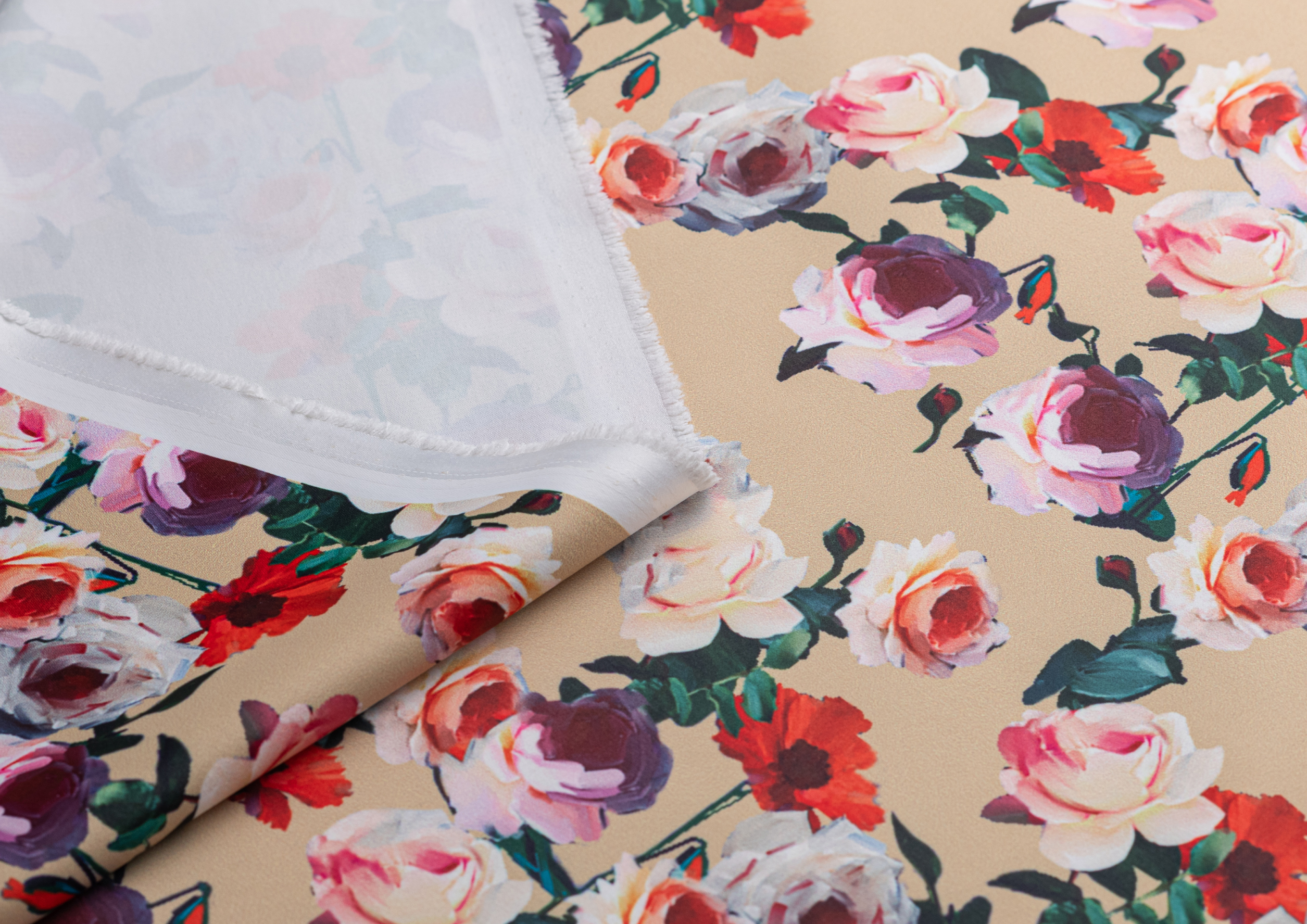 Ткань Коттон сатин принт № 5 розы на беж