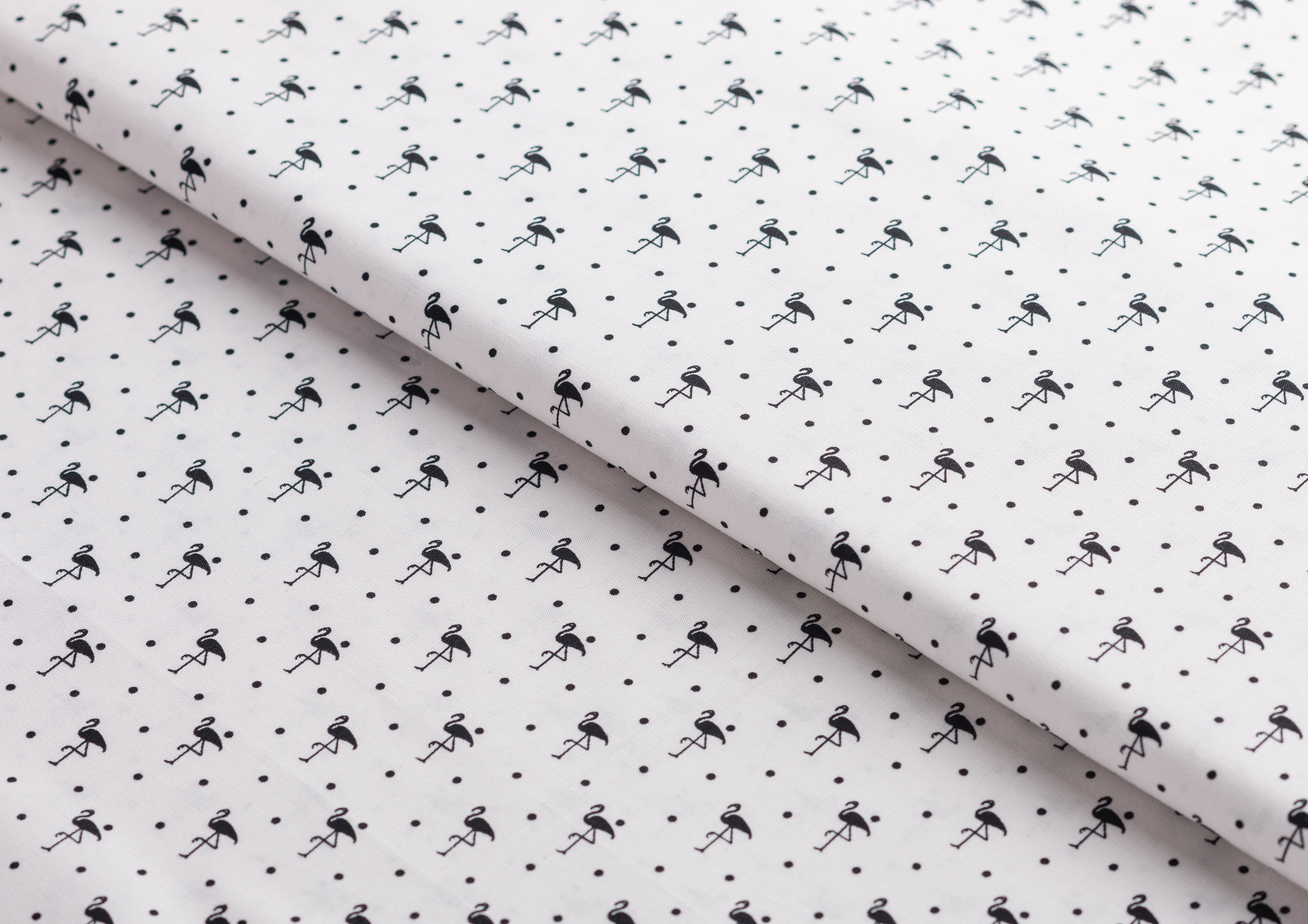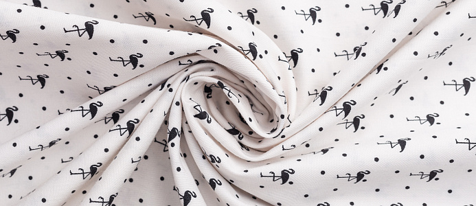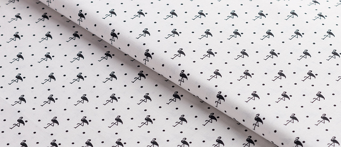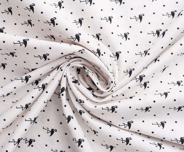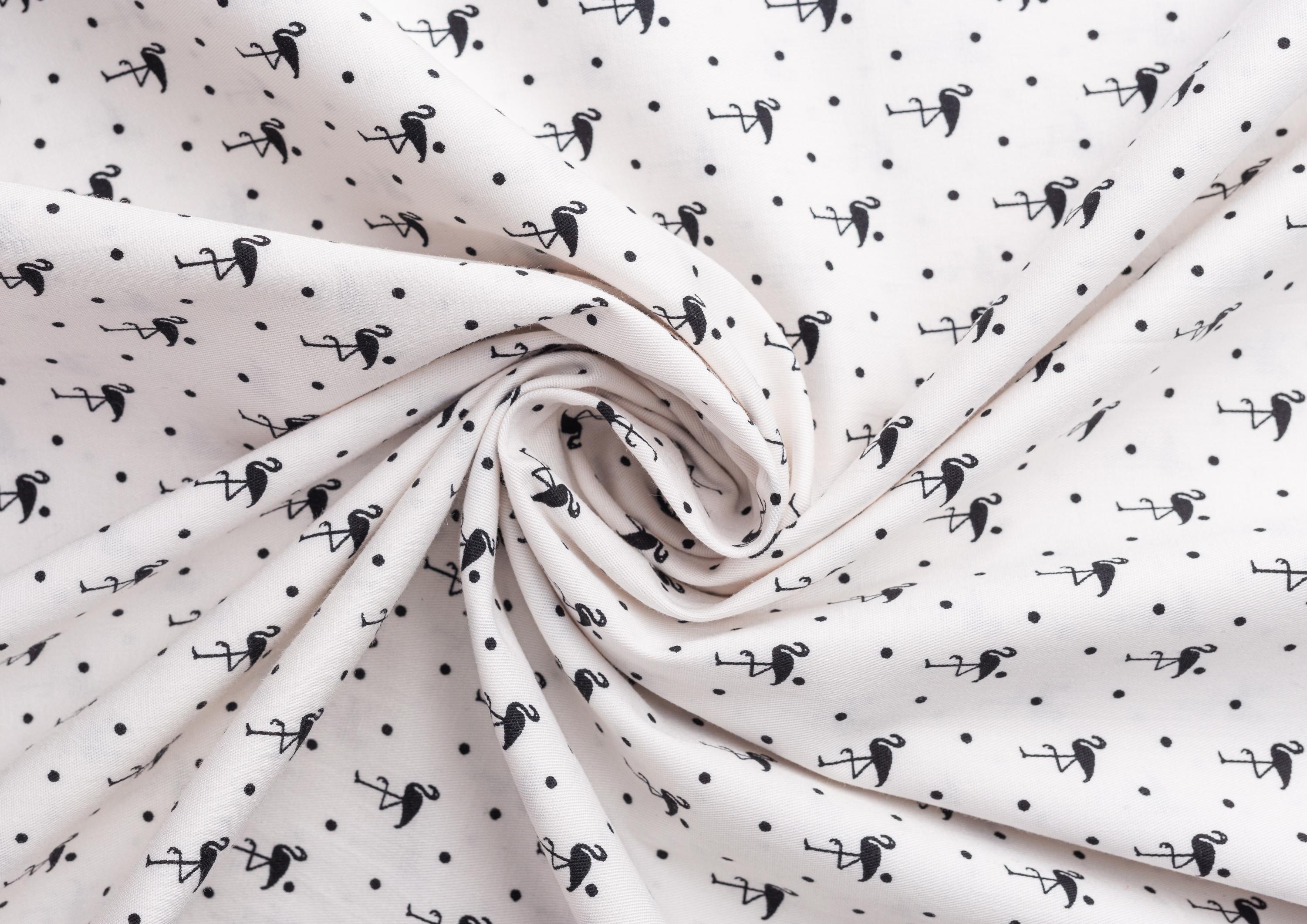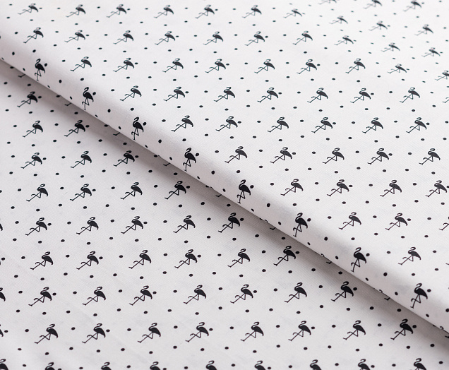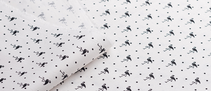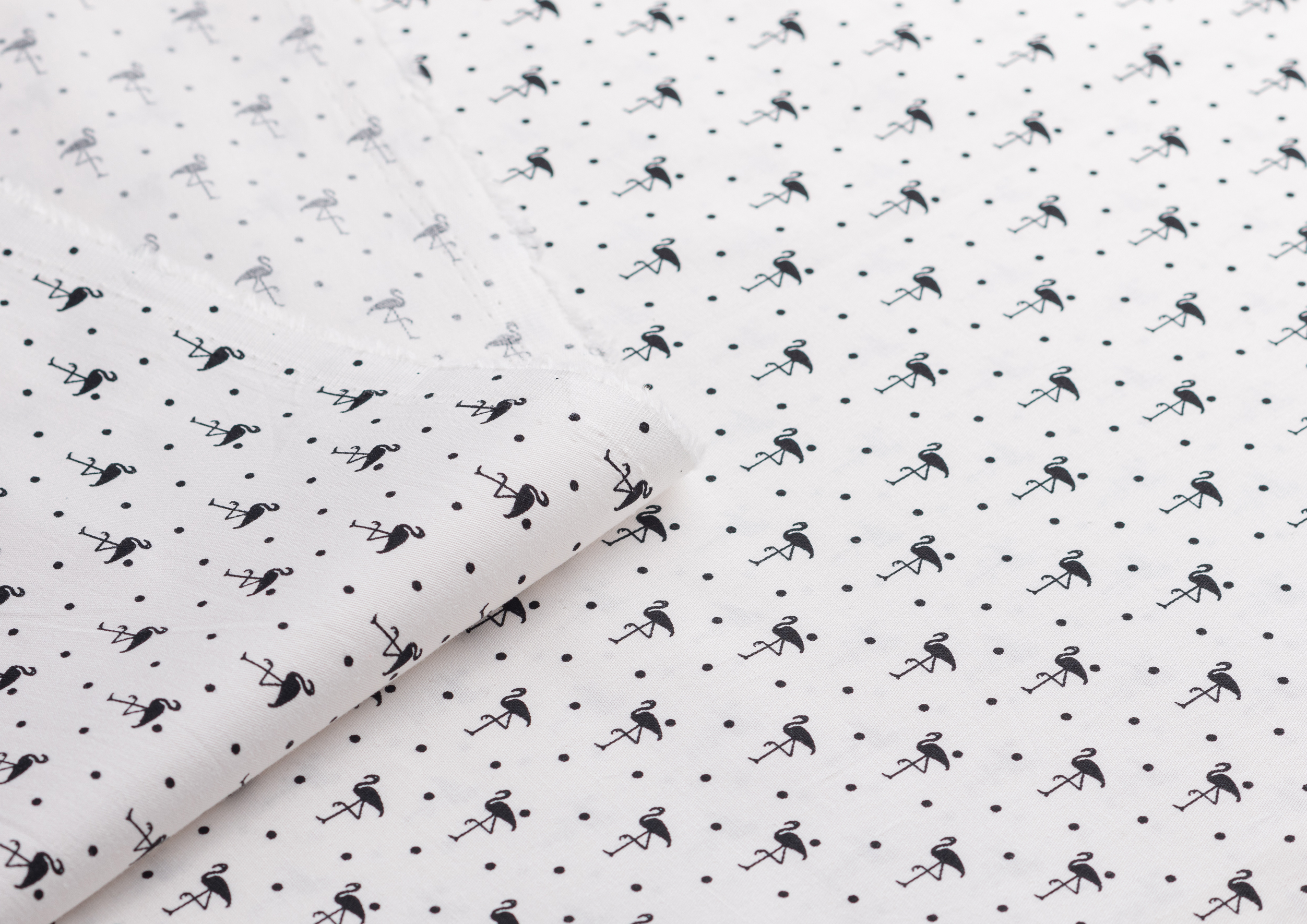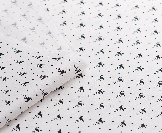 Ткань Коттон стрейч "Фламинго" цв.№ 1 на белом