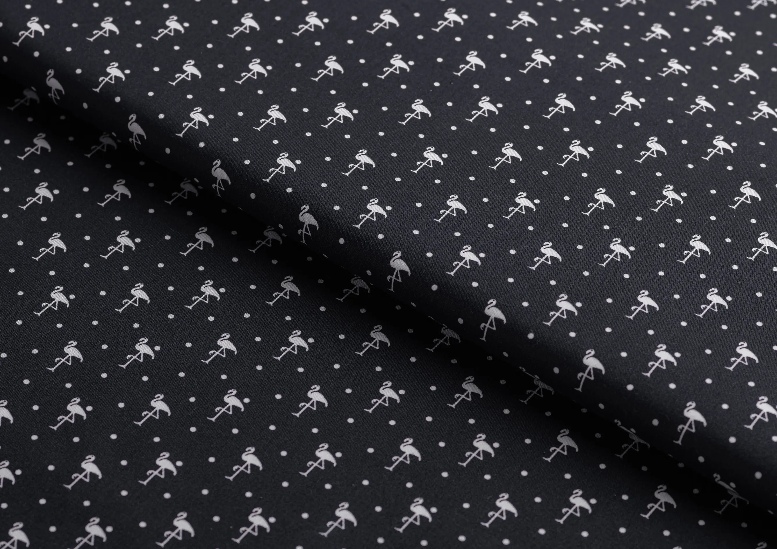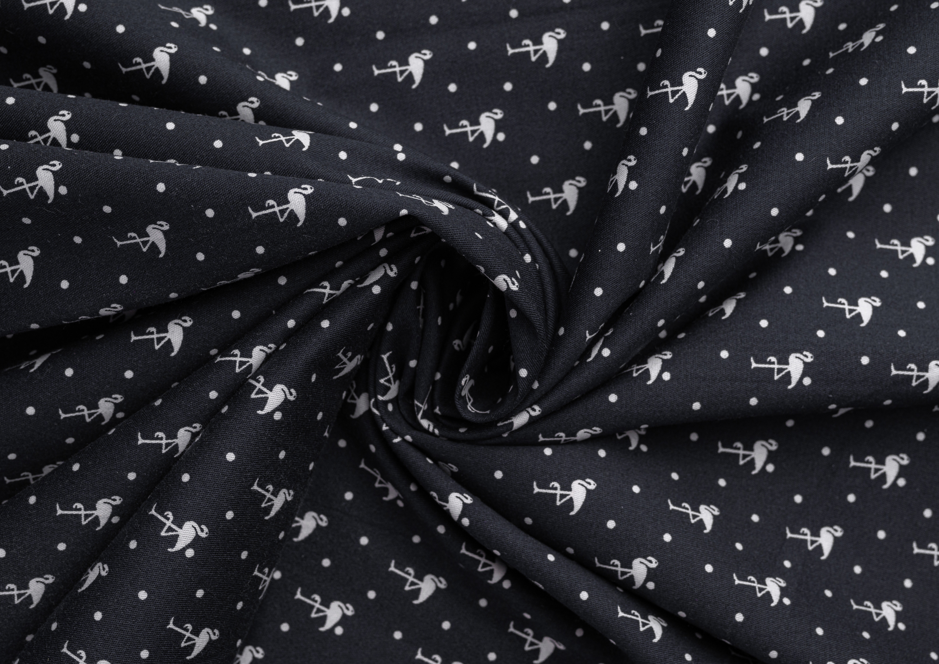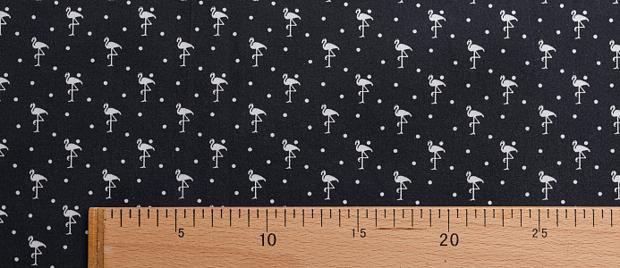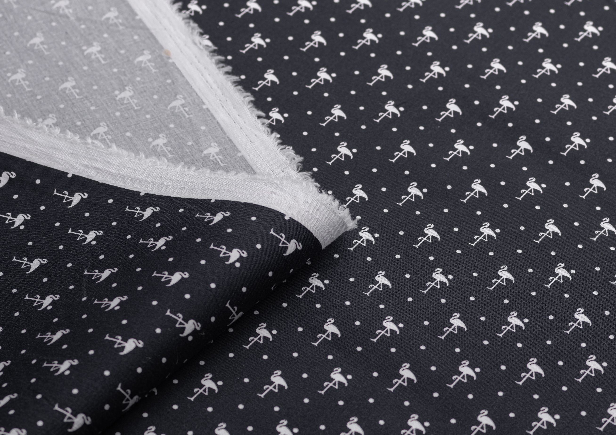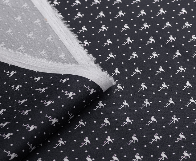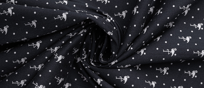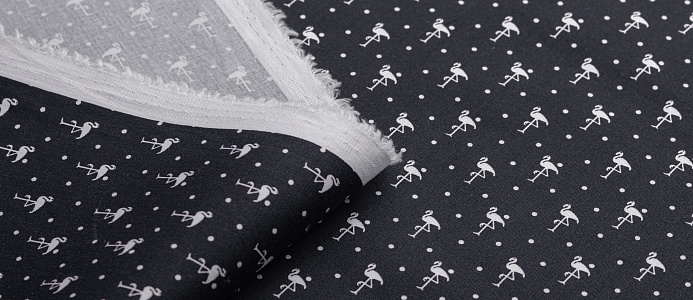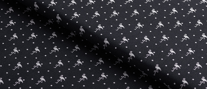 Ткань Коттон стрейч "Фламинго" цв.№ 2 на чёрном