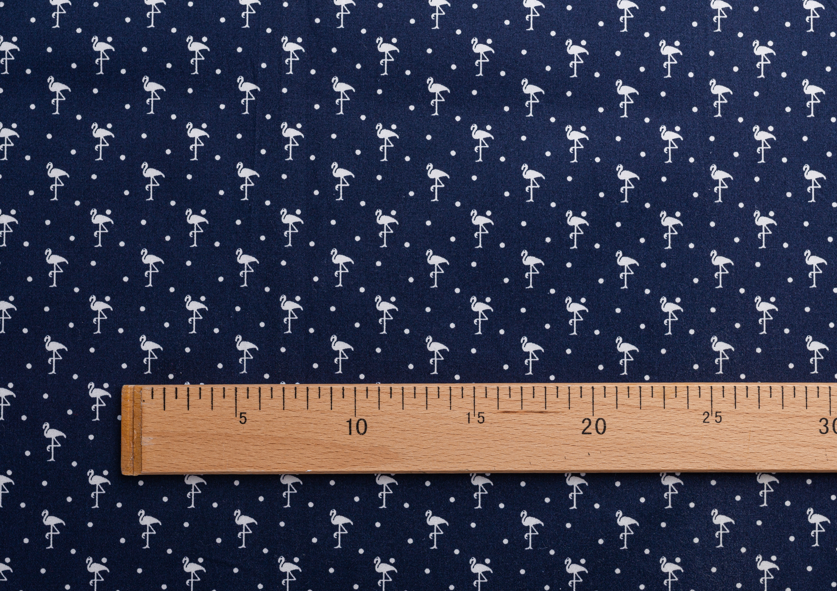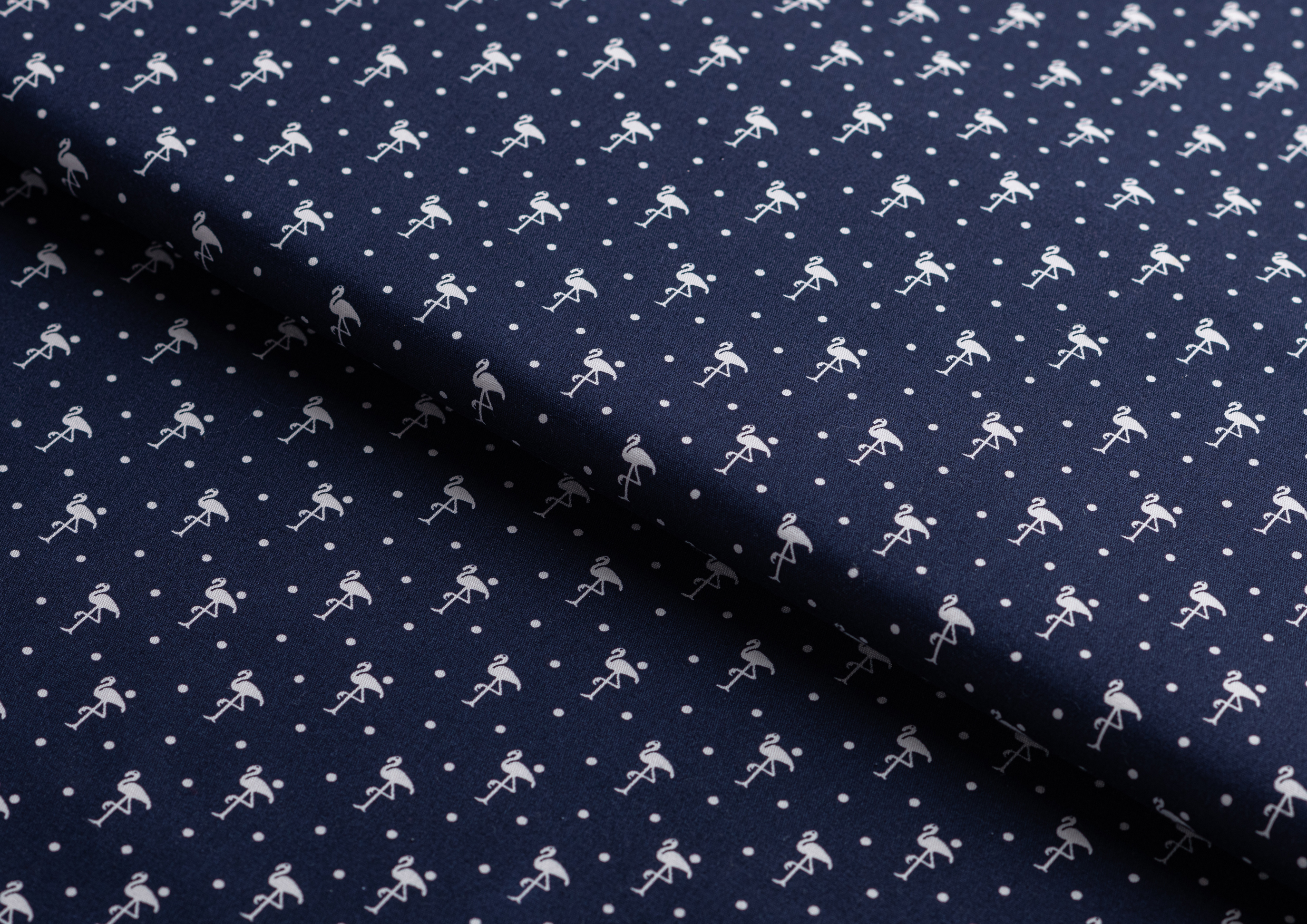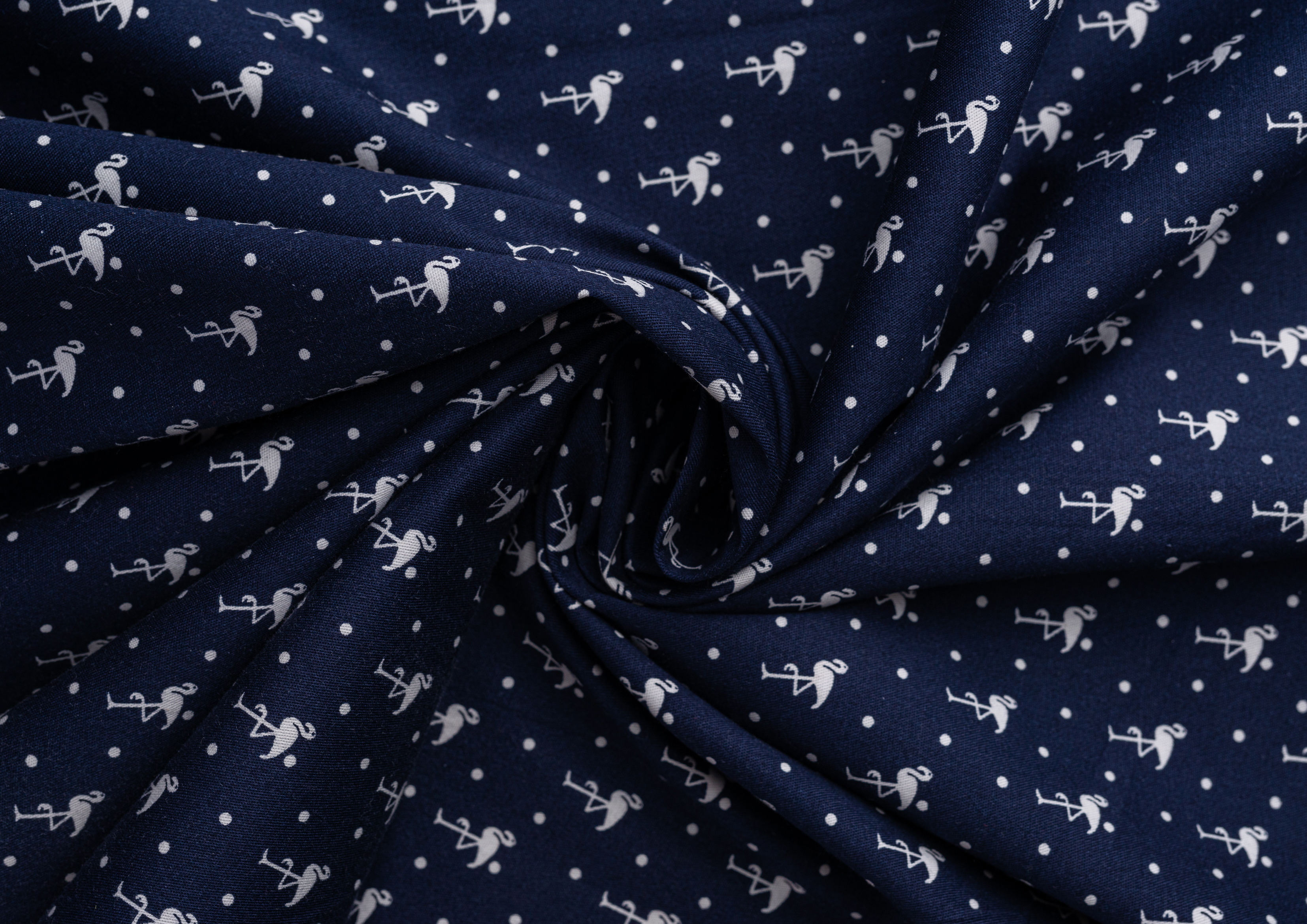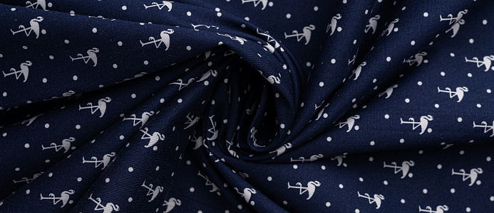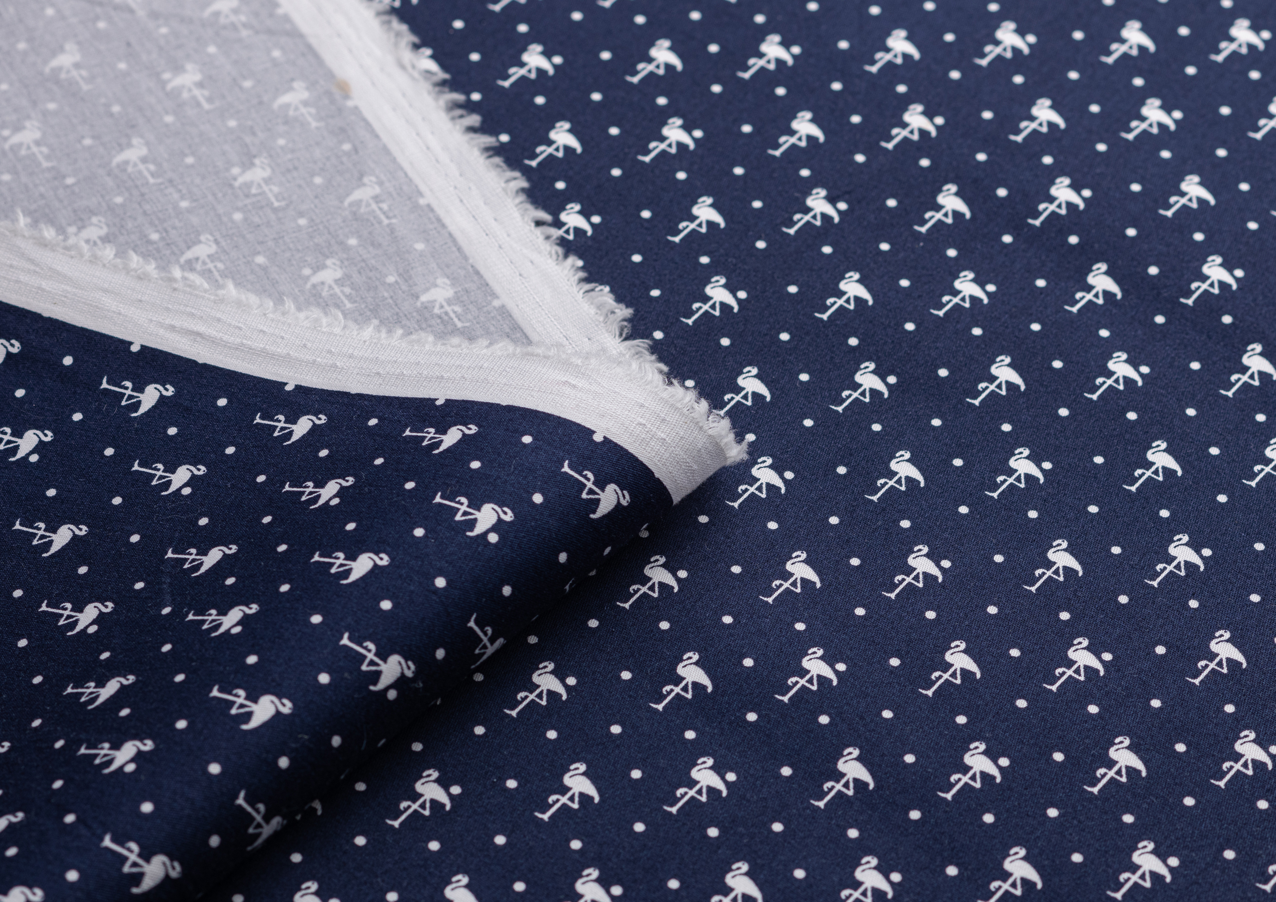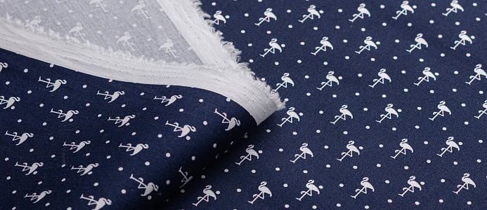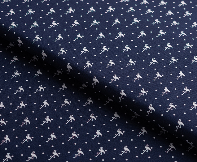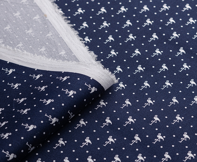 Ткань Коттон стрейч "Фламинго" цв.№ 3 на синем