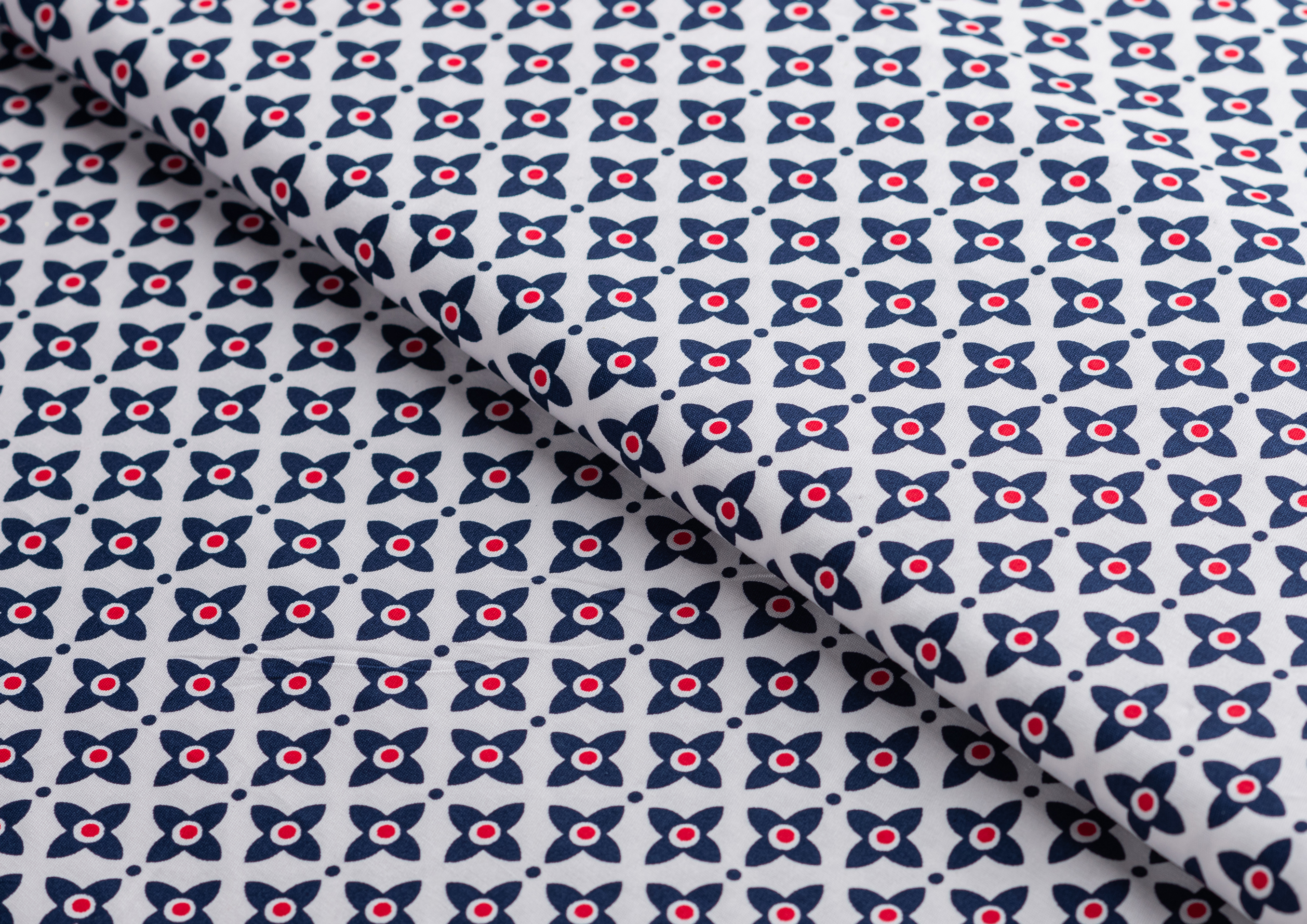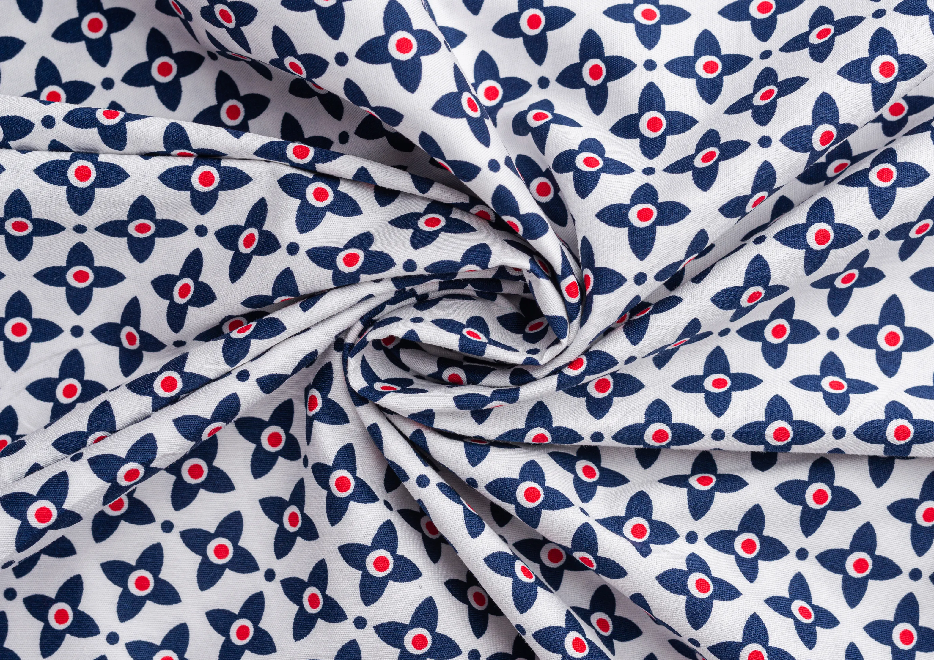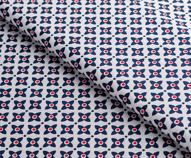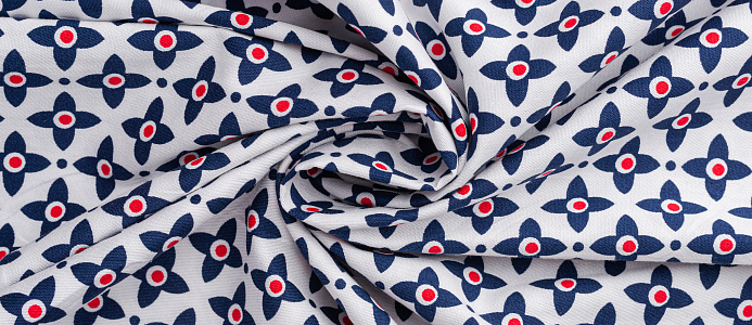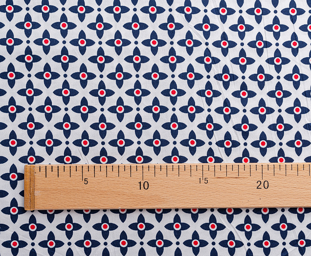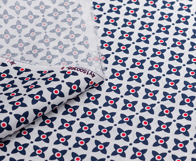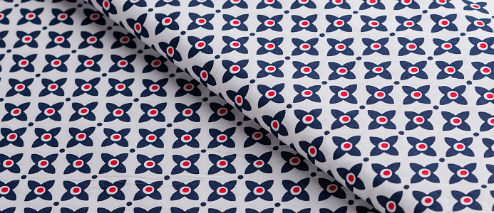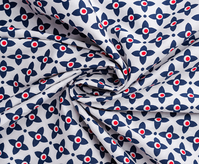 Хлопковая, средней плотности ткань с эластаном. По всей поверхности полотна расположен принт. Ткань тонкая, при этом прочная, хорошо держит форму. Отлично подходит для пошива платьев, сарафанов, мужских и женских рубашек .
