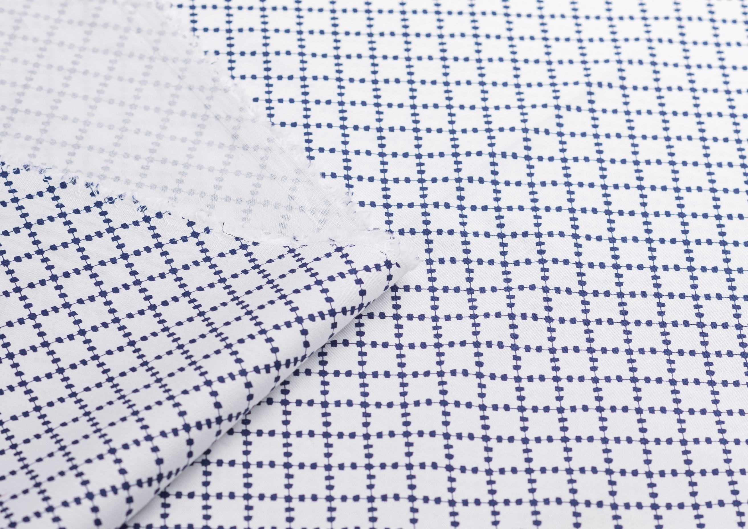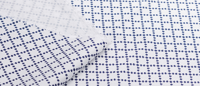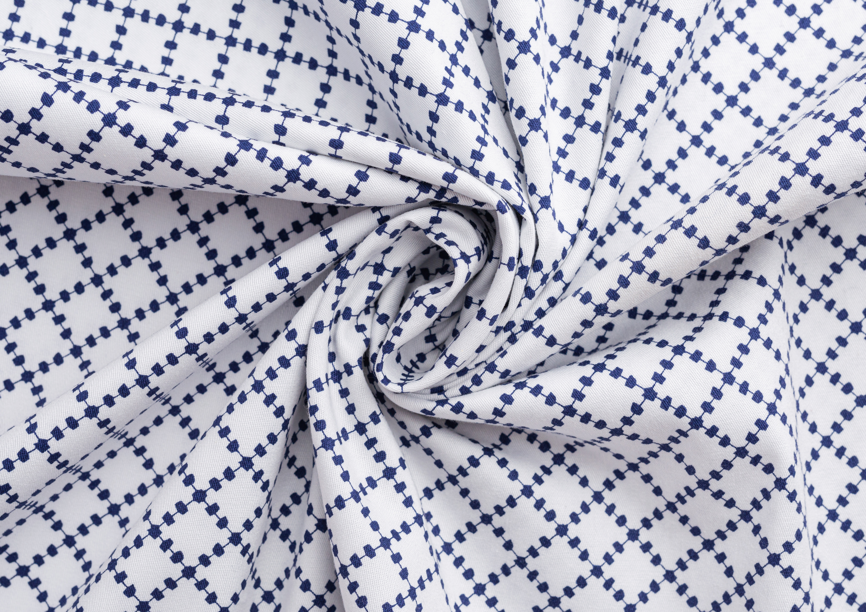 Ткань Коттон стрейч "Ромб" цв.№ 2 белое\синее