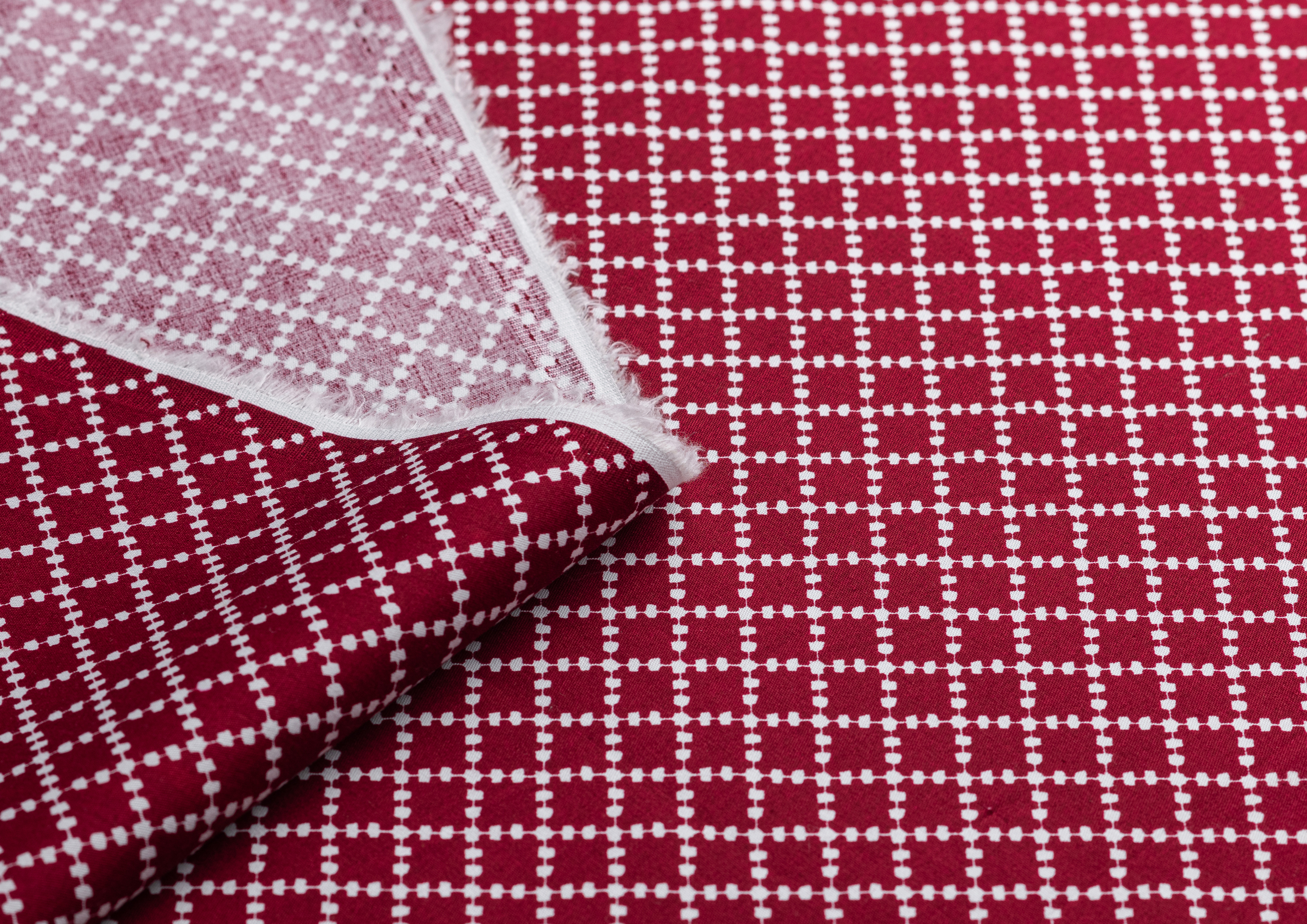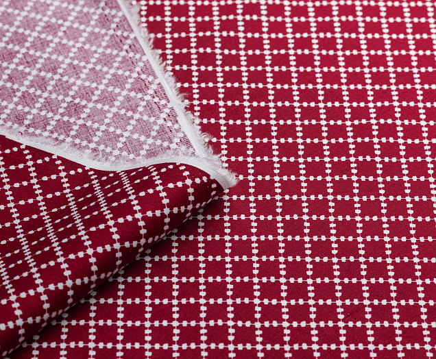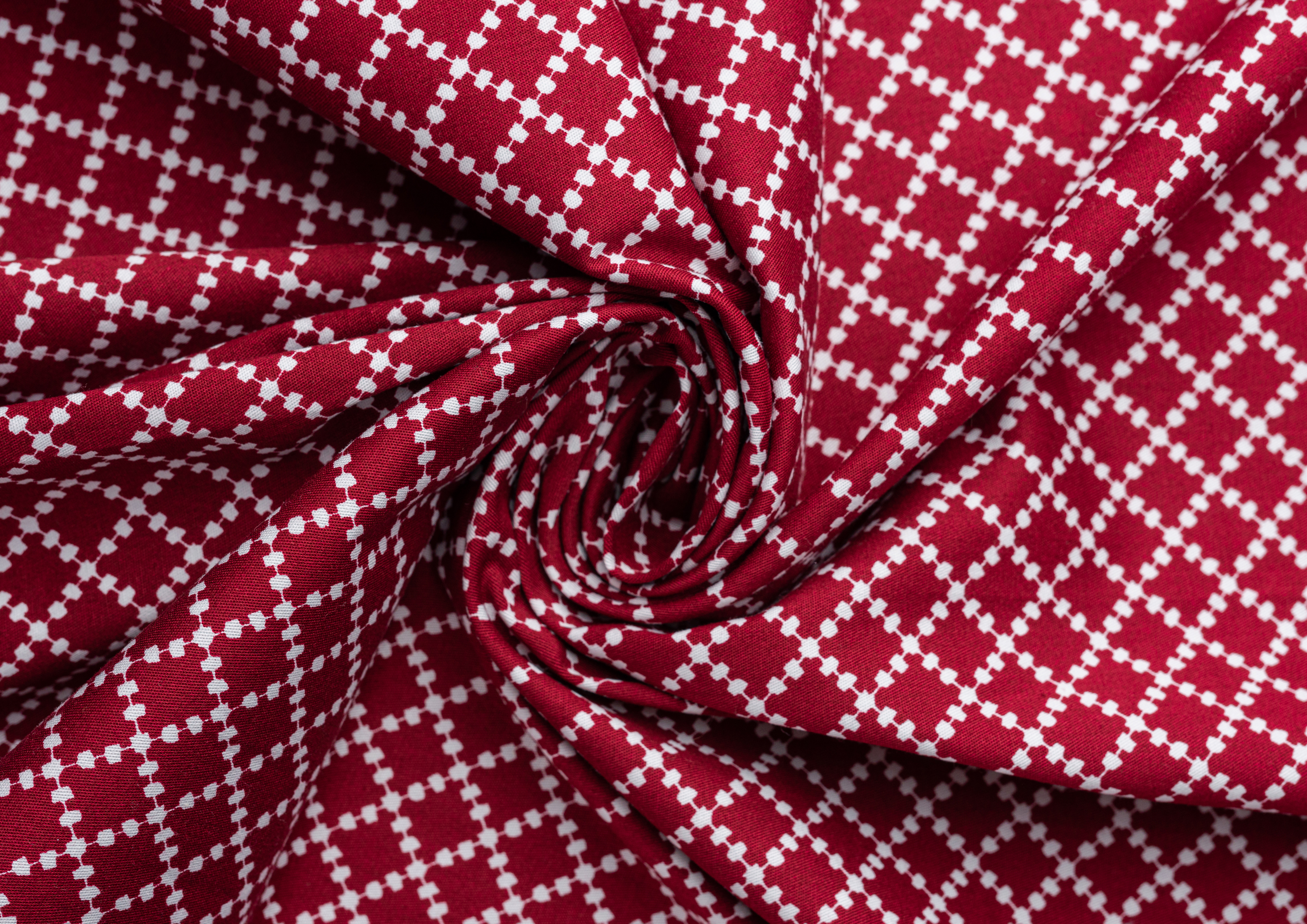 Ткань Коттон стрейч "Ромб" цв.№ 5 бордо\белое