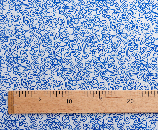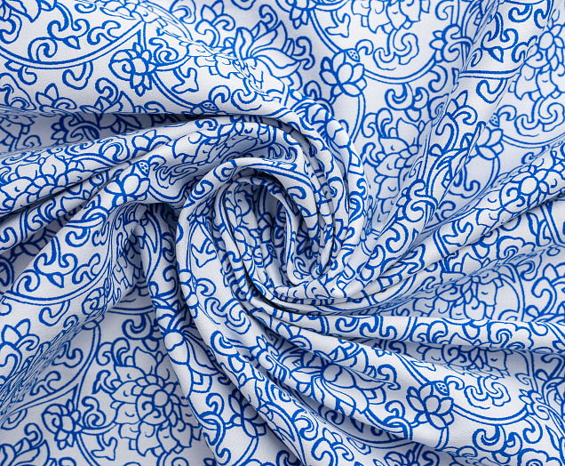 Хлопковая, средней плотности ткань с эластаном. По всей поверхности полотна расположен принт. Ткань тонкая, при этом прочная, хорошо держит форму. Отлично подходит для пошива платьев, сарафанов, мужских и женских рубашек .