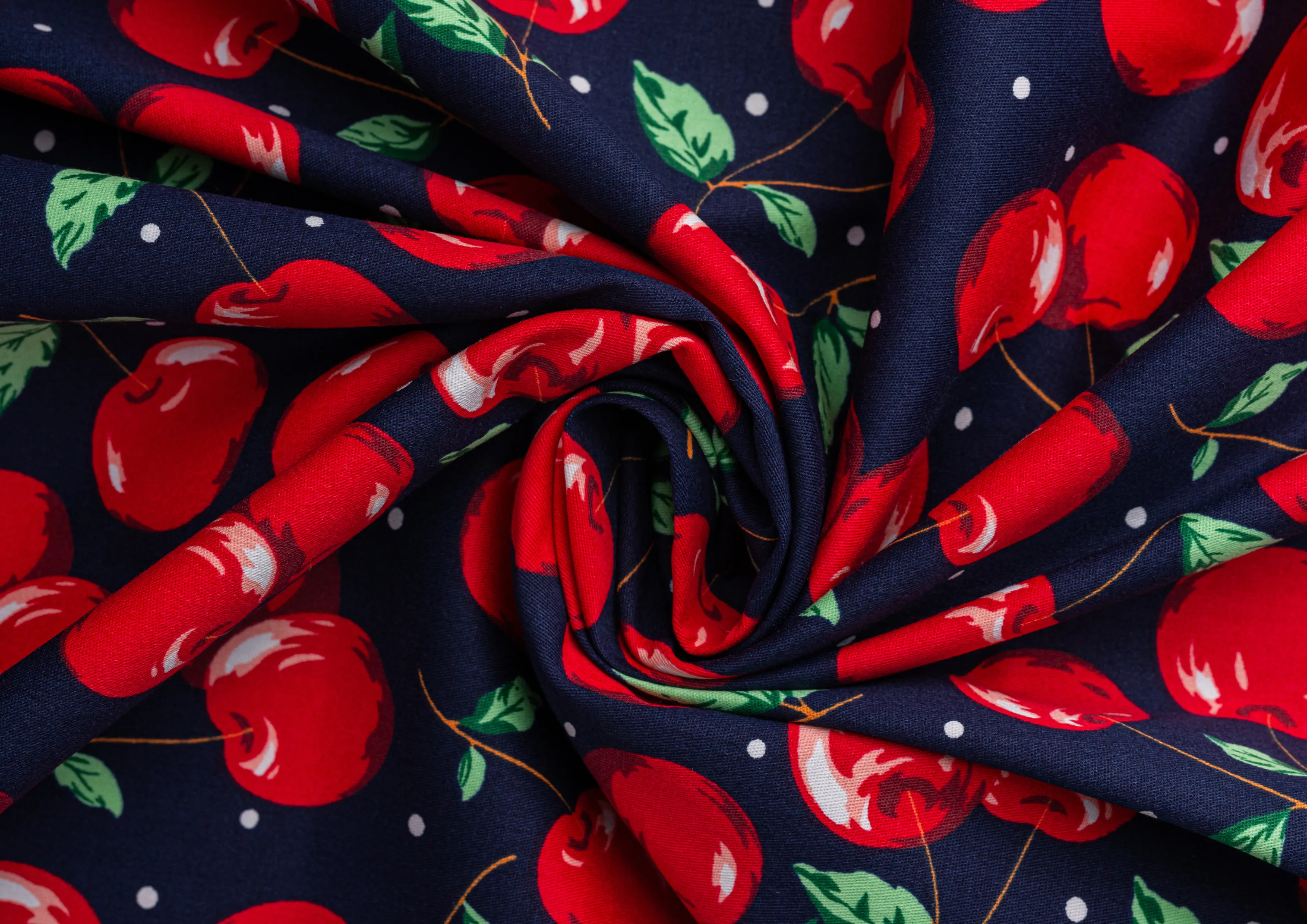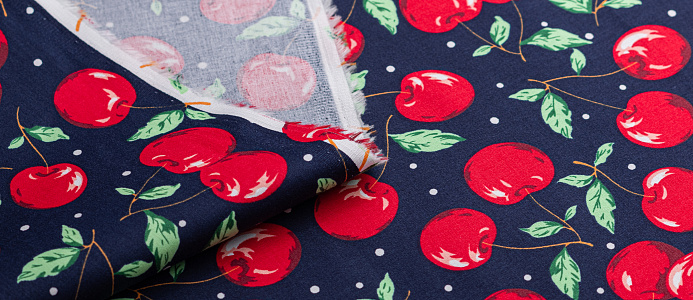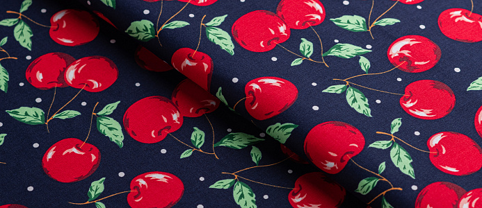 Хлопковая, средней плотности ткань с эластаном. По всей поверхности полотна расположен принт. Ткань тонкая, при этом прочная, хорошо держит форму. Отлично подходит для пошива платьев, сарафанов, мужских и женских рубашек .