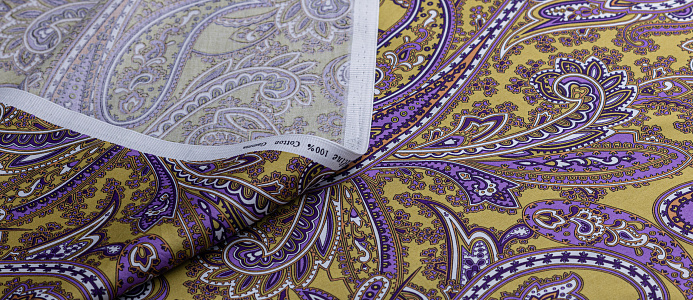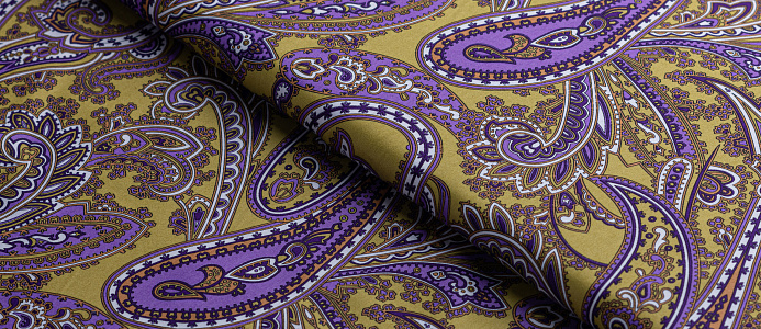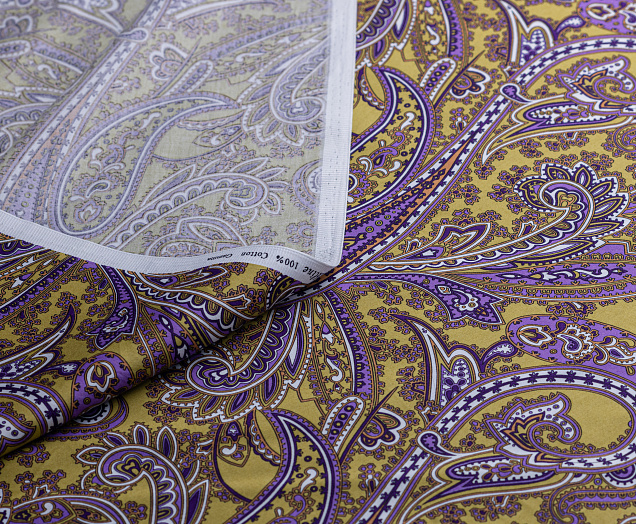 Ткань Сатин принт "Огурцы" Индия № 2 фиолетов.