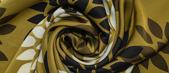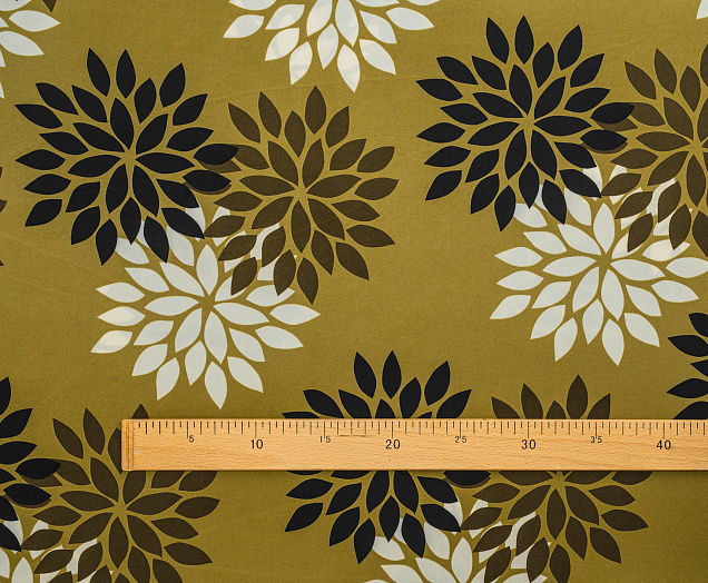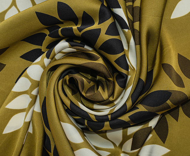 Ткань Шелк Армани принт Цветы на хаки