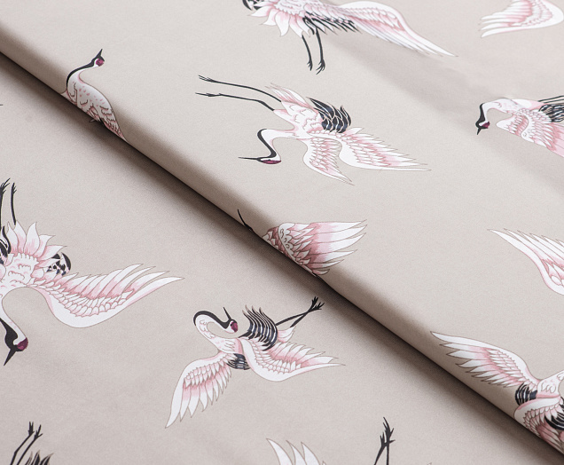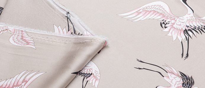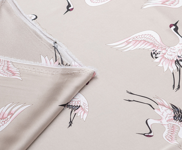 Ткань шелк Бавария принт № 33 Журавли на капучино