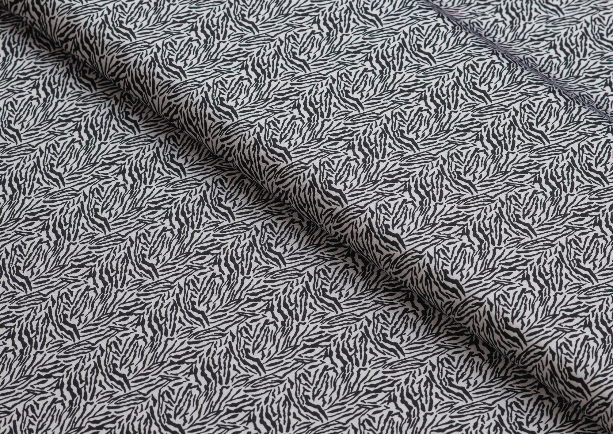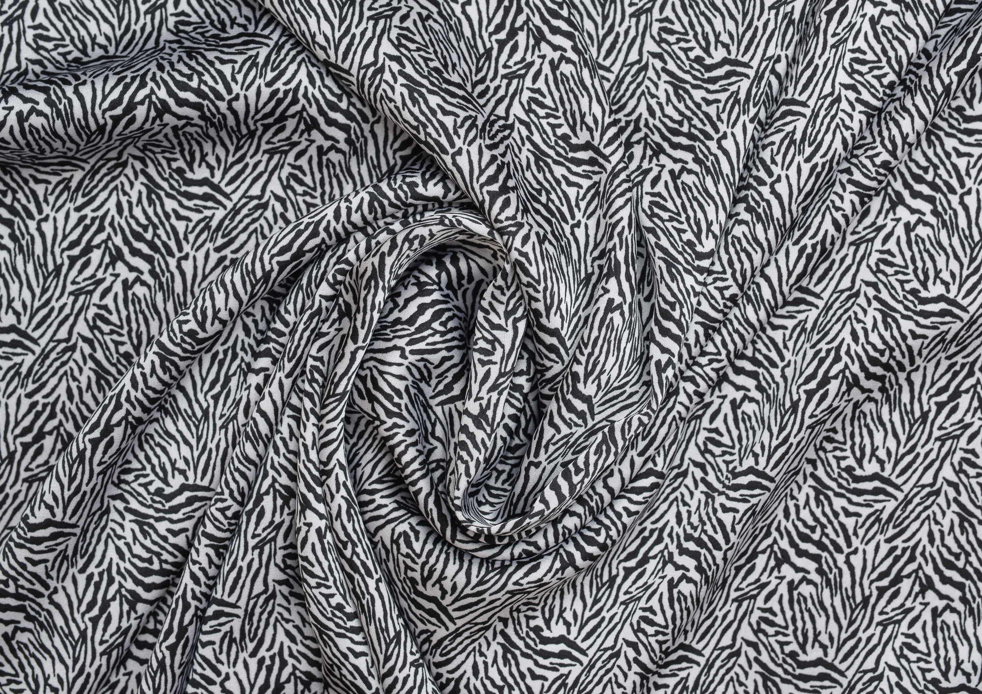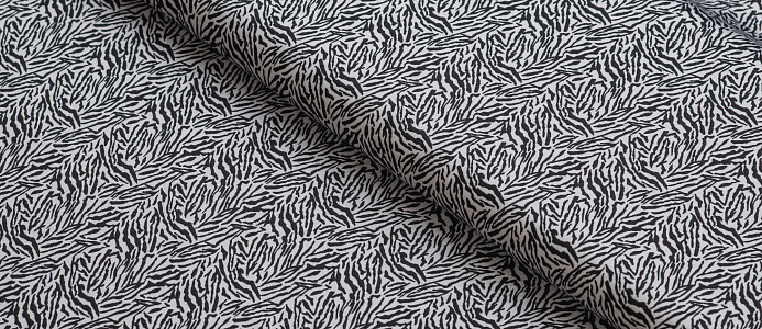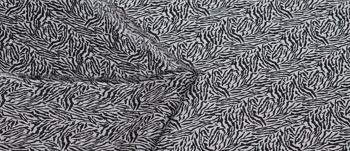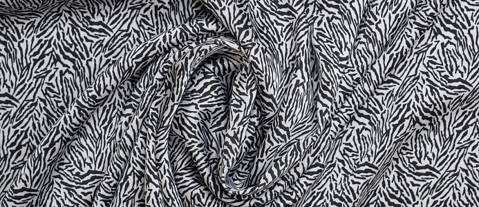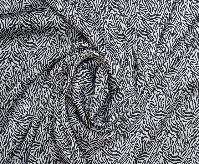 Ткань шелк Бавария принт № 42 Черные штрихи на белом фоне