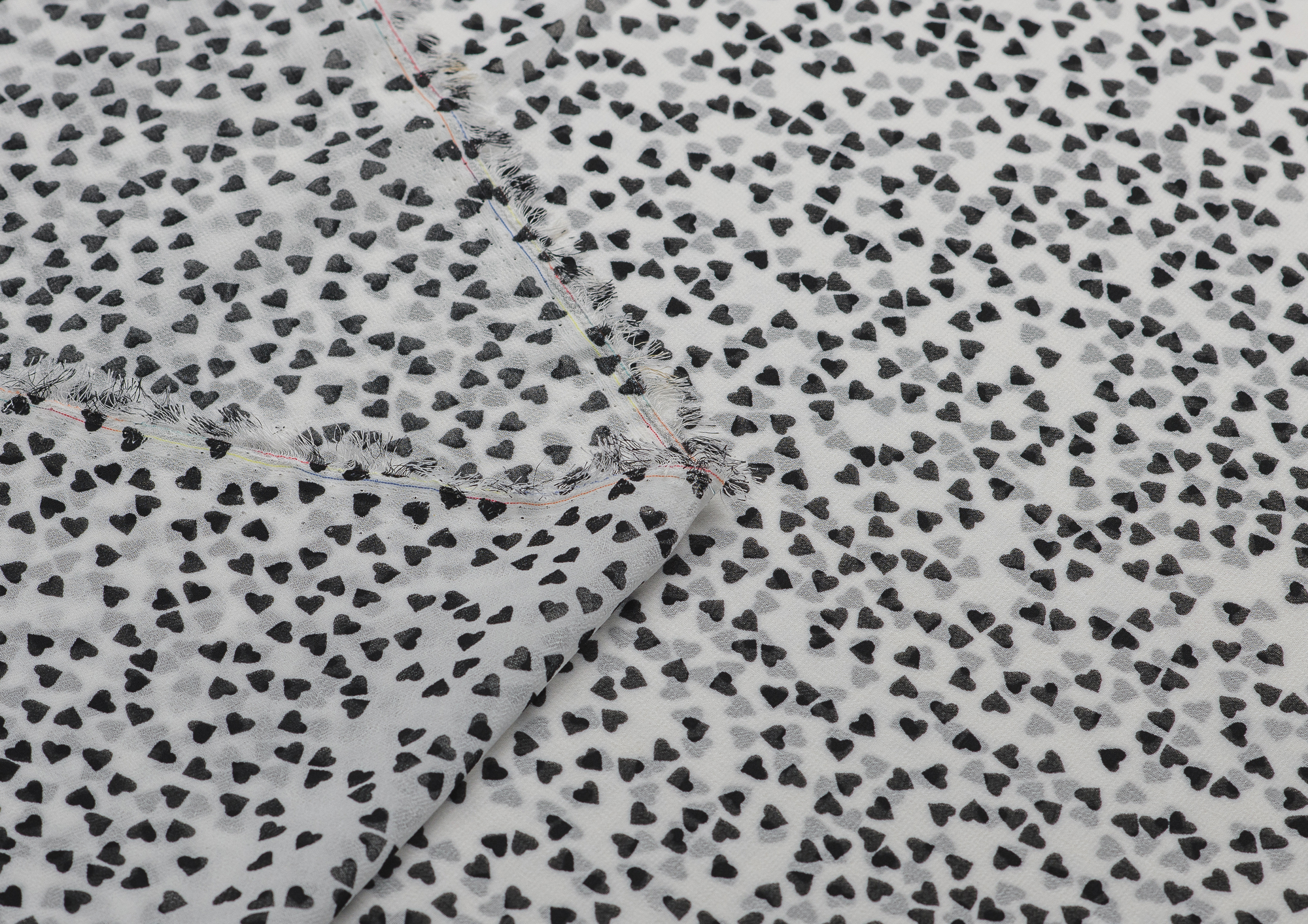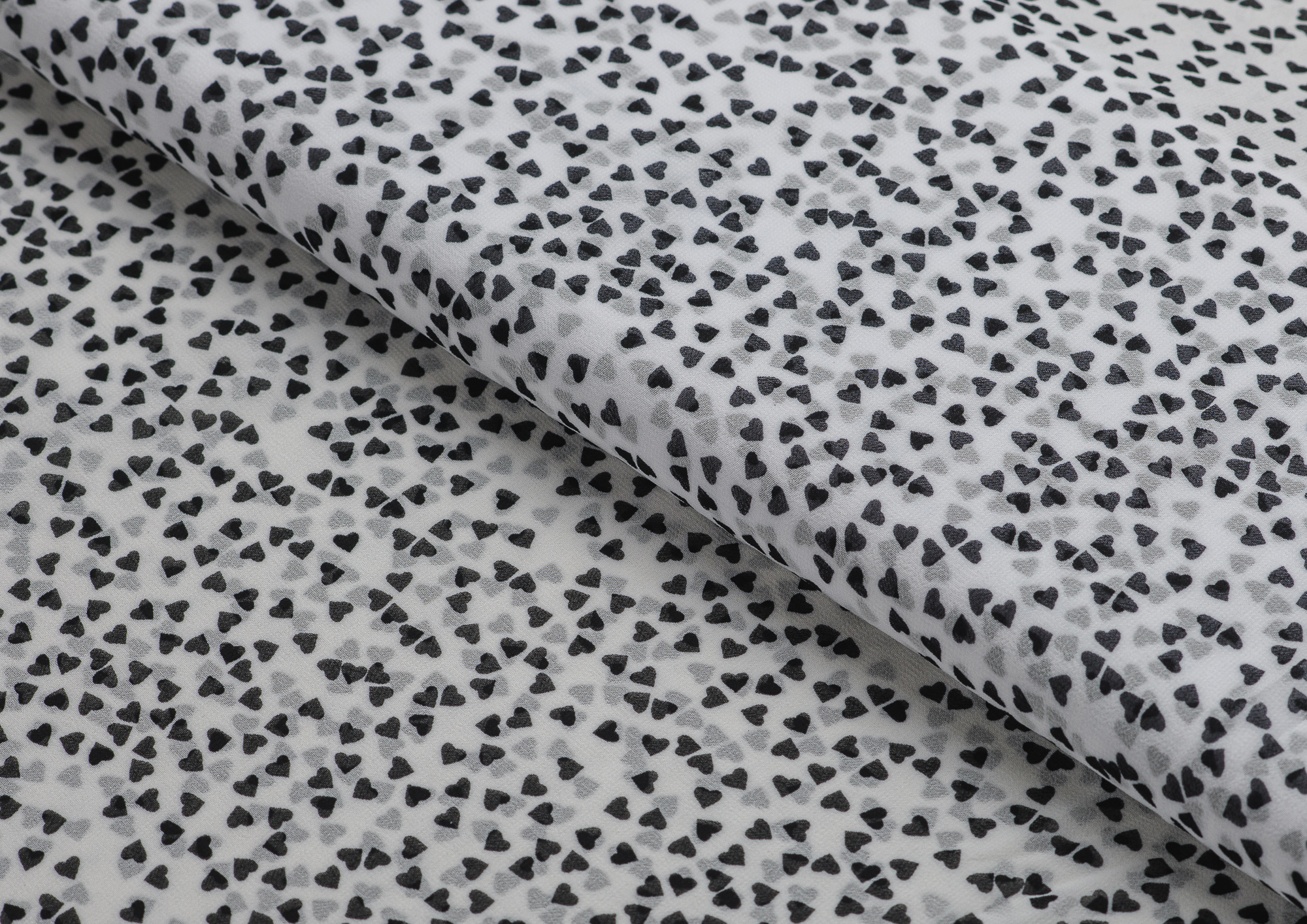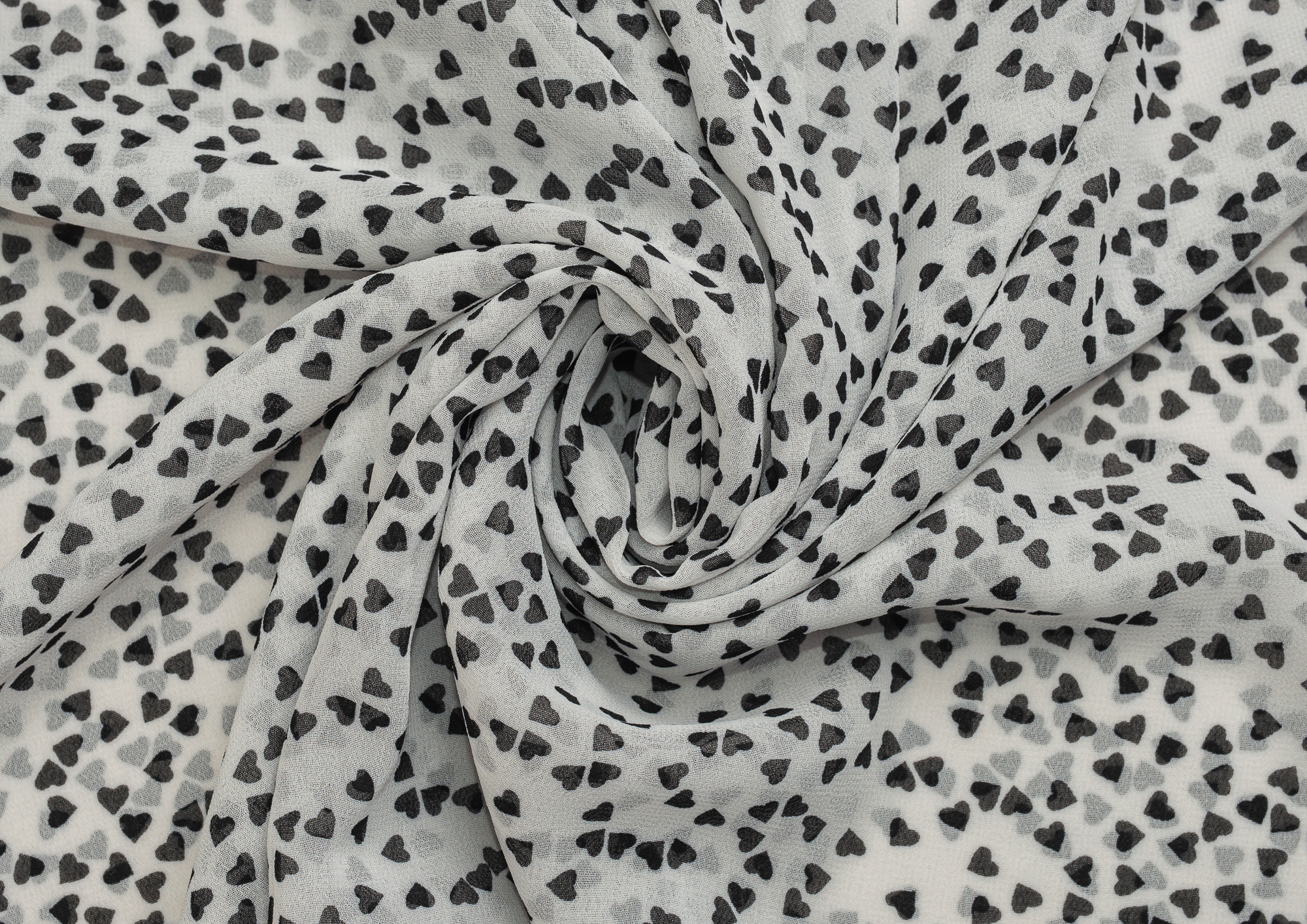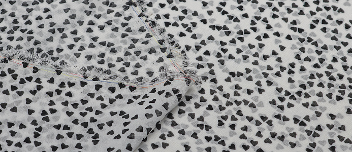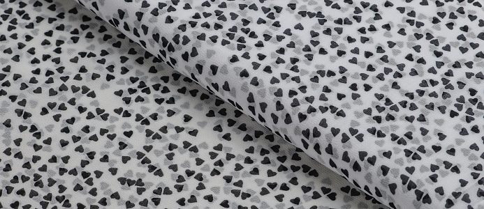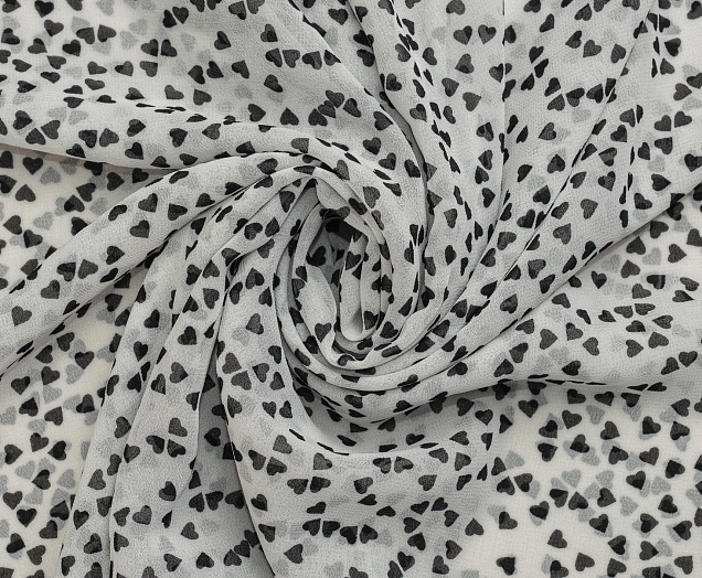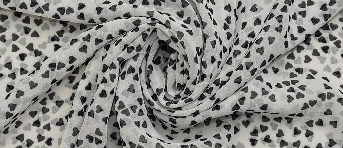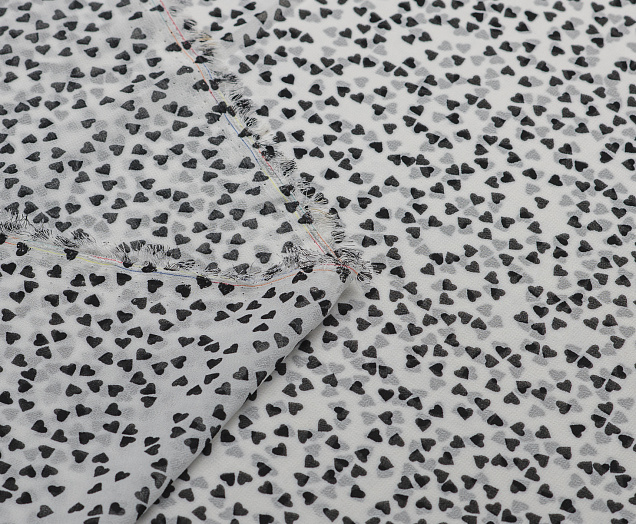 Ткань Шифон принт Черные сердечки