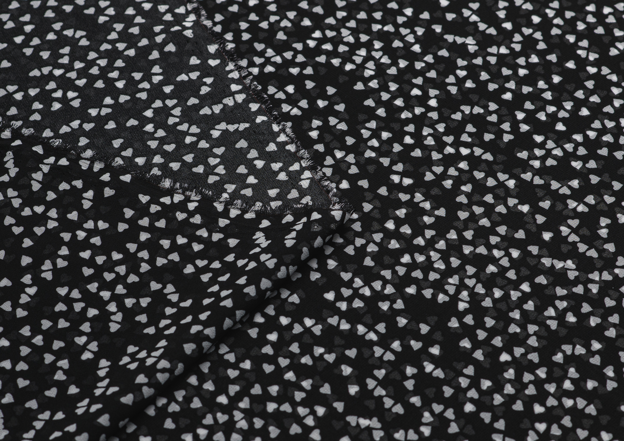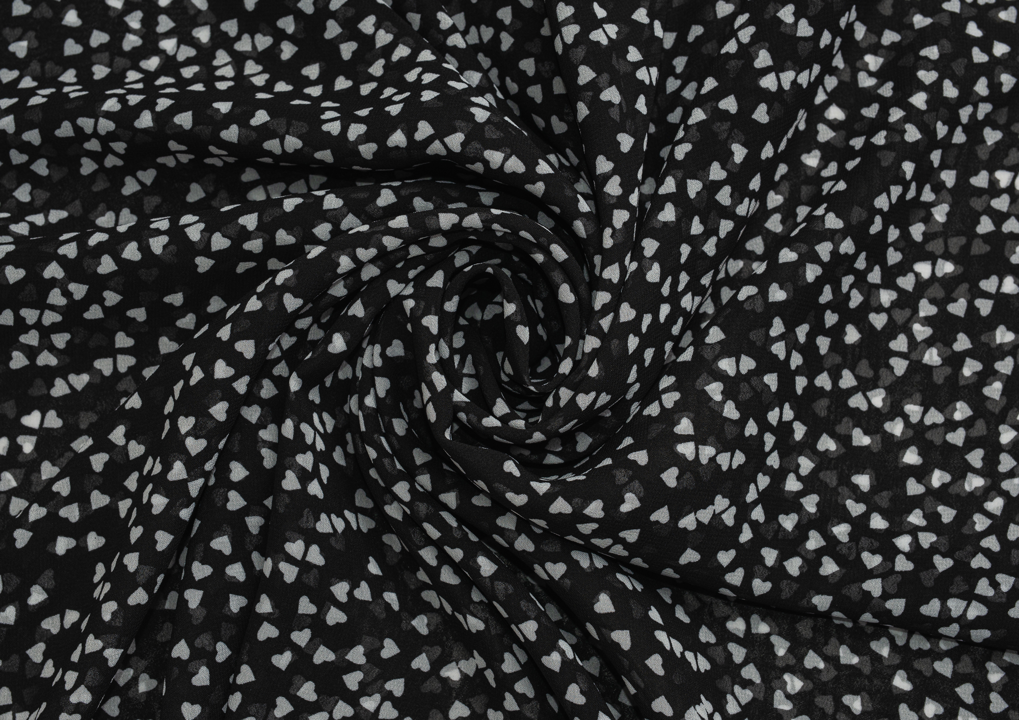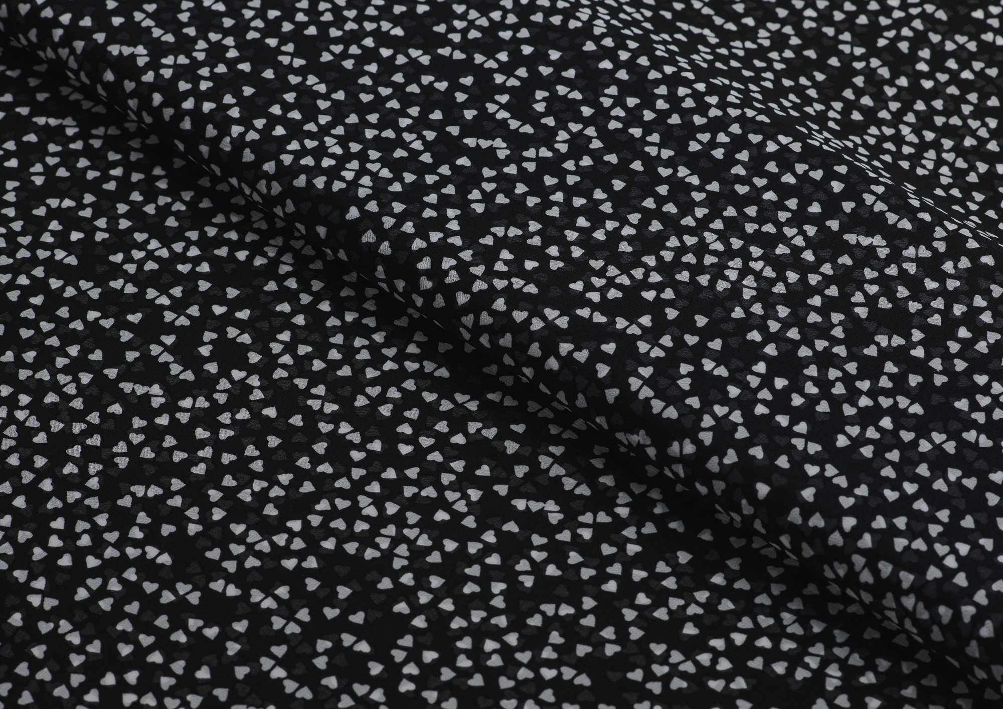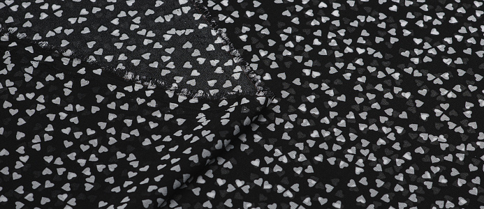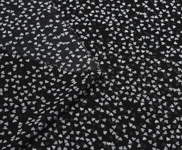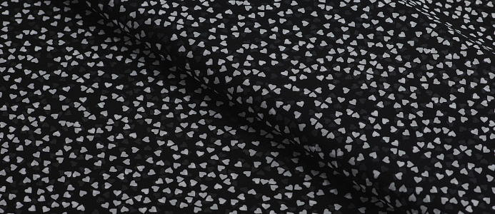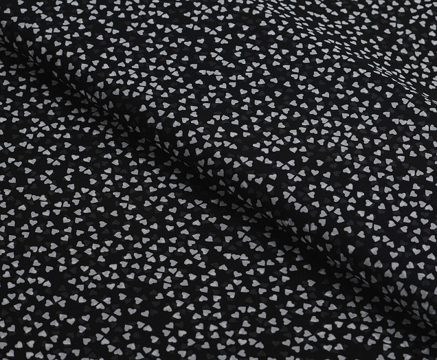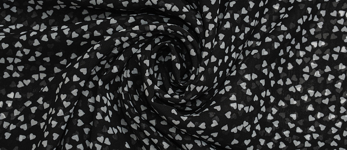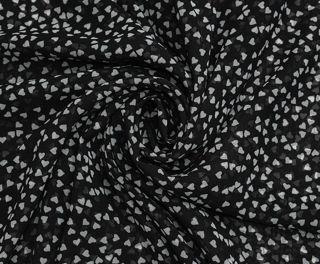 Ткань Шифон принт Сердечки на черном