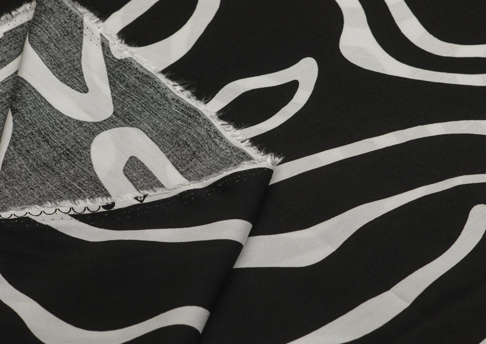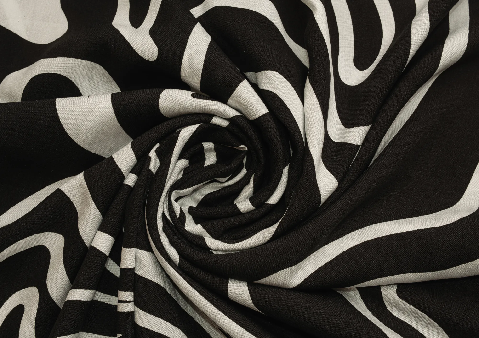 Легкая, мягкая, приятная на ощупь ткань. Поверхность шелковистая. По всей поверхности ткани расположен принт.  Ткань воздухопроницаемая, хорошо подходит для жаркой погоды. Отлично драпируется, образовывая мягкие складки. Подходит для пошива платьев, сарафанов, халатов, юбок.