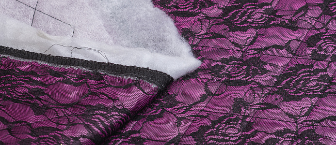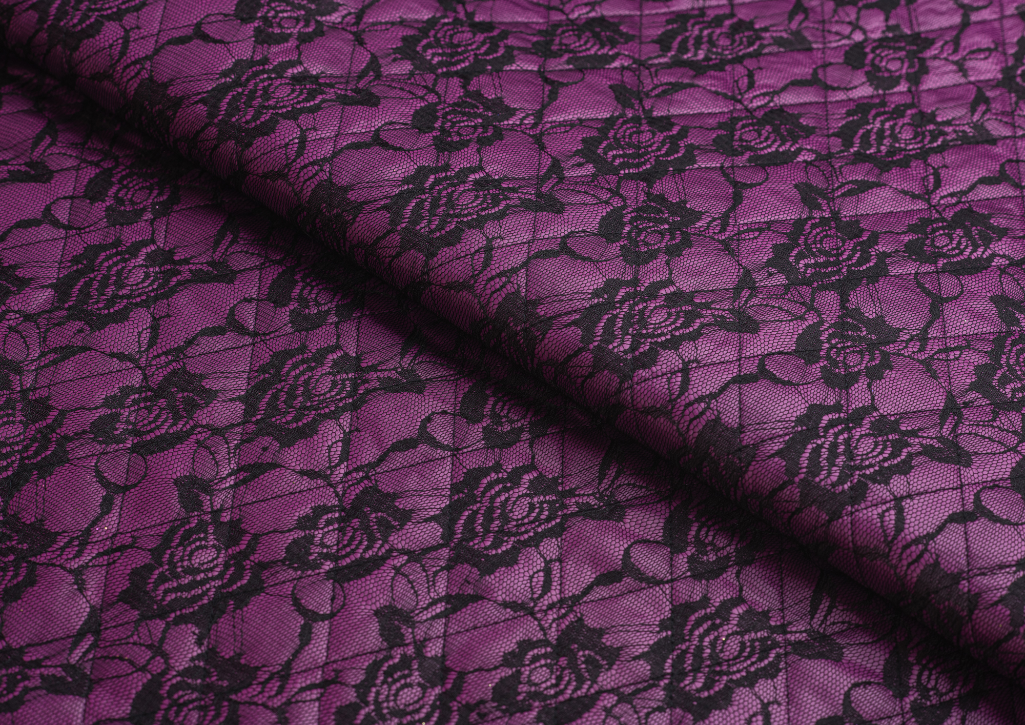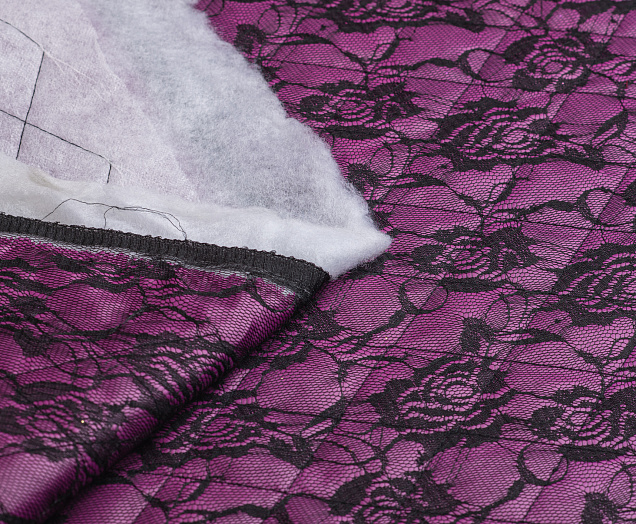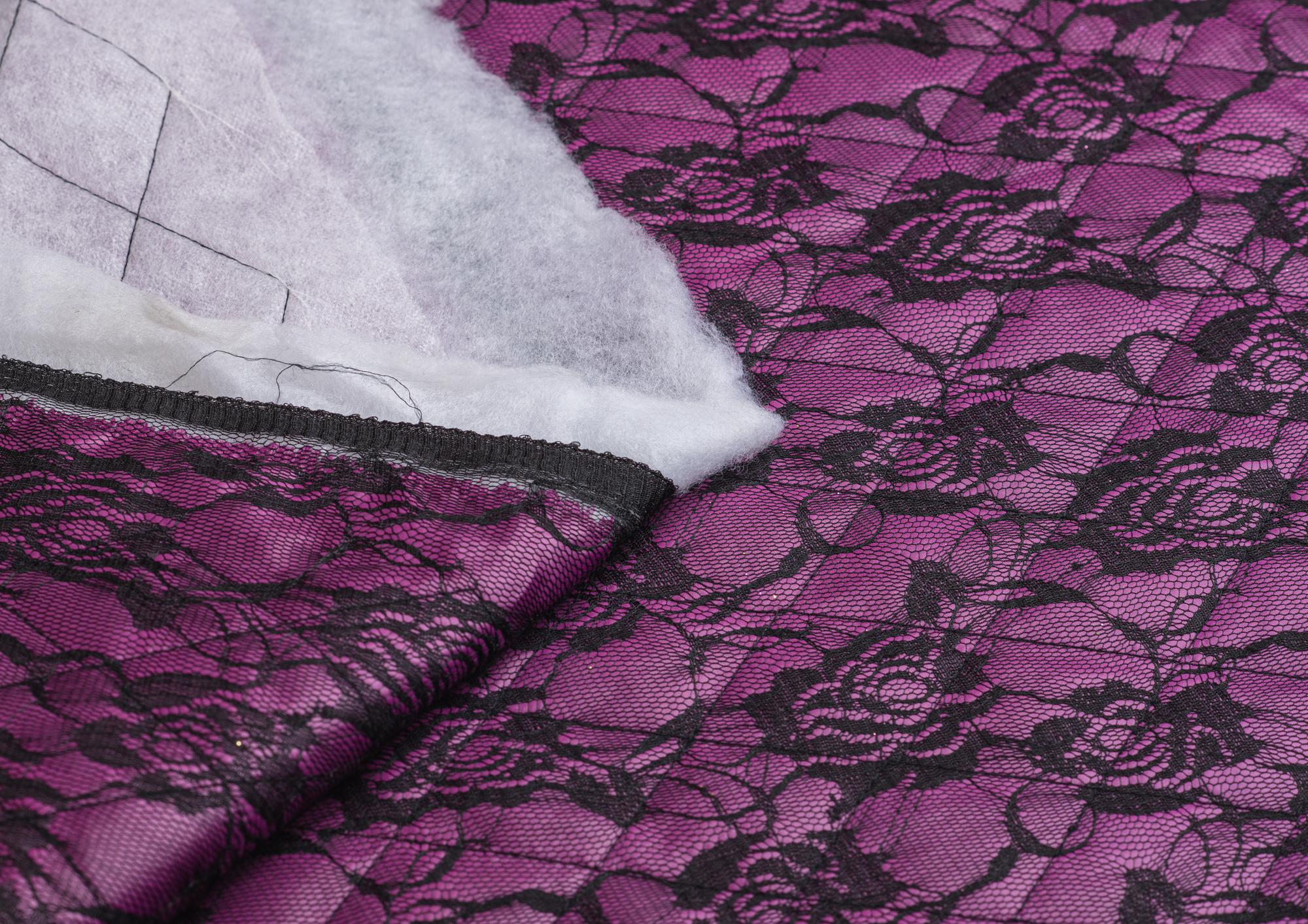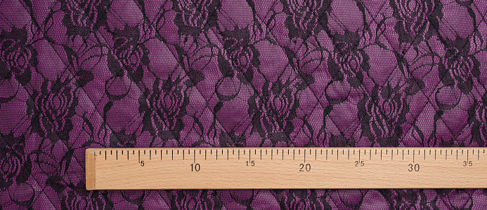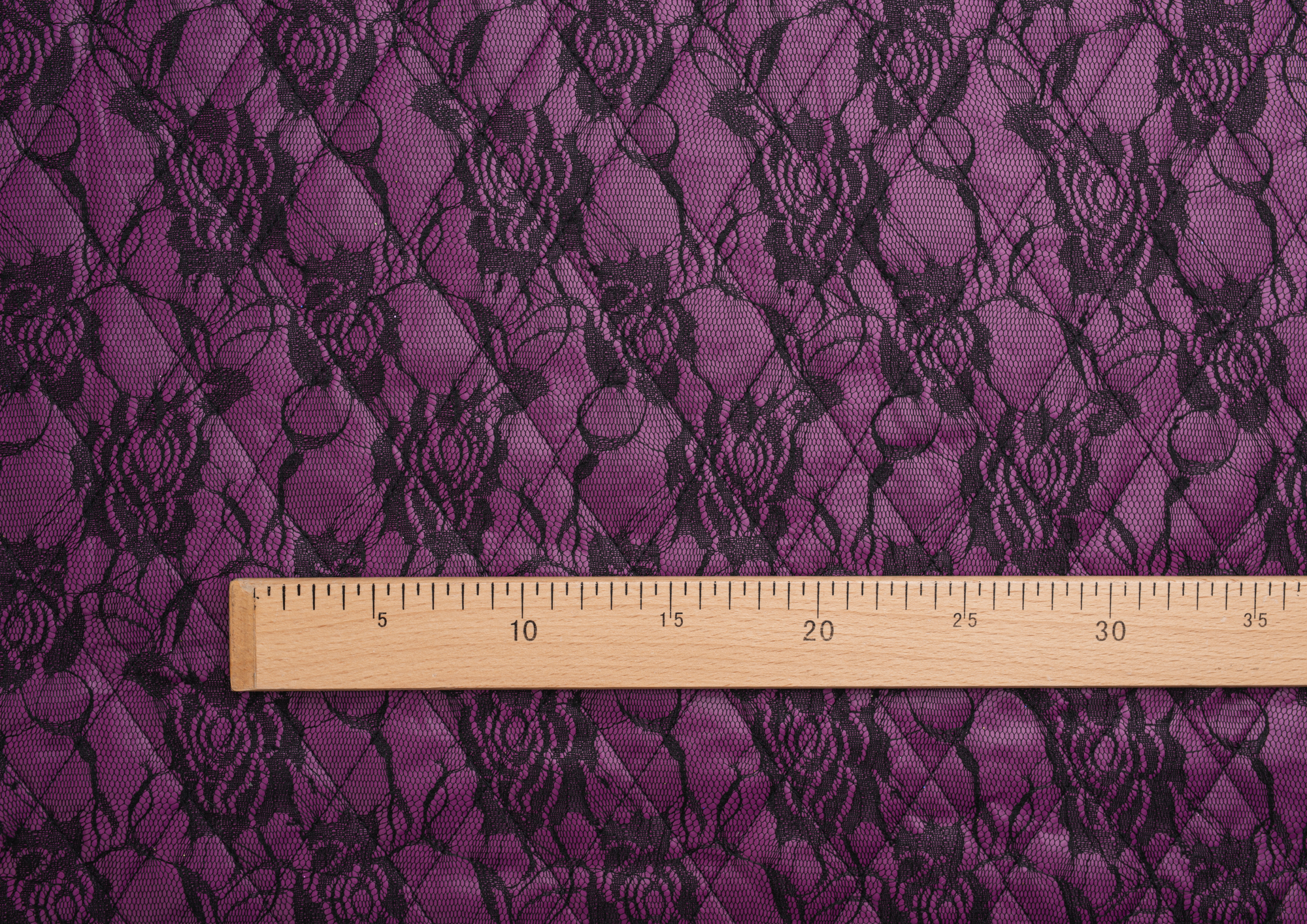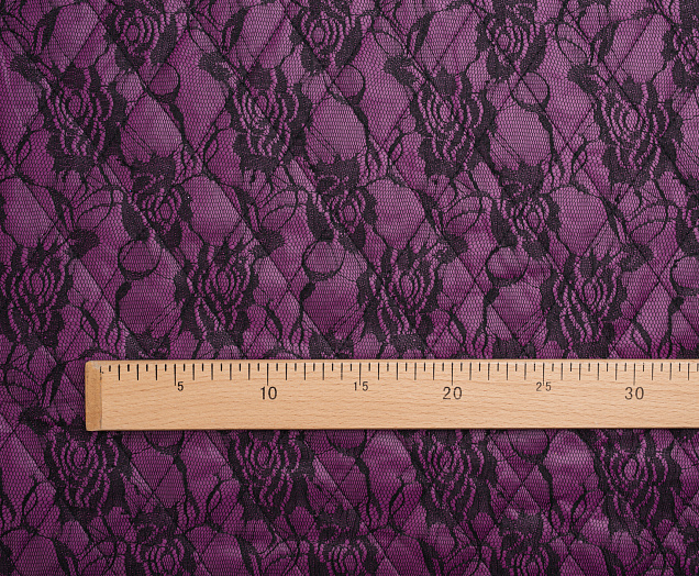 Курточная ткань, дублированная с лицевой стороны кружевом с изнаночной стороны синтепоном. Полотно объемное, стеганое по всей ширине. Стежка в виде ромба.  Подойдет для пошива верхней одежды - курток, жилетов, пуховиков. Синтепон 100 гр,