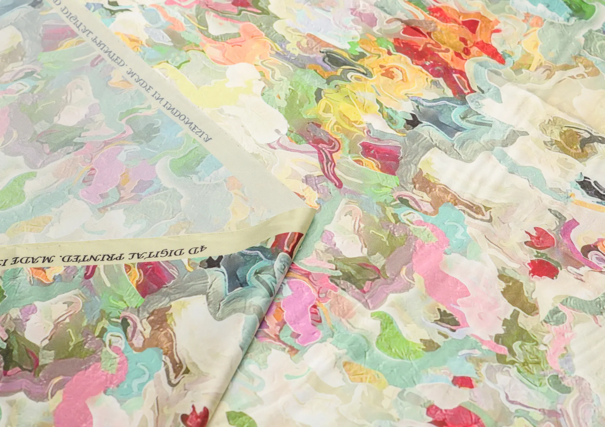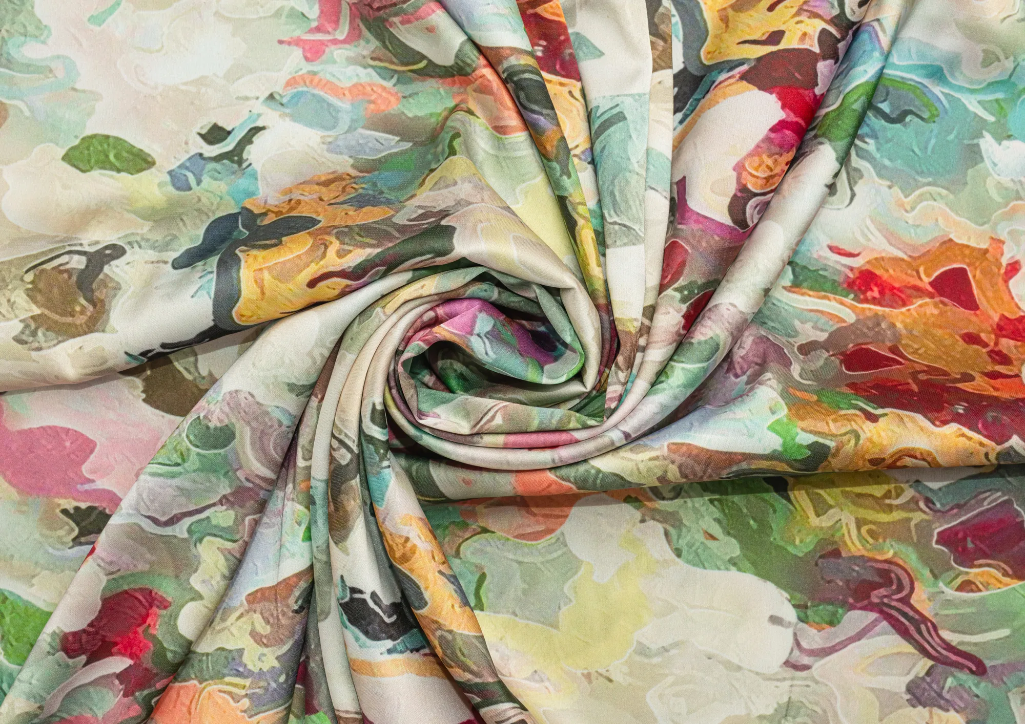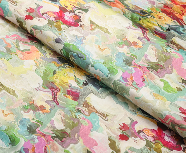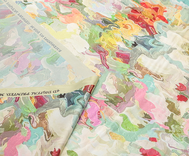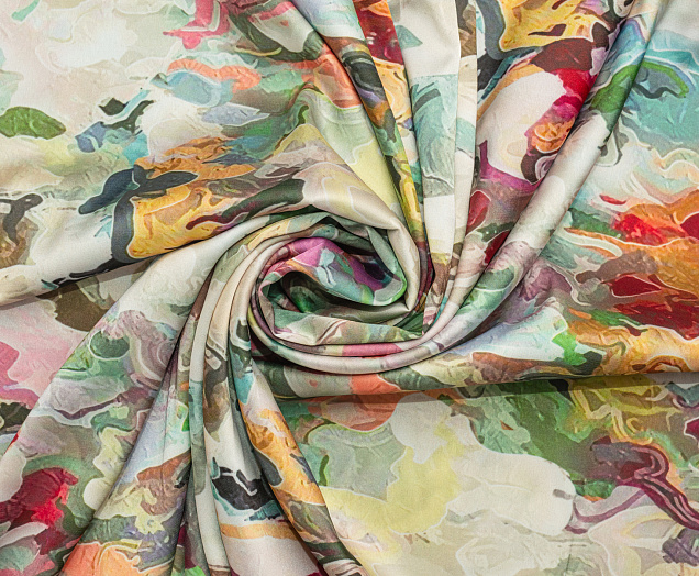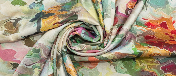 Ткань Зара сатин принт 1 абстракция цв. зеленый
