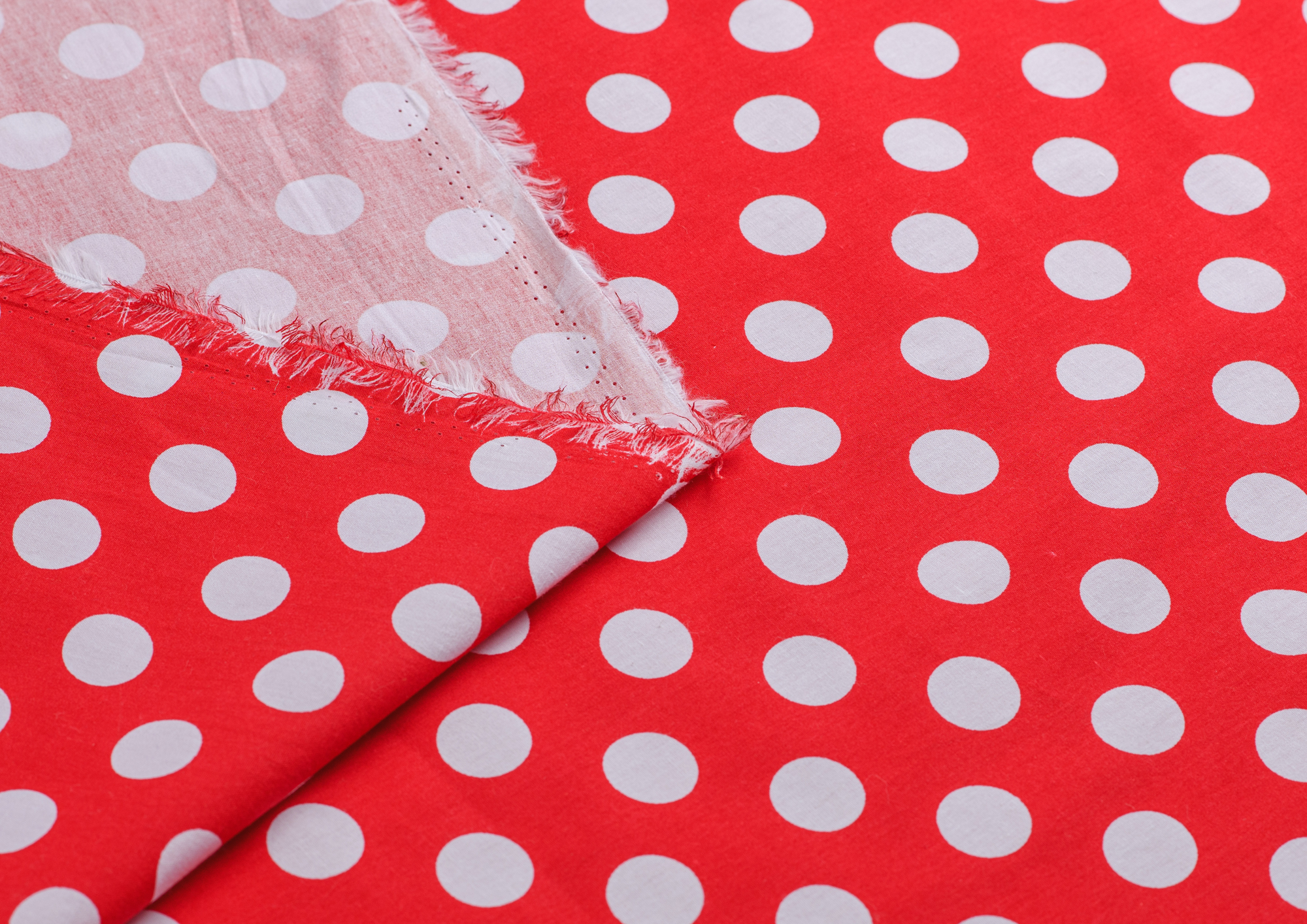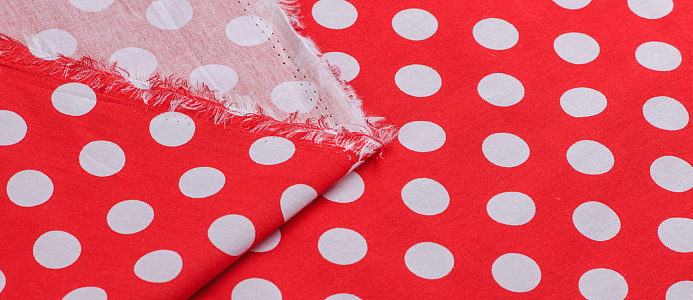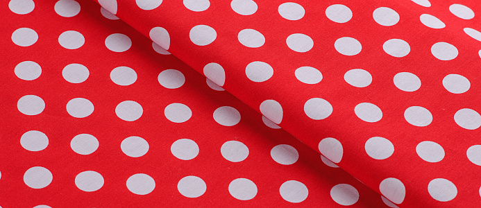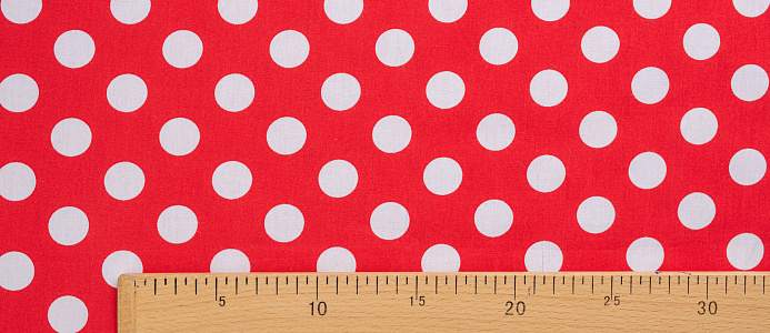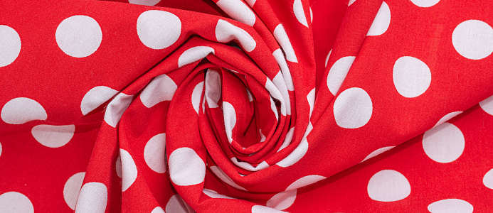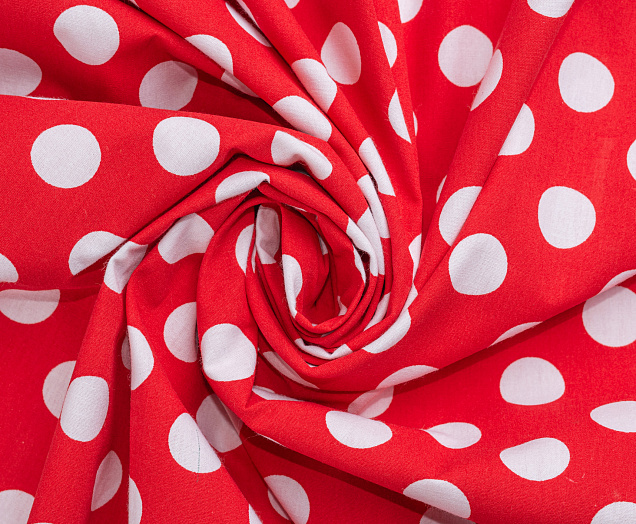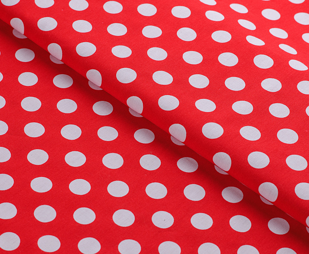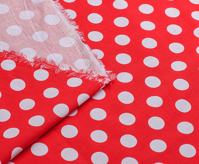 Ткань Поплин принт Горох белый на красном