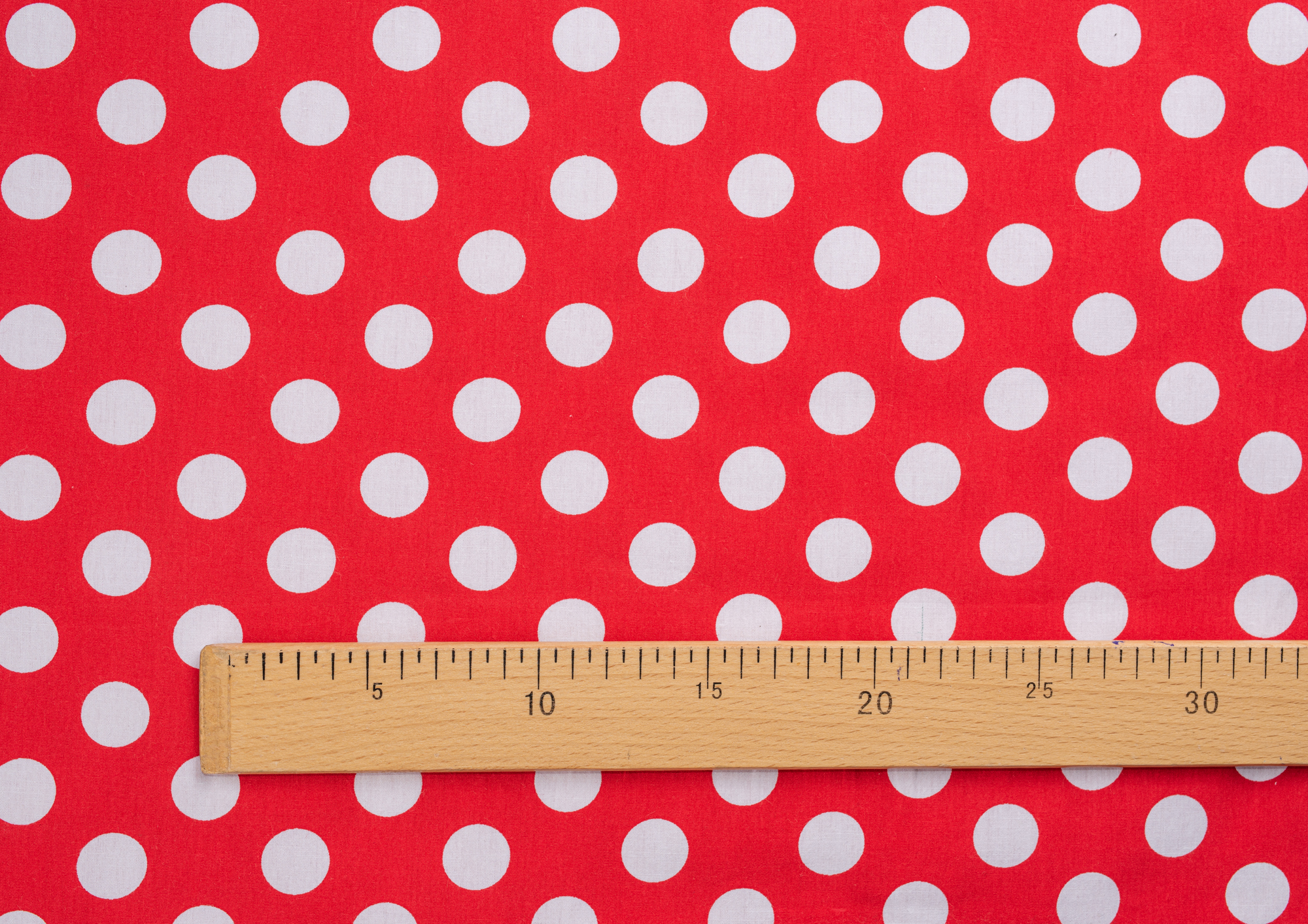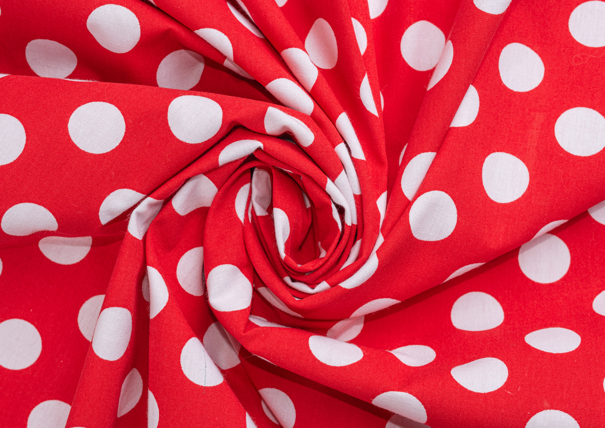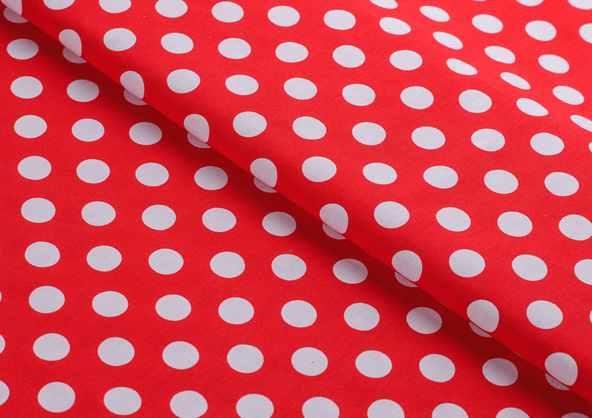 Ткань Поплин принт Горох белый на красном