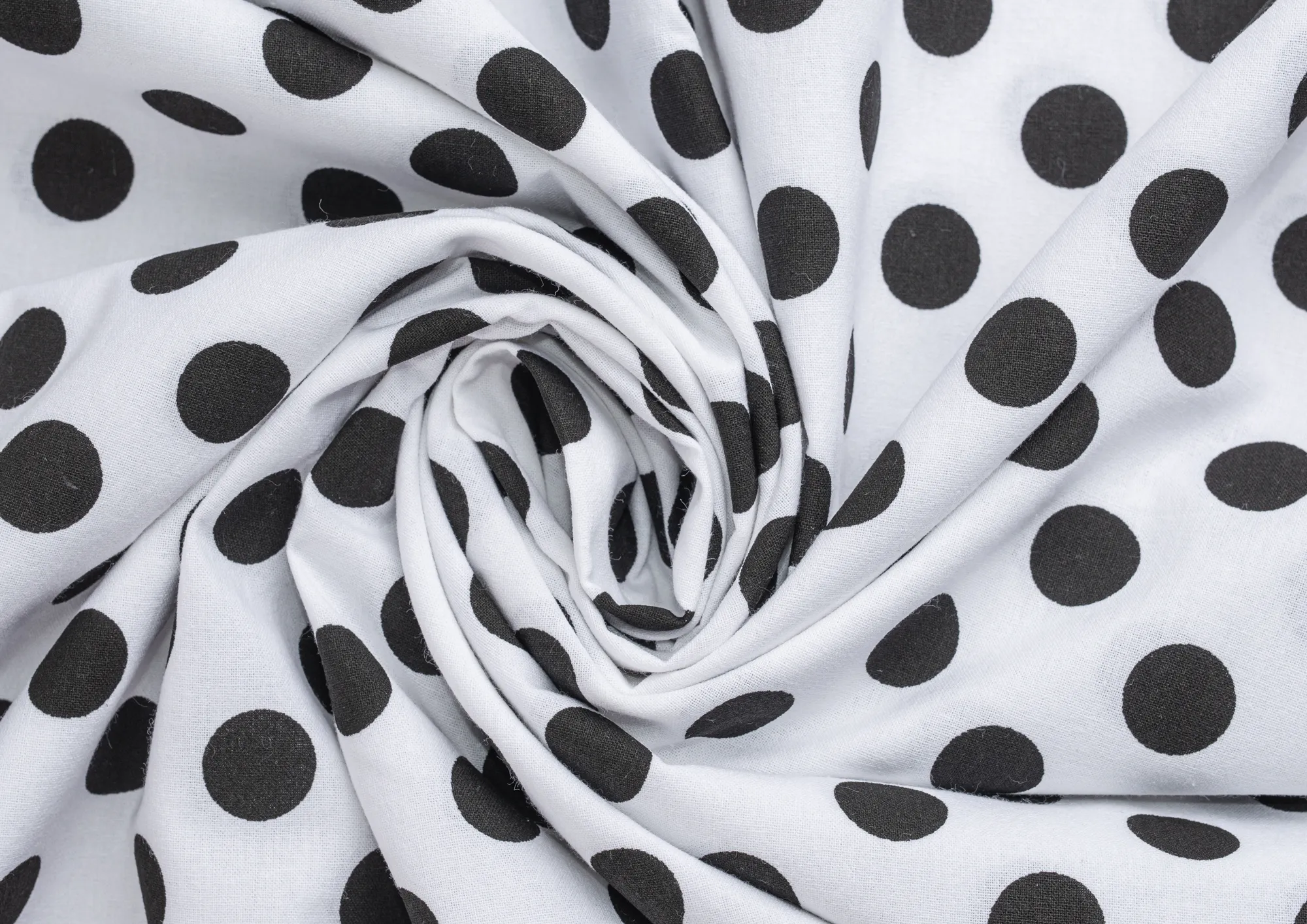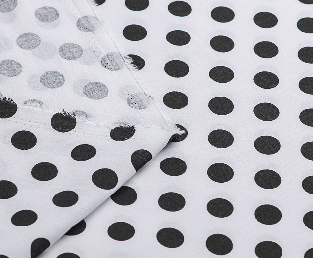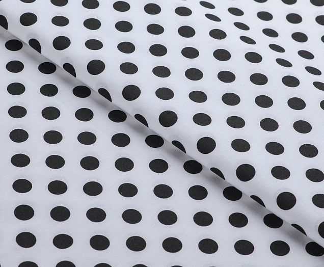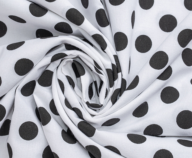 Ткань Поплин принт Горох черный на белом
