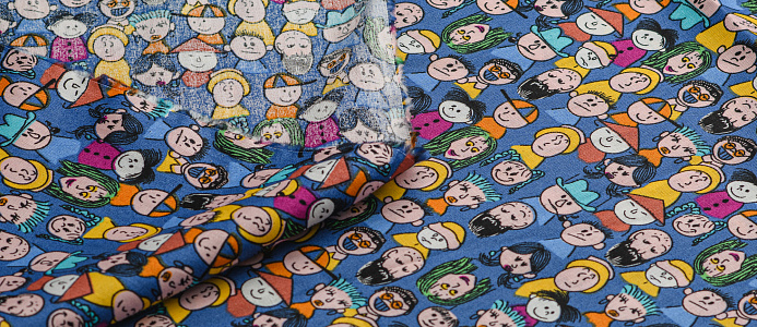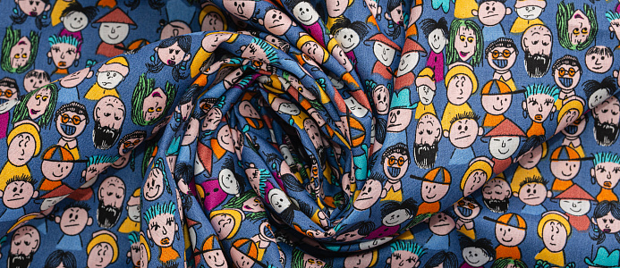 Хлопковая, средней плотности ткань с эластаном. По всей поверхности полотна расположен принт. Ткань тонкая, при этом прочная, хорошо держит форму. Отлично подходит для пошива платьев, сарафанов, мужских и женских рубашек .