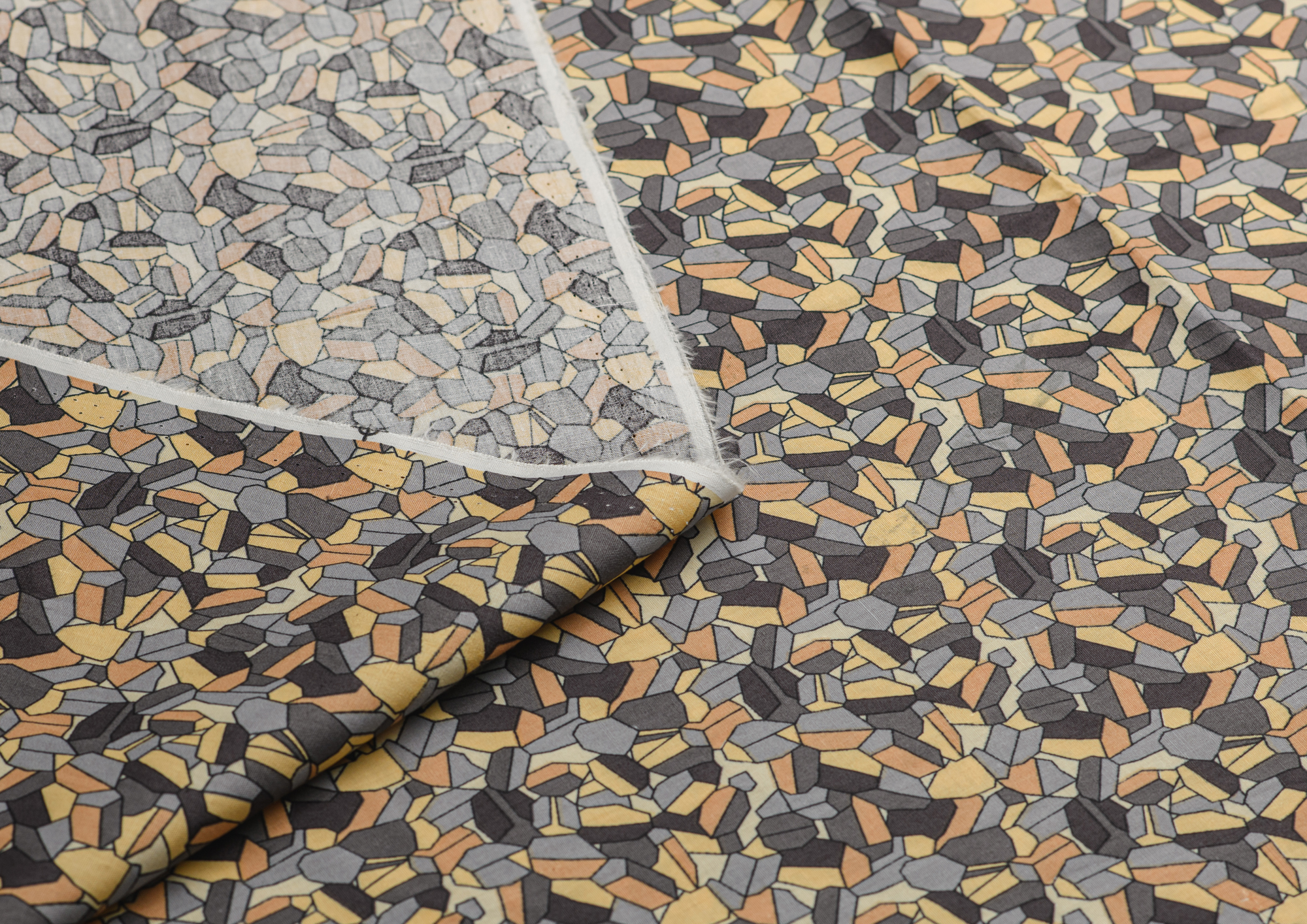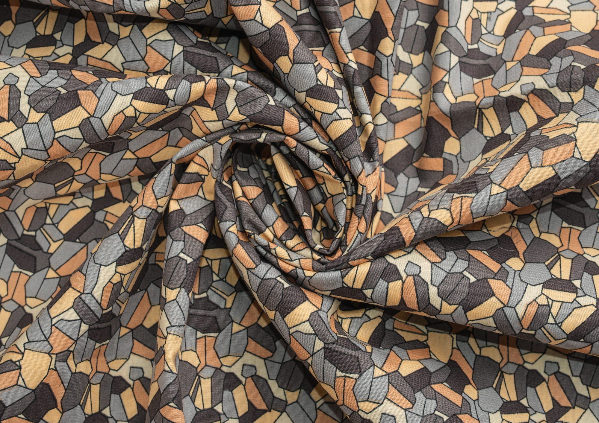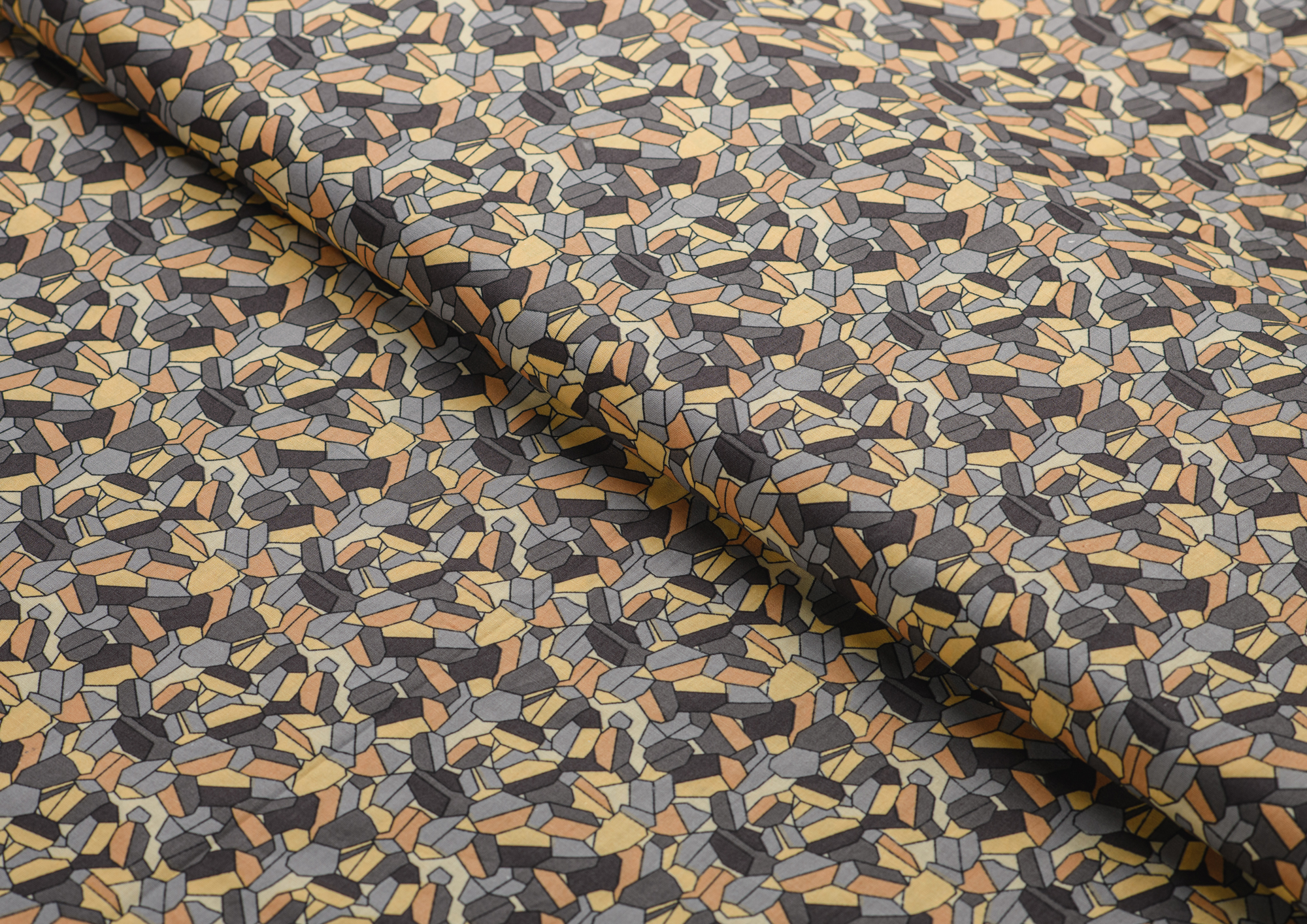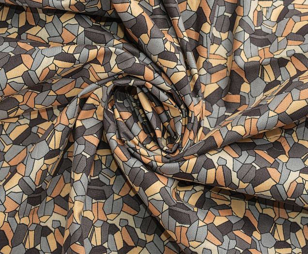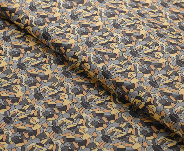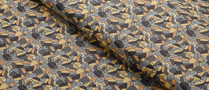 Ткань Поплин принт Мозайка желто-серая