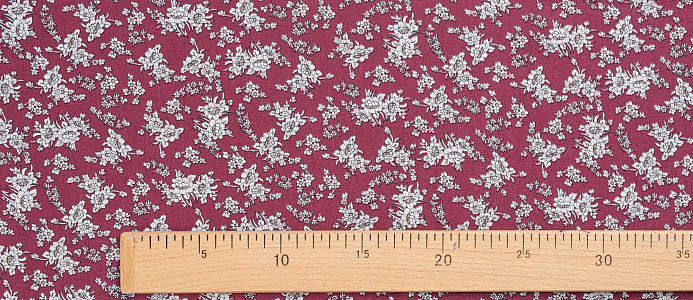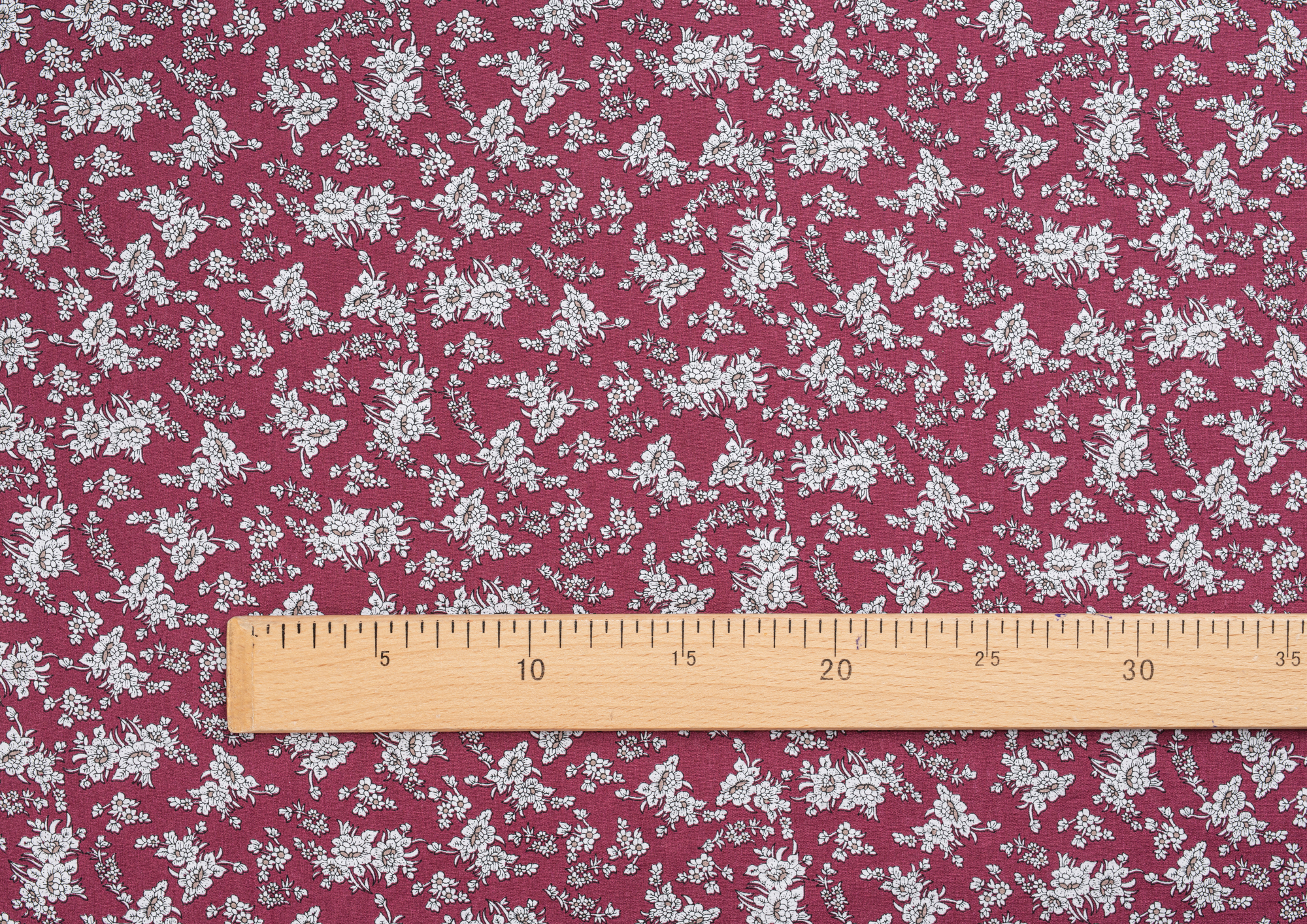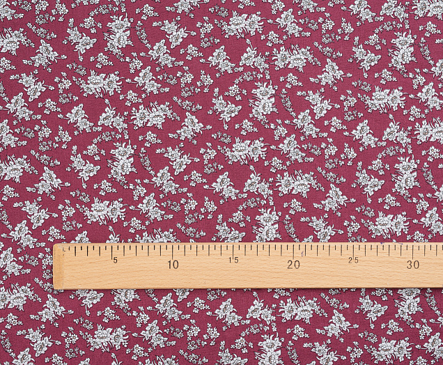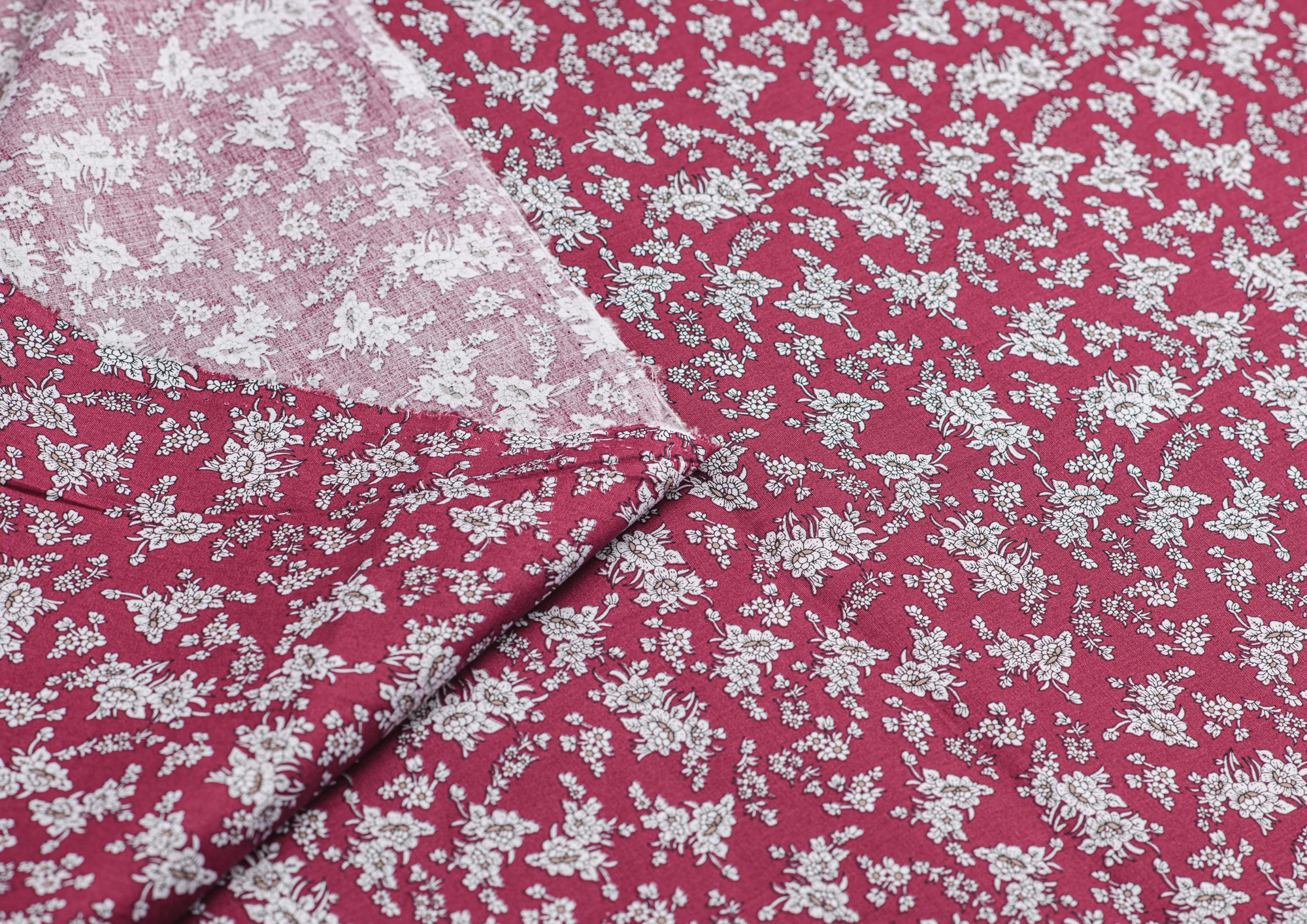 Хлопковая плотная ткань по всей поверхности которой расположен мелкий цветочный принт. Материал тонкий, эластичный, но при этом прочный и формоустойчивый. Подходит для пошива легких блуз и рубашек, платьев и сарафанов.
