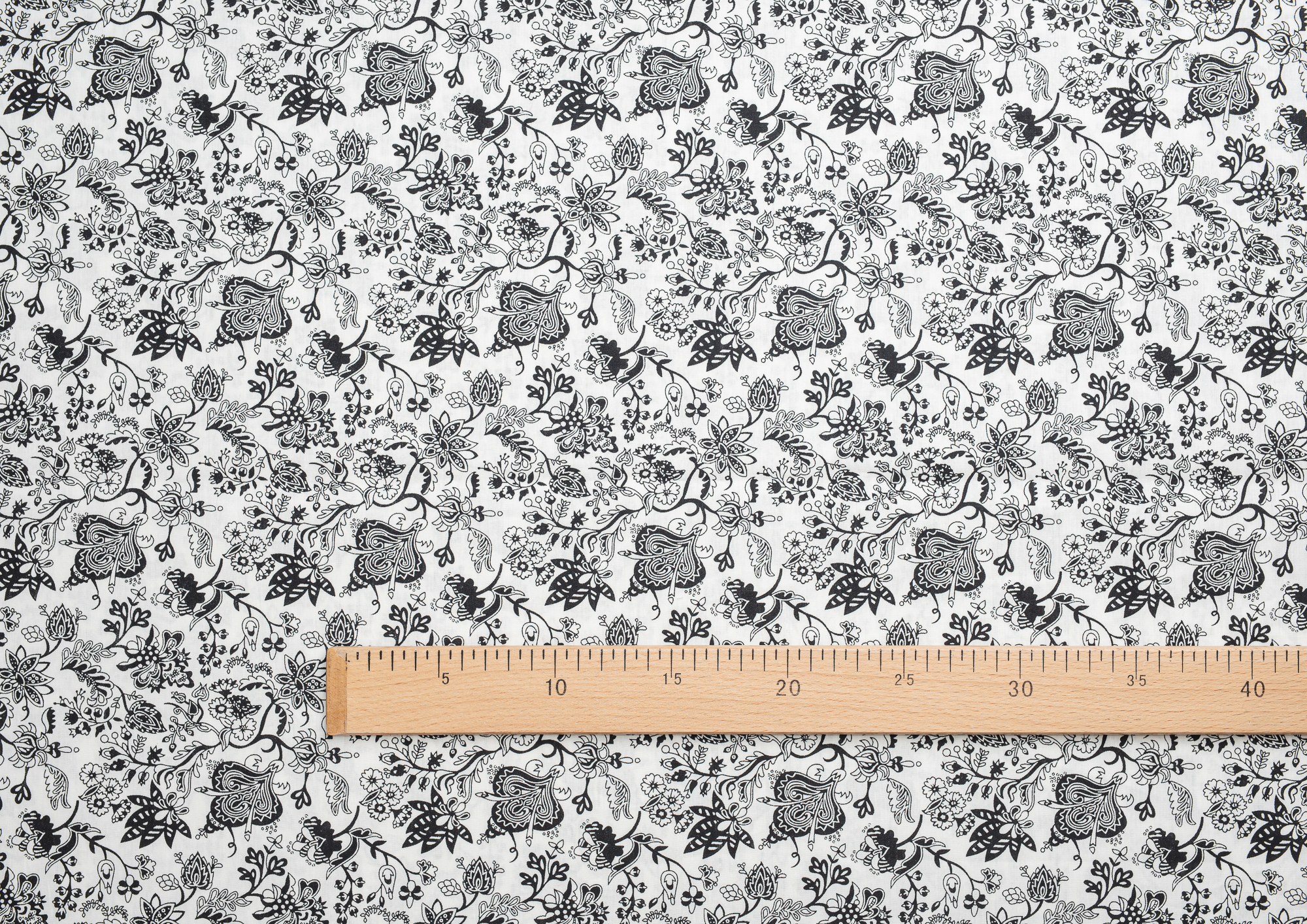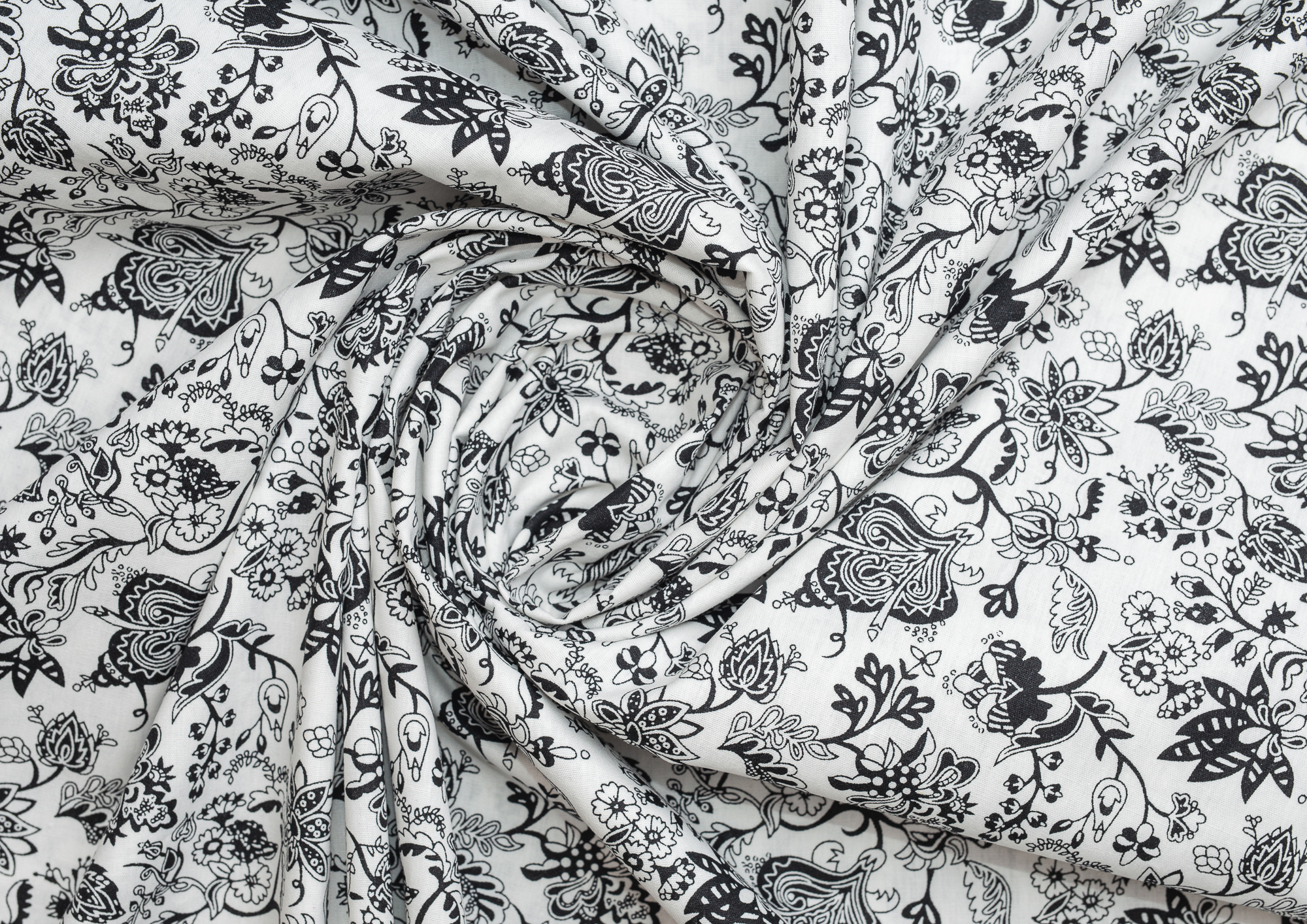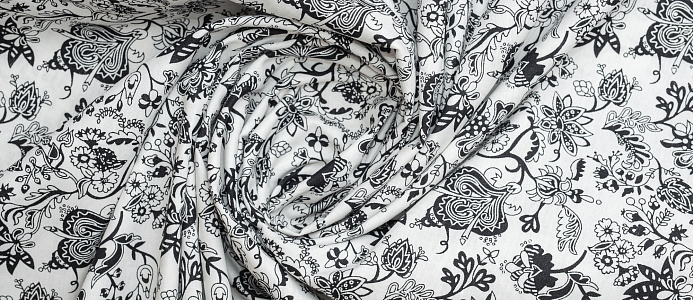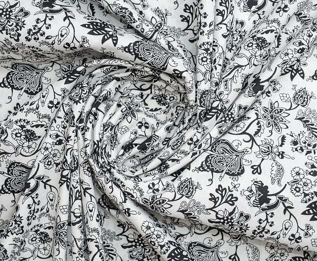 Хлопковая , средней плотности ткань с эластаном. По всей поверхности полотна расположен принт - цветы. Ткань тонкая, при этом прочная , хорошо держит форму . Отлично подходит для пошива платьев , сарафанов , мужских и женских рубашек .