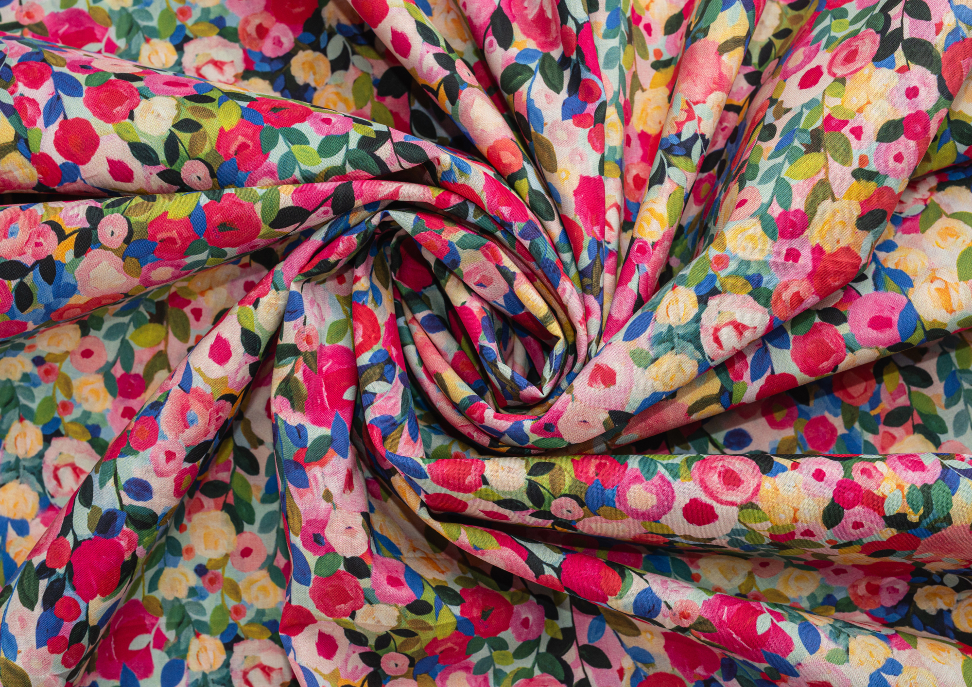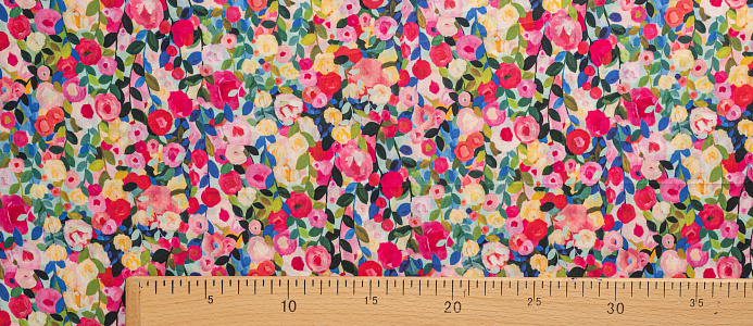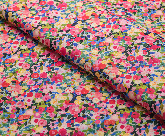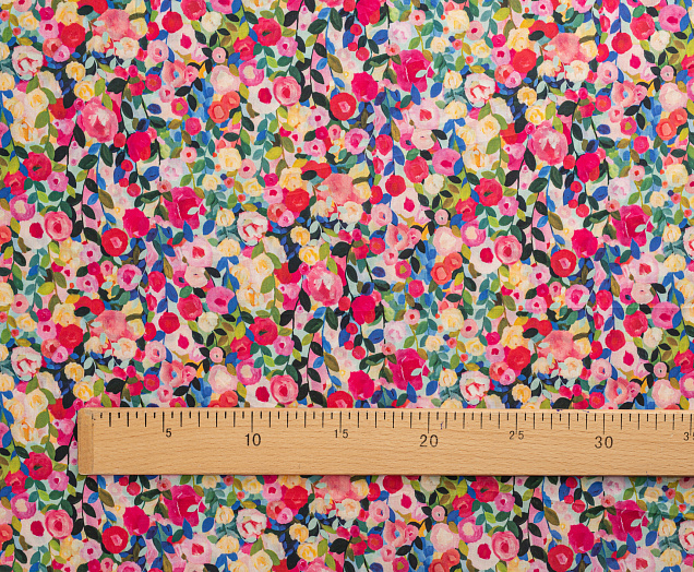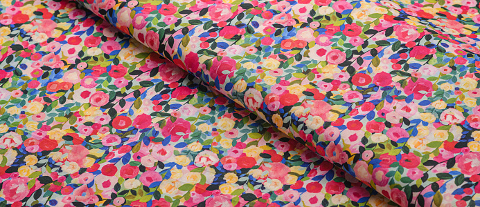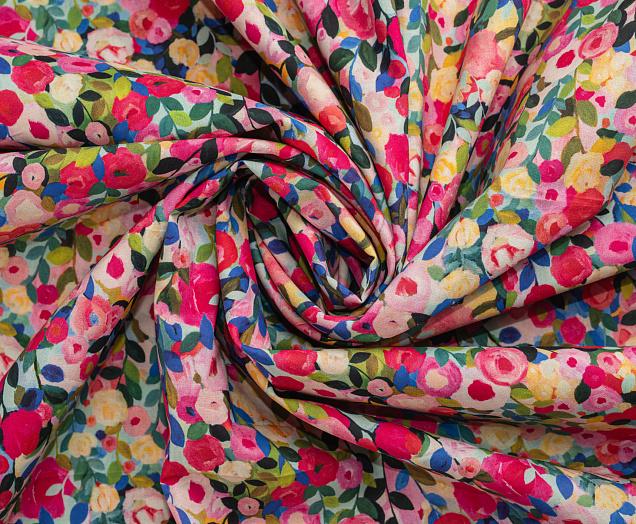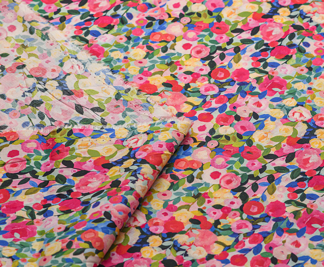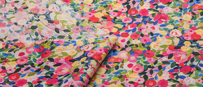 Хлопковая, средней плотности ткань с эластаном. По всей поверхности полотна расположен принт. Ткань тонкая, при этом прочная, хорошо держит форму. Отлично подходит для пошива платьев, сарафанов, мужских и женских рубашек .