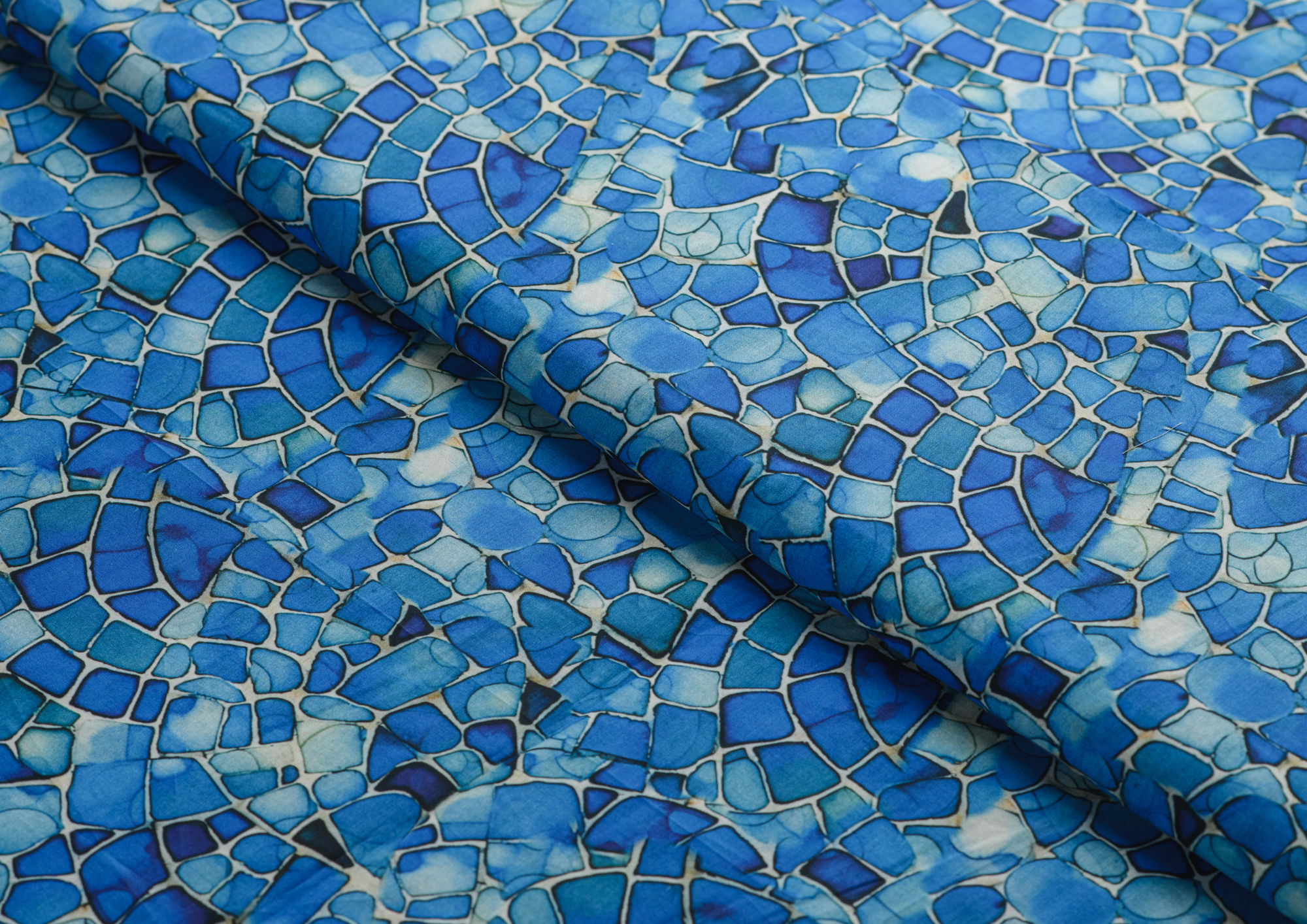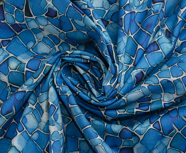 Хлопковая, средней плотности ткань с эластаном. По всей поверхности полотна расположен принт. Ткань тонкая, при этом прочная, хорошо держит форму. Отлично подходит для пошива платьев, сарафанов, мужских и женских рубашек .
