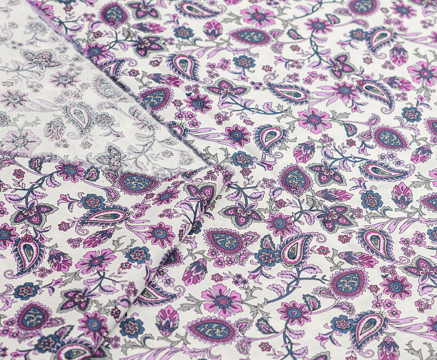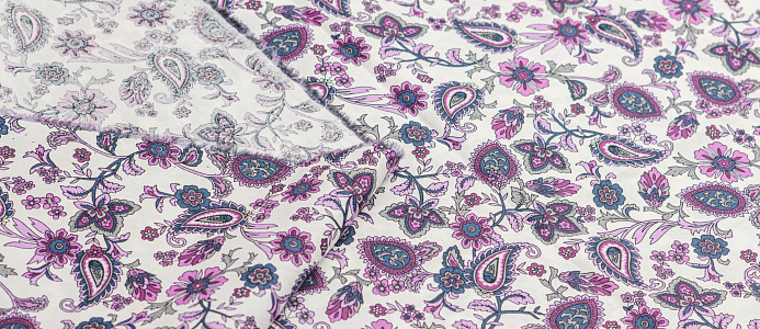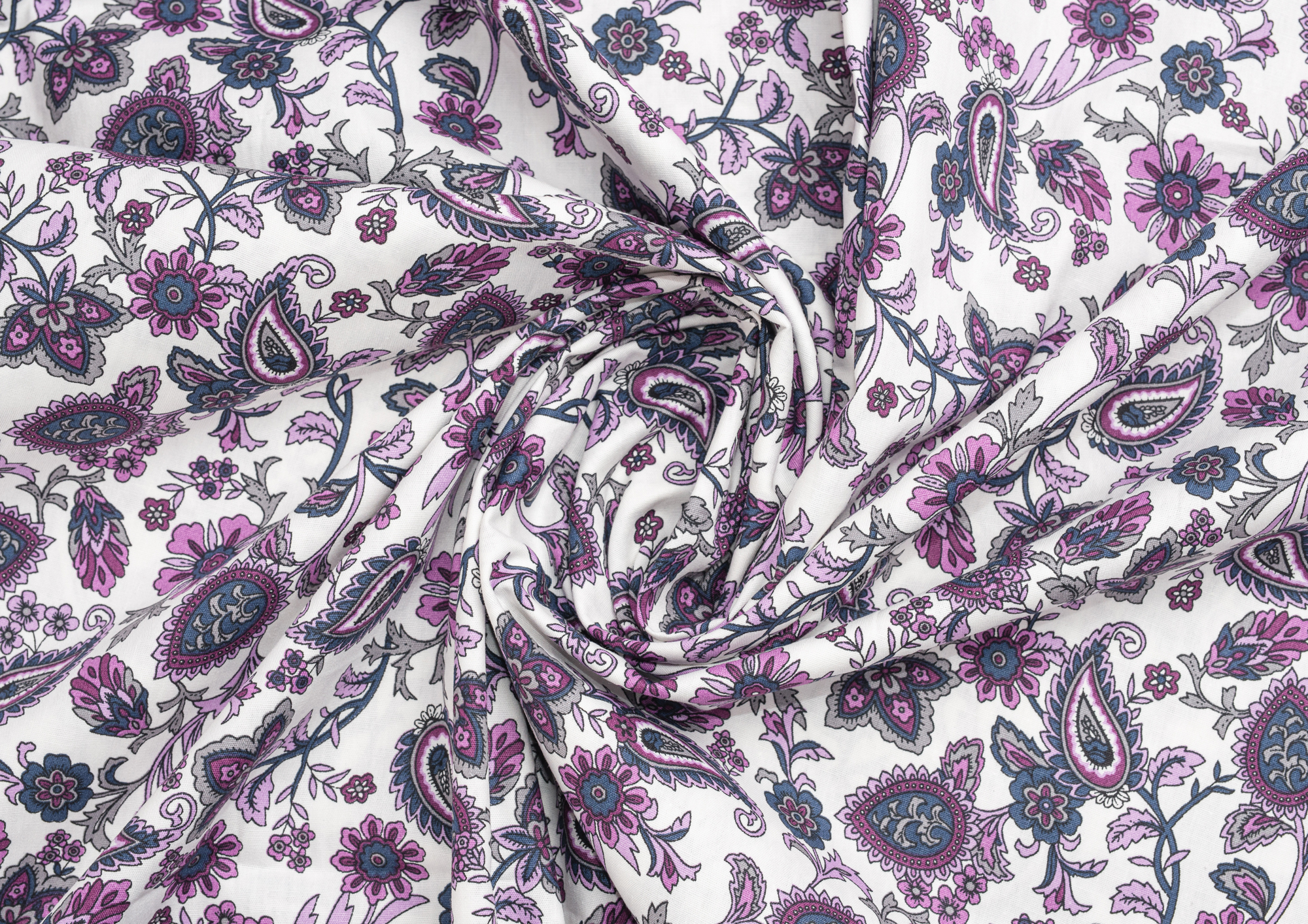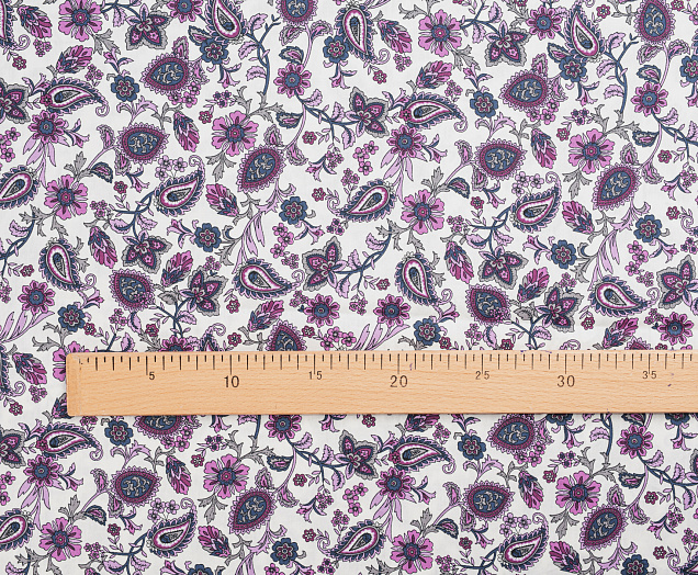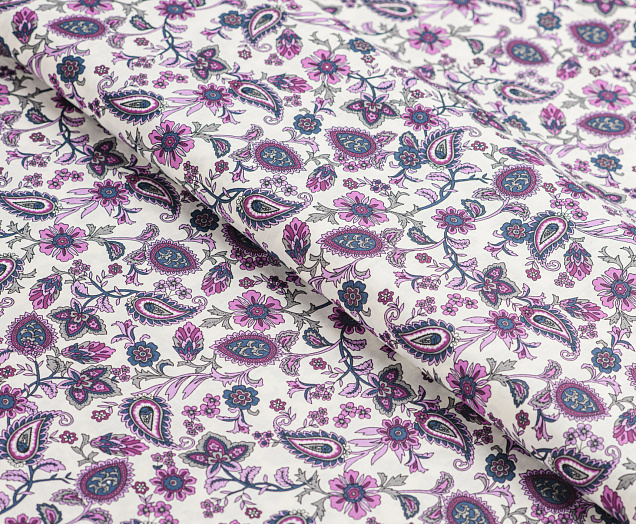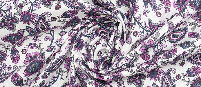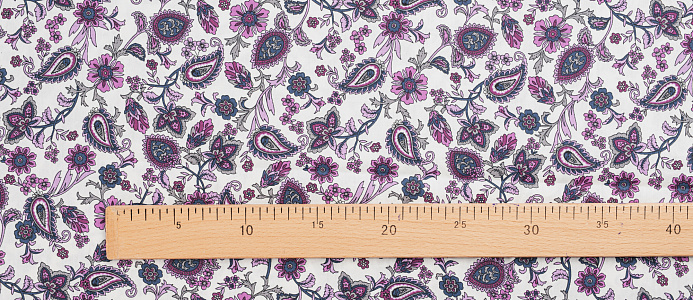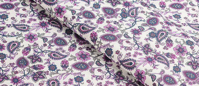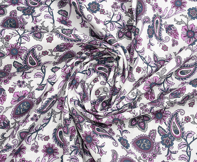 Ткань Поплин стрейч принт Пейсли на белом