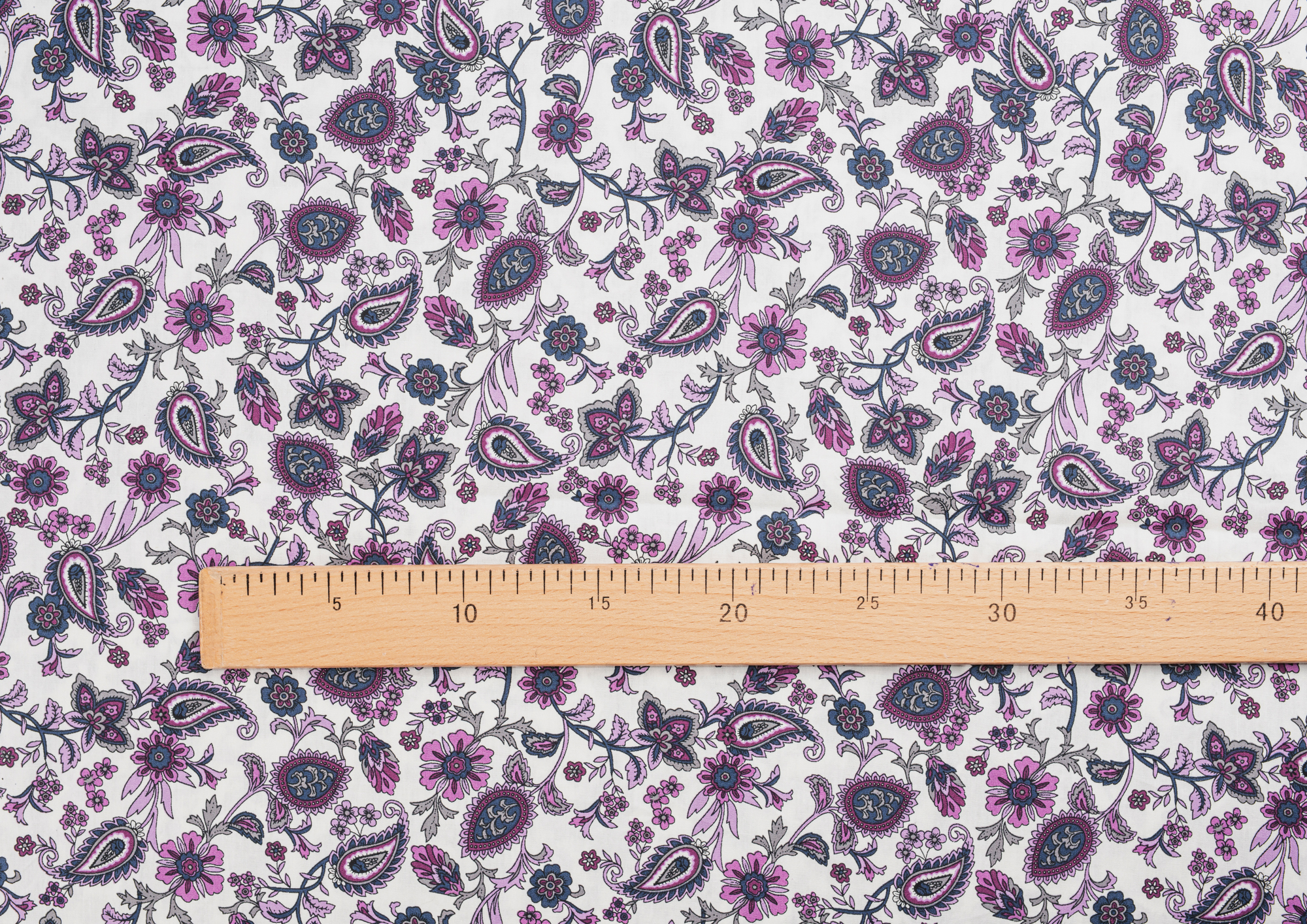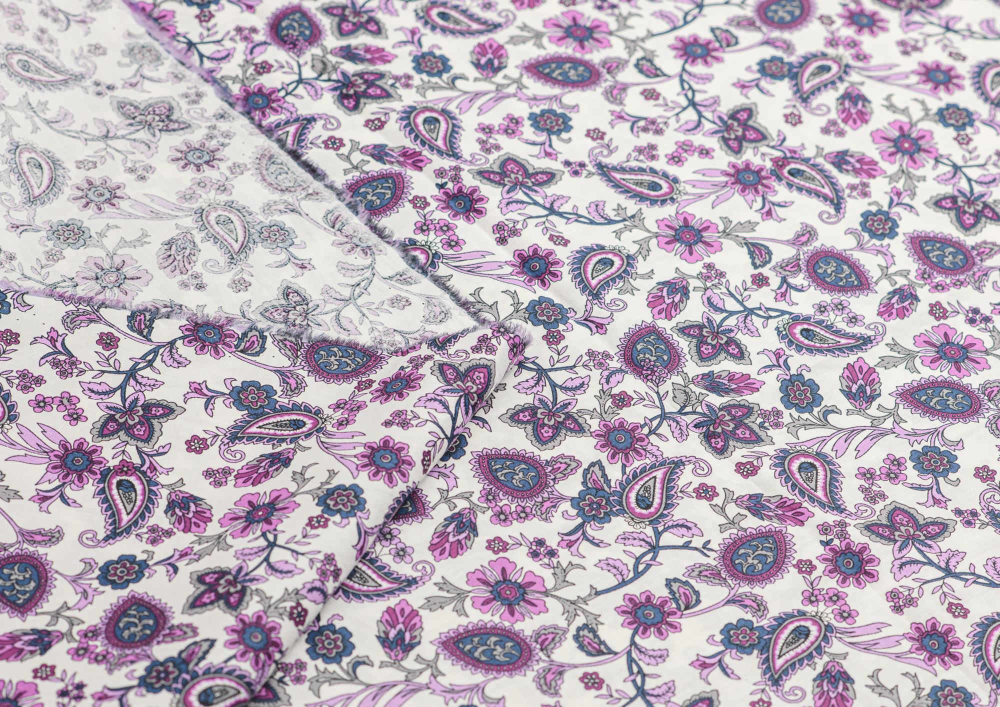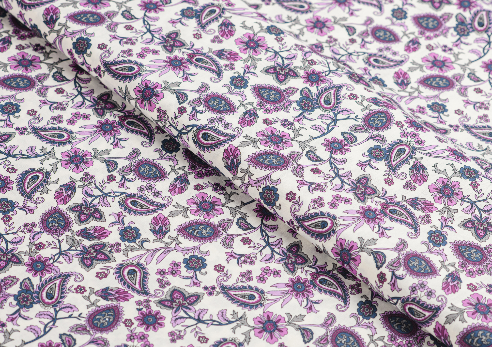 Ткань Поплин стрейч принт Пейсли на белом