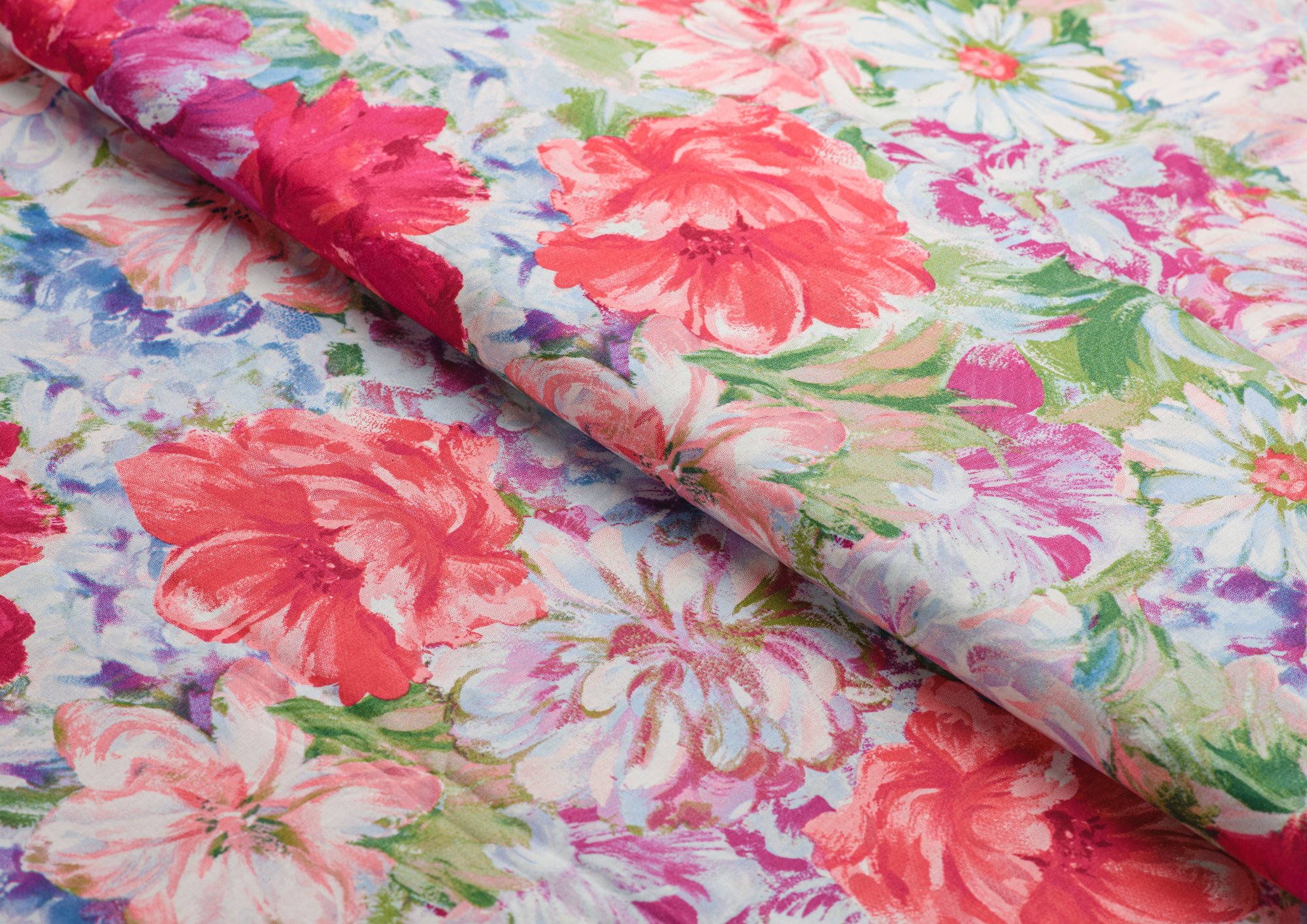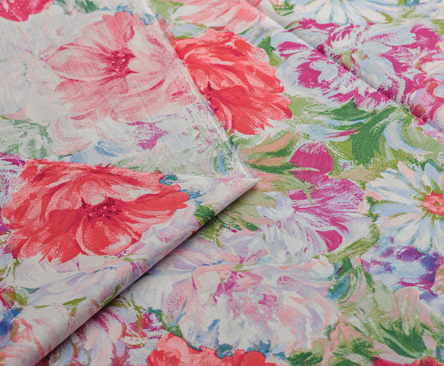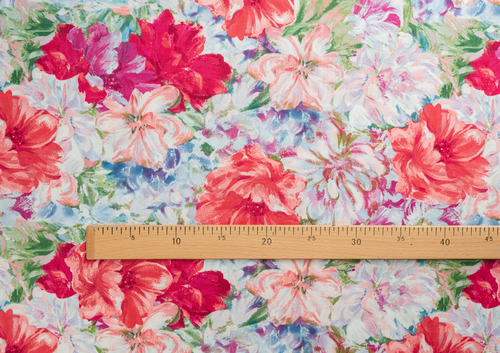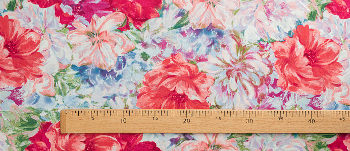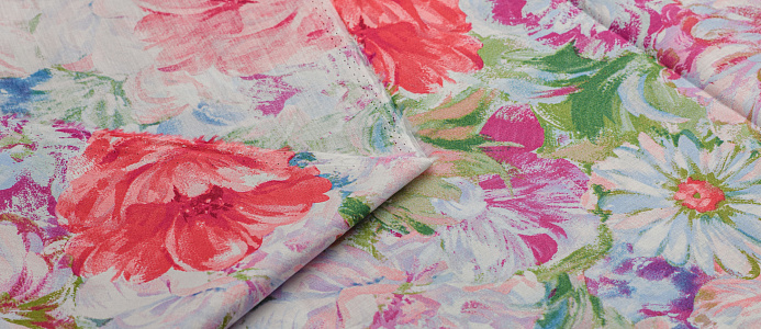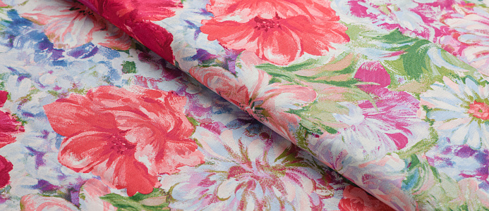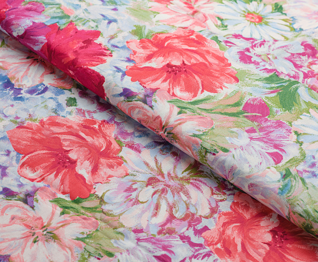 Хлопковая, средней плотности ткань с эластаном. По всей поверхности полотна расположен принт. Ткань тонкая, при этом прочная, хорошо держит форму. Отлично подходит для пошива платьев, сарафанов, мужских и женских рубашек .