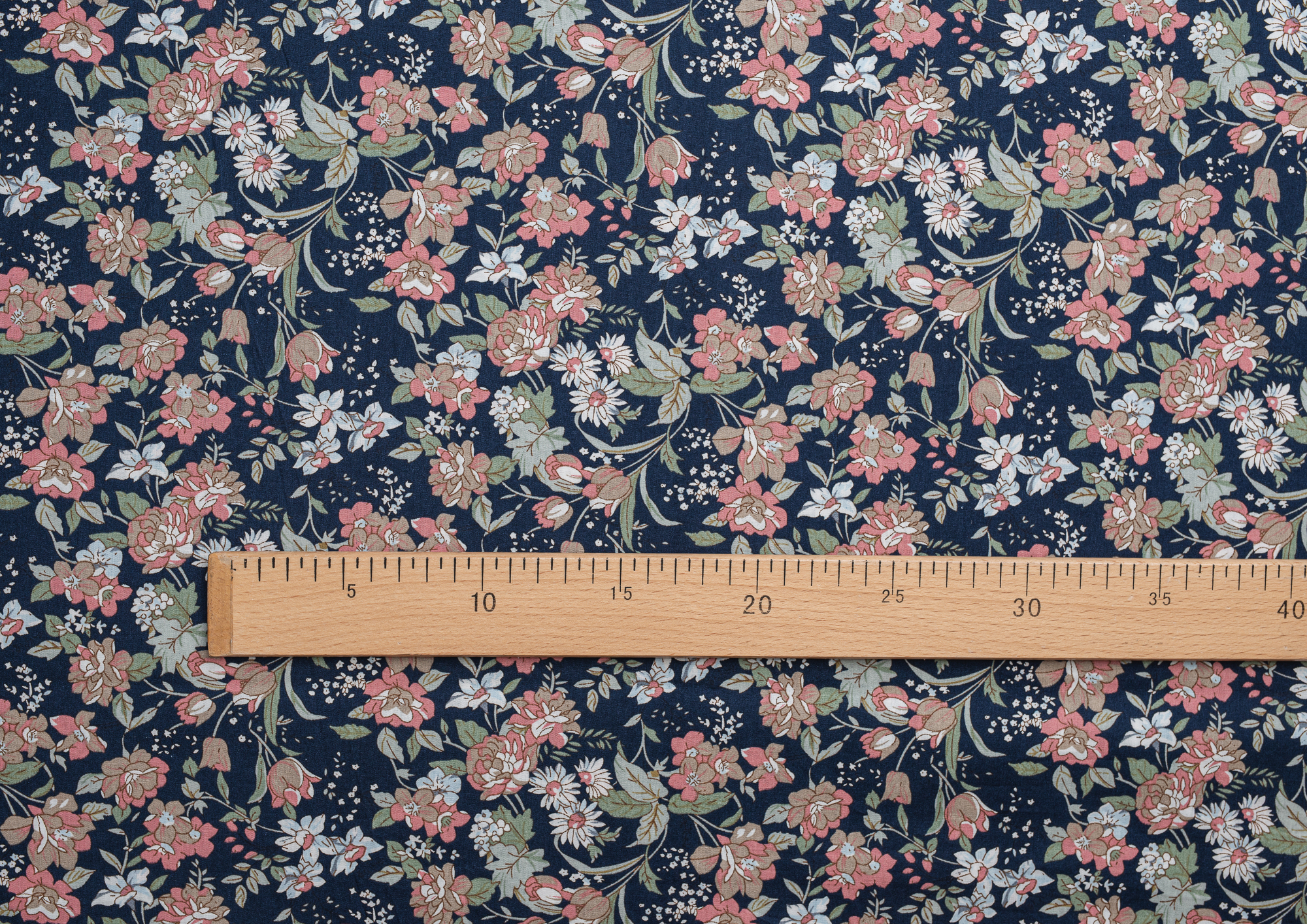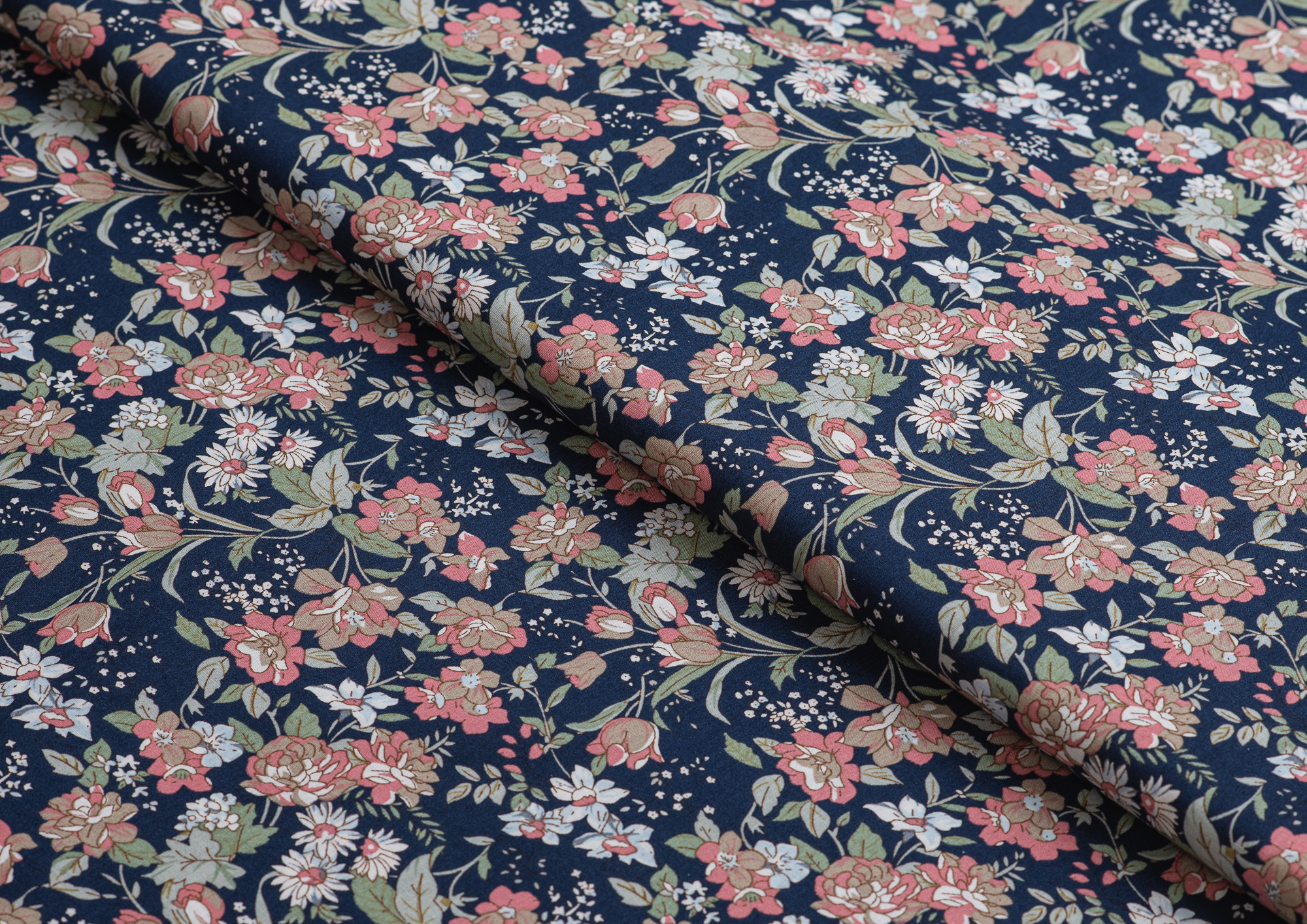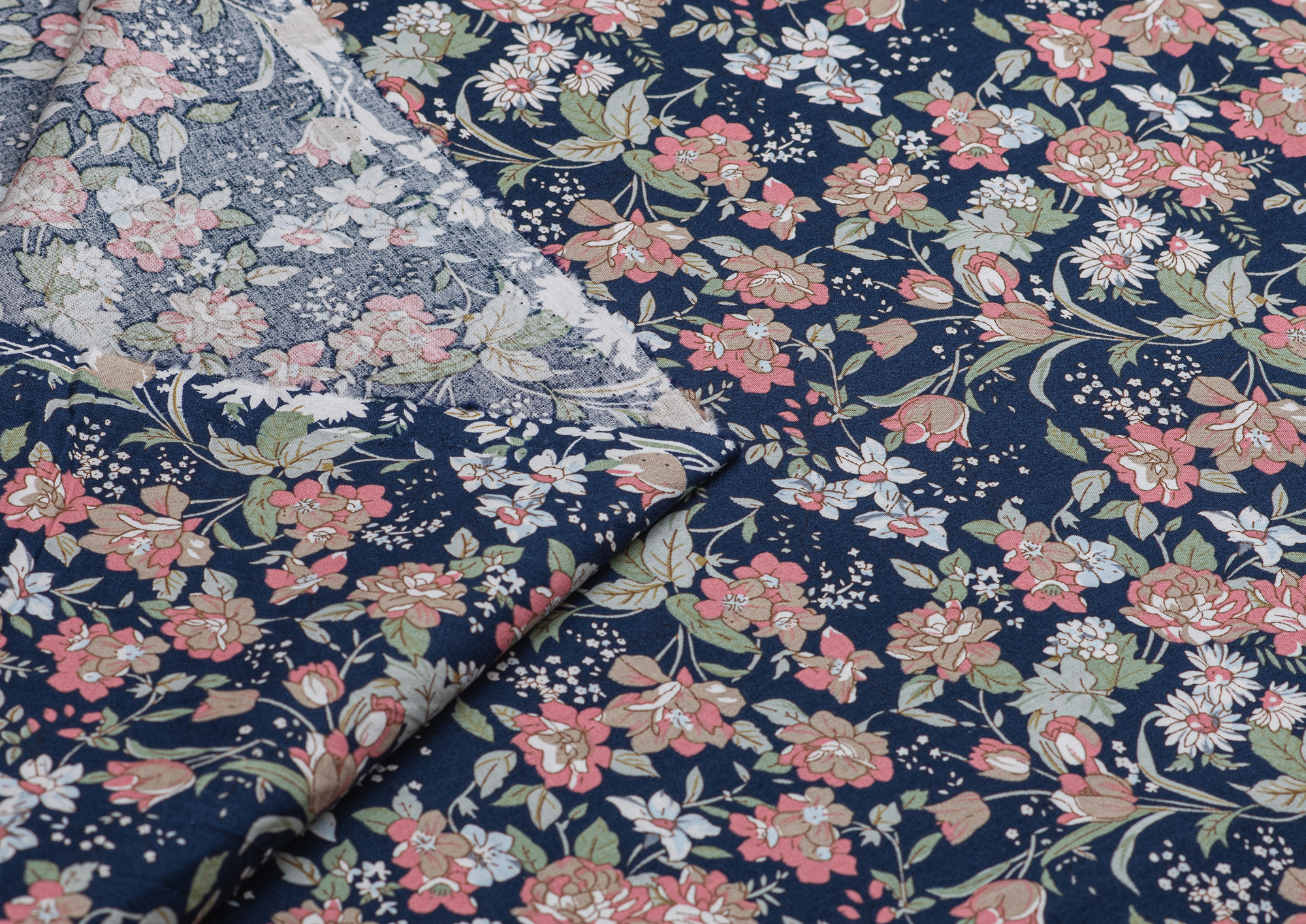 Хлопковая плотная ткань по всей поверхности которой расположен мелкий цветочный принт. Материал тонкий, эластичный, но при этом прочный и формоустойчивый. Подходит для пошива легких блуз и рубашек, платьев и сарафанов.